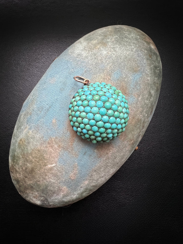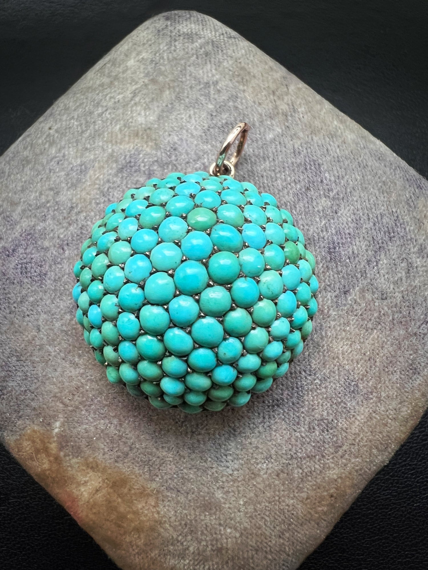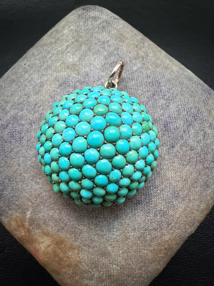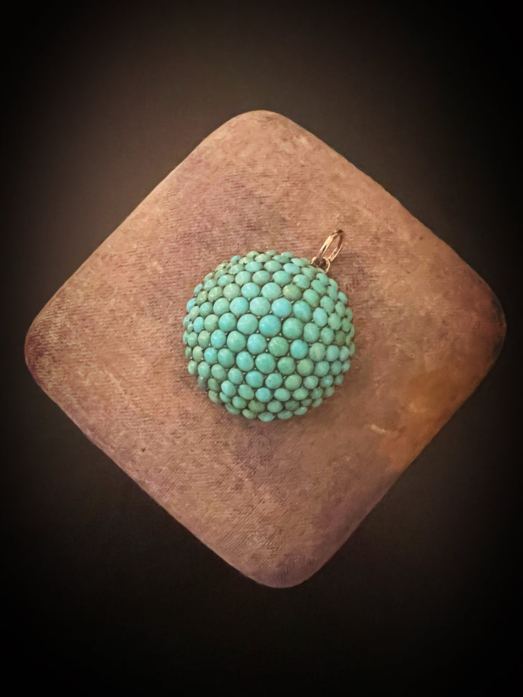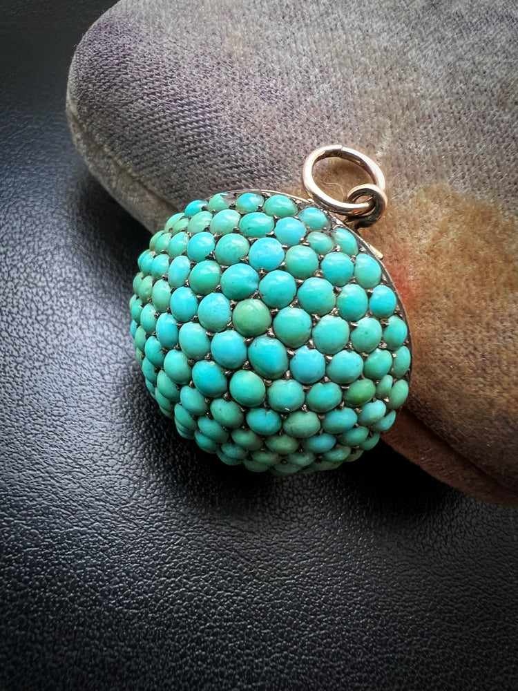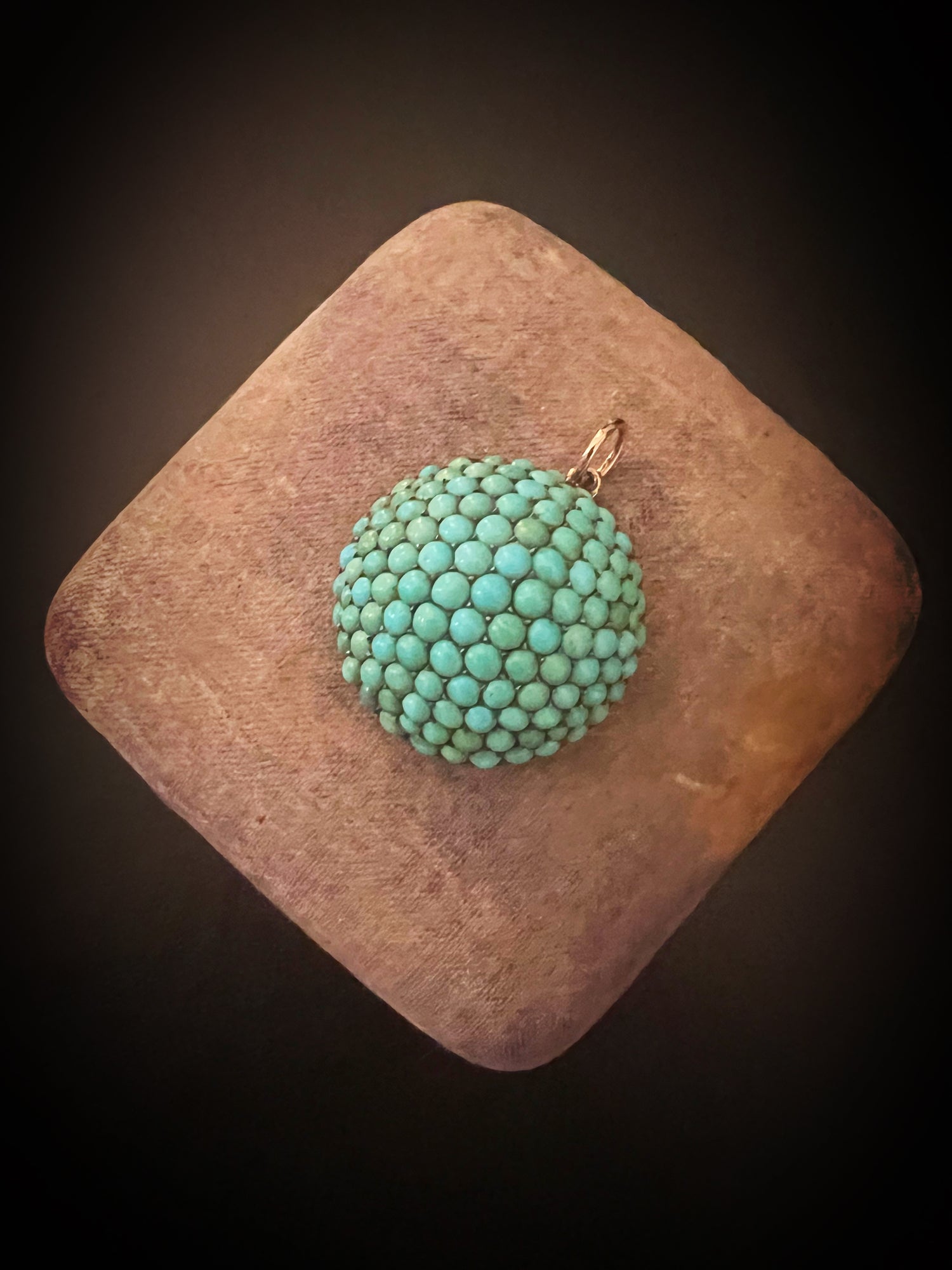 A gorgeous Victorian pave turquoise dome bombe pendant, set in gold.