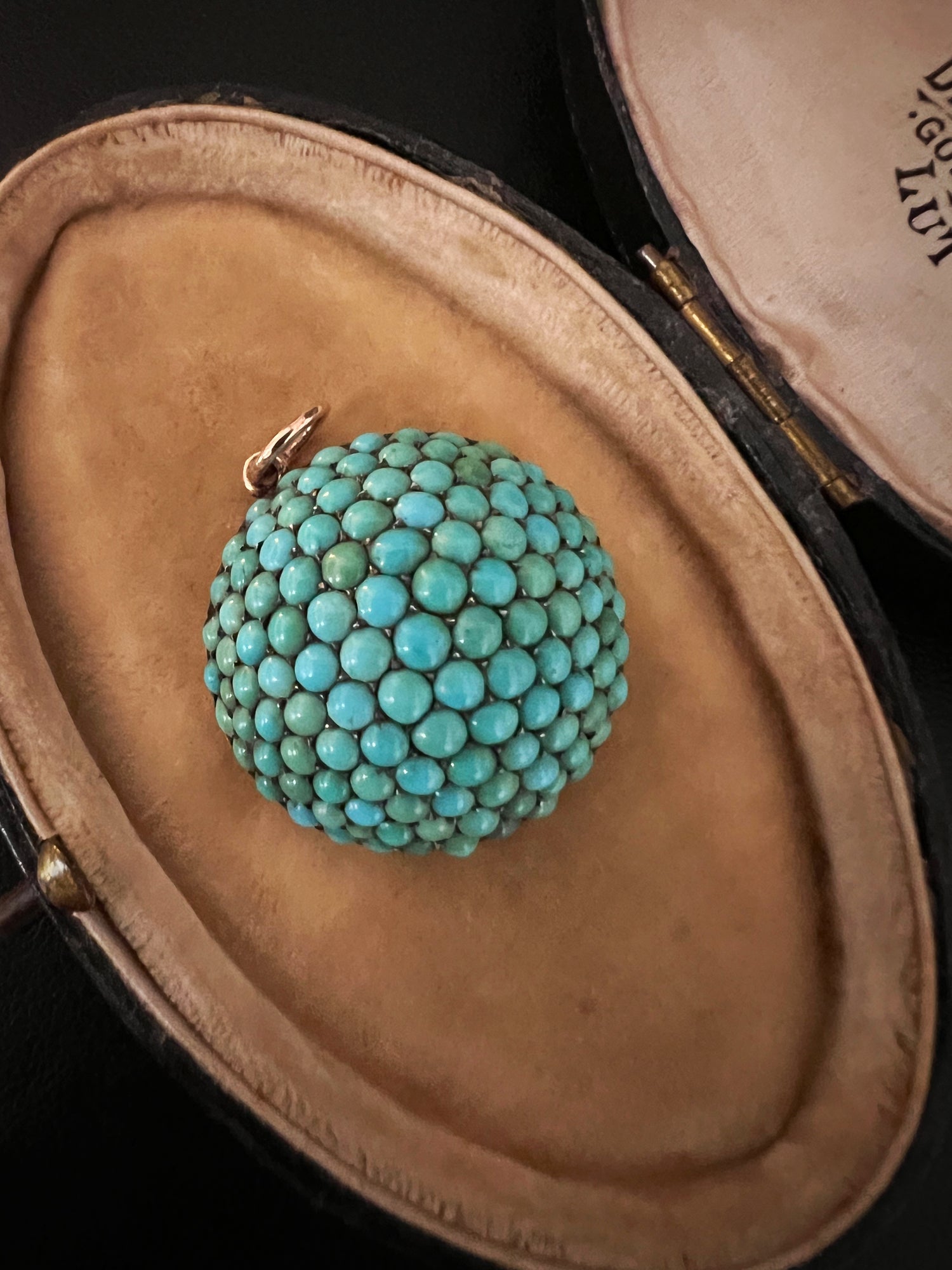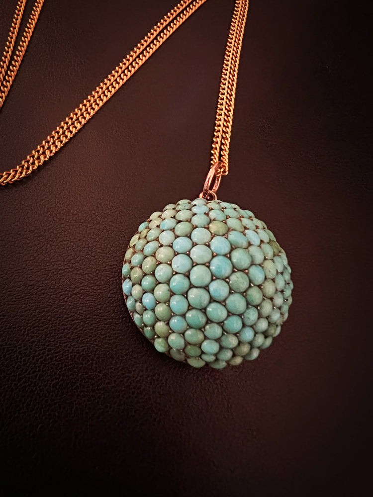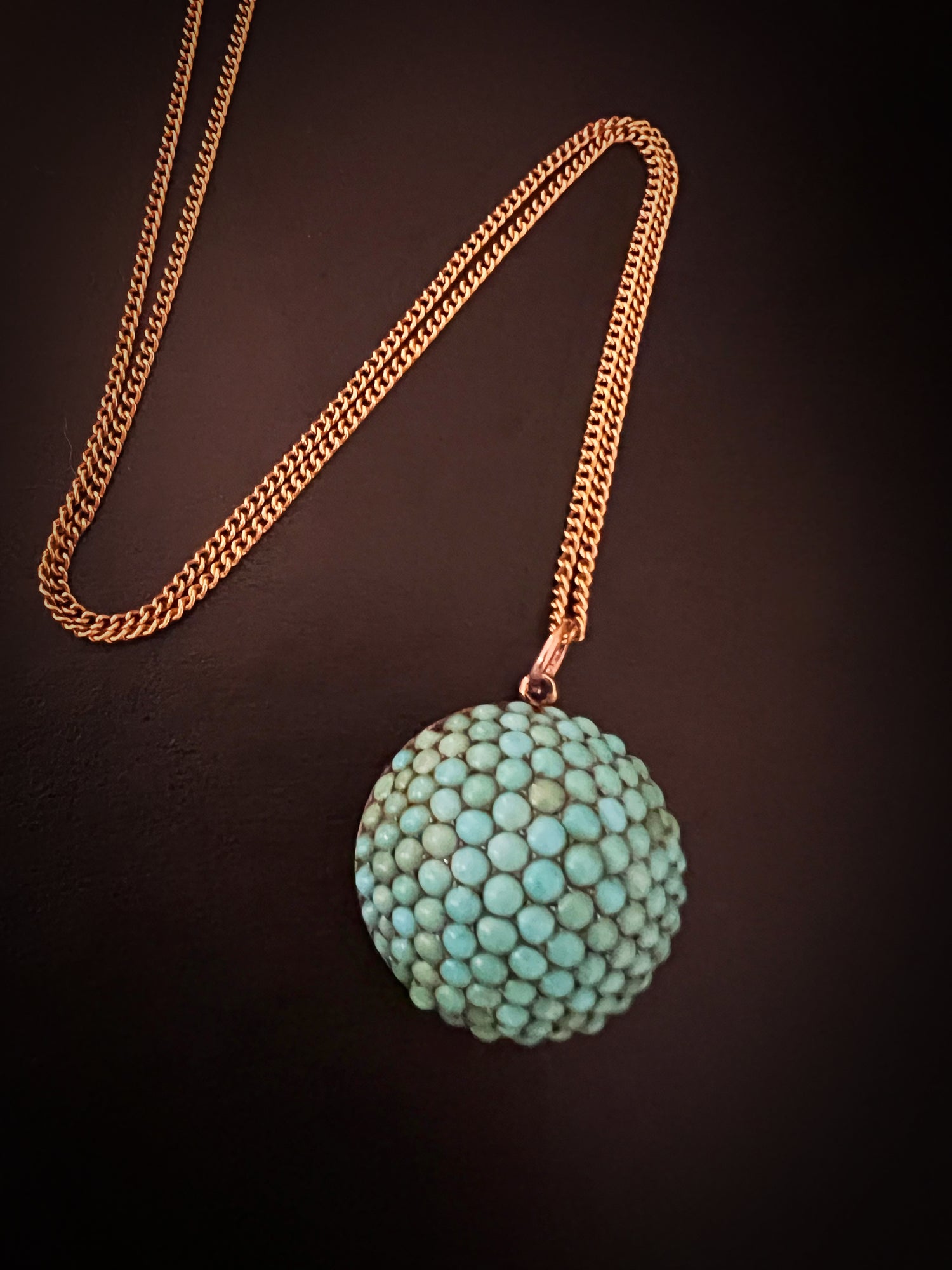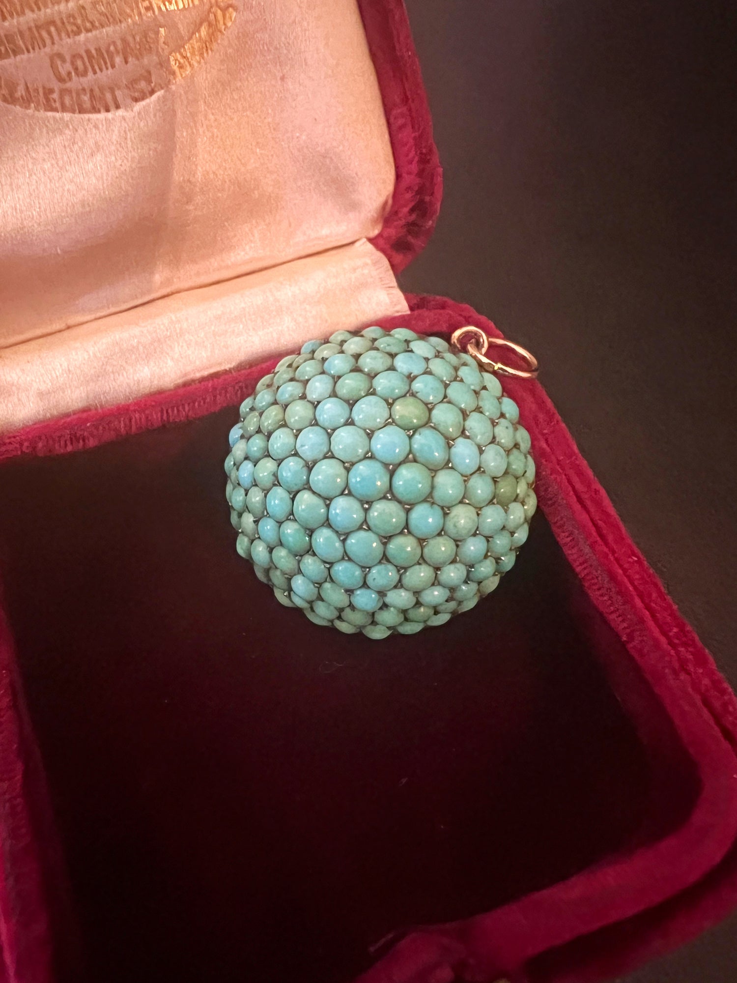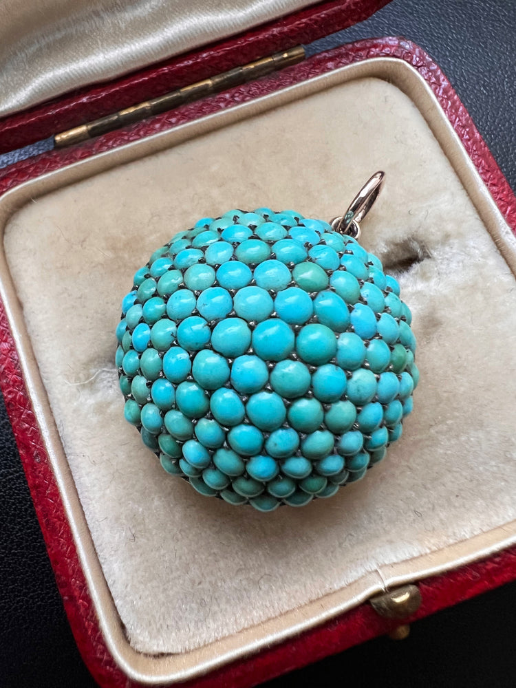 A gorgeous Victorian pave turquoise dome bombe pendant, set in gold.
