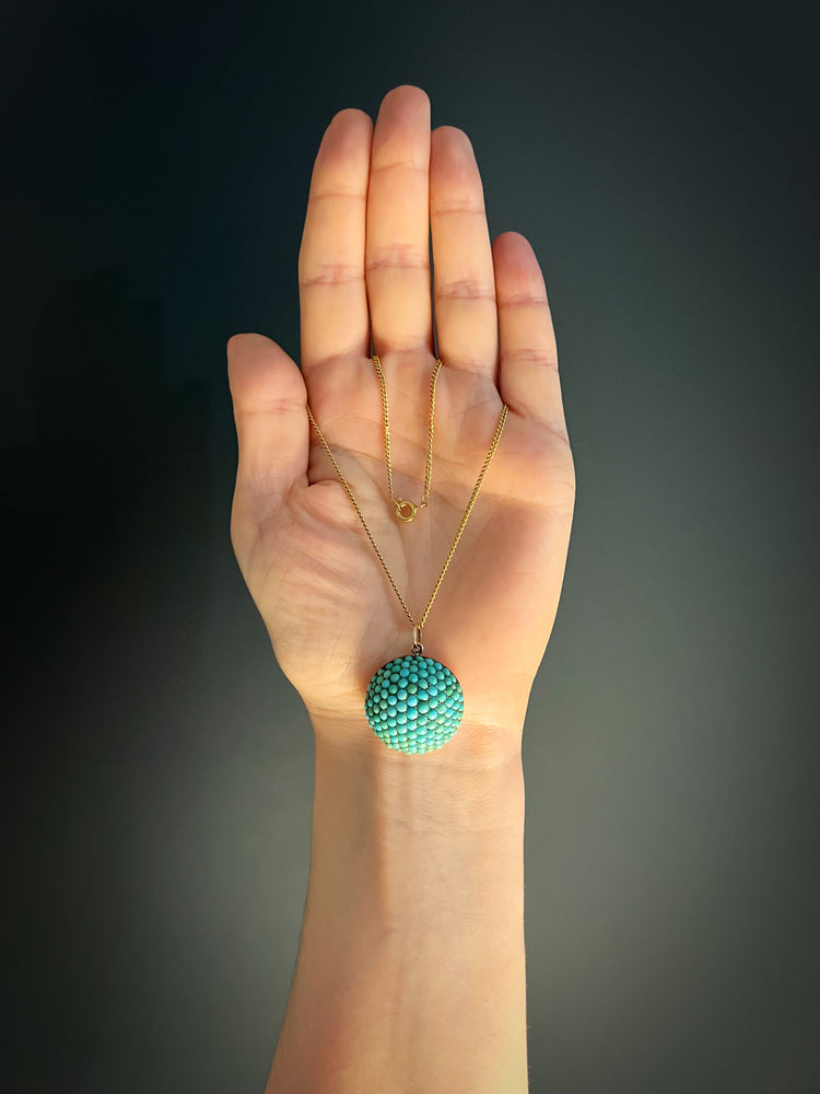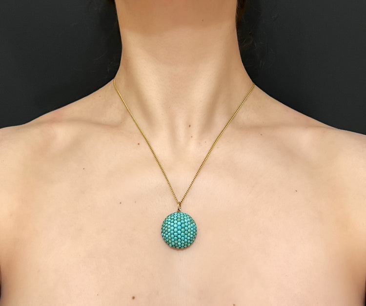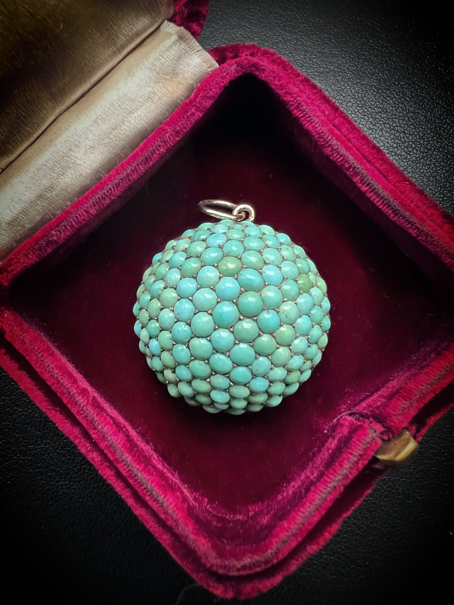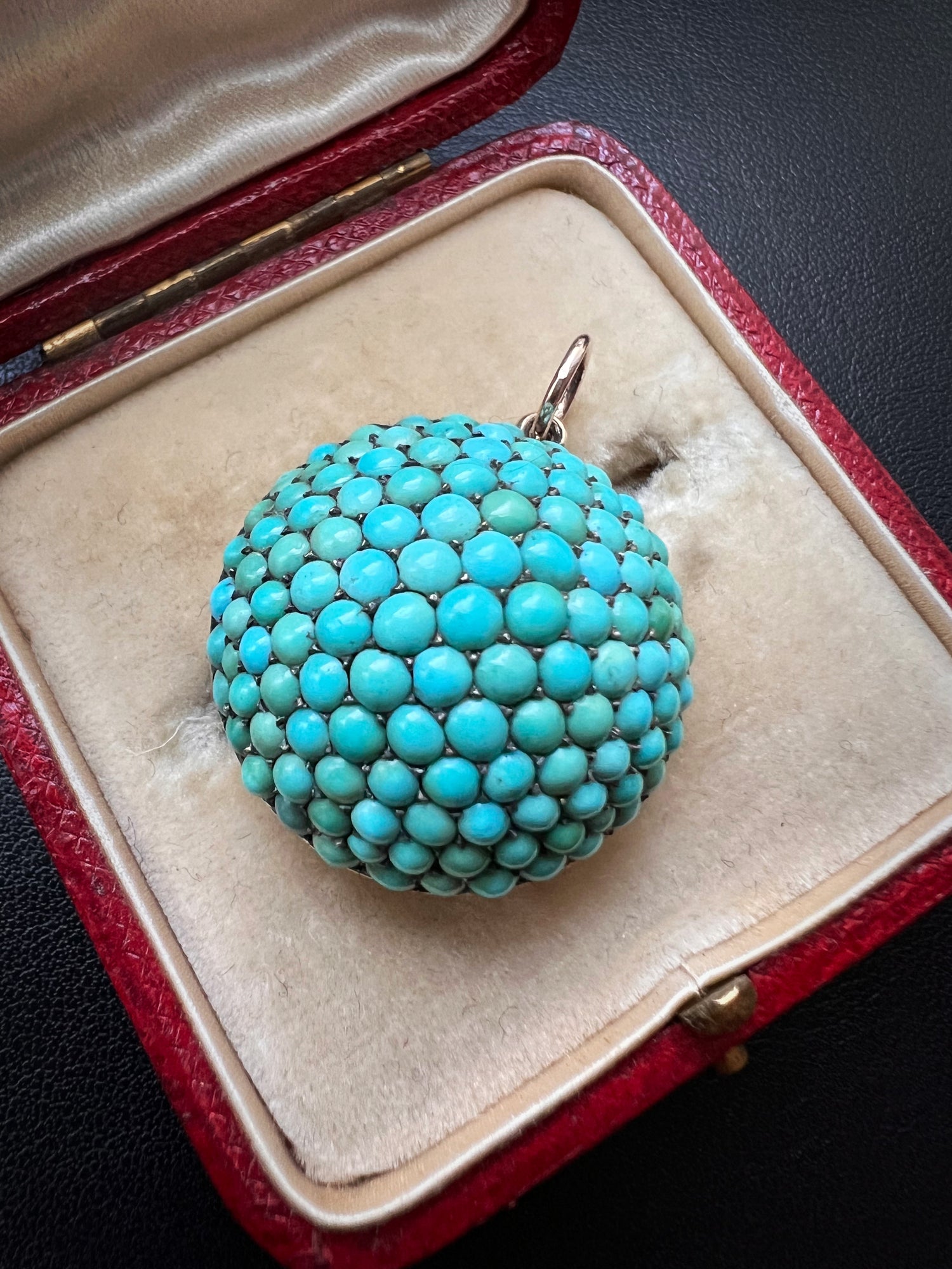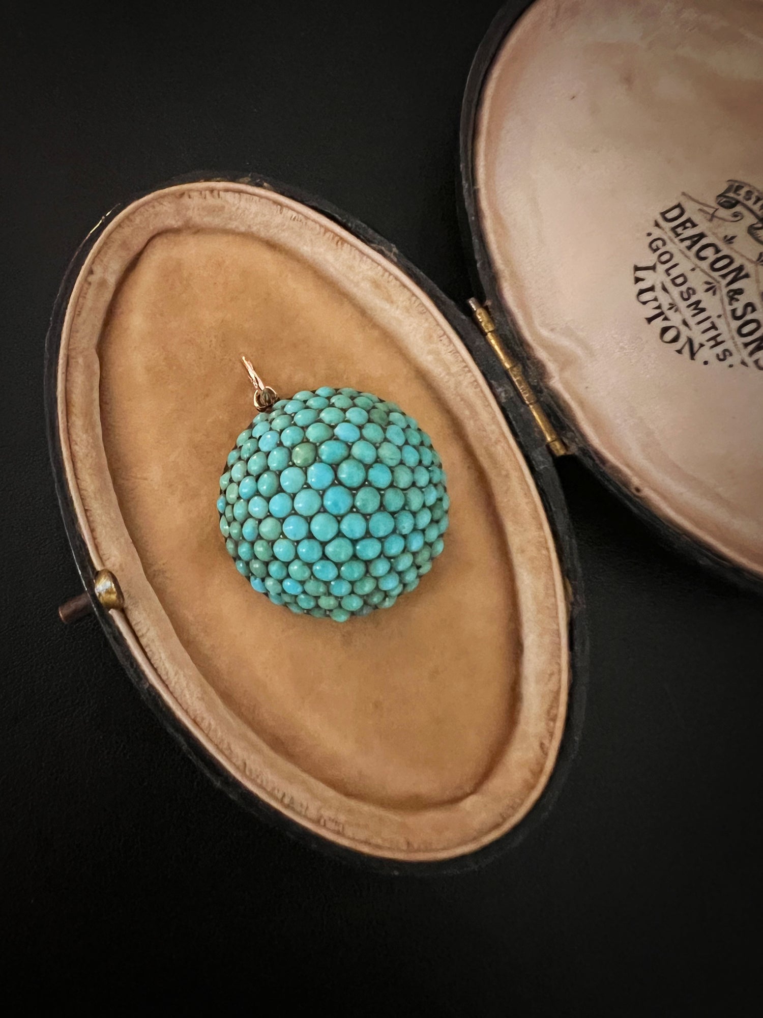 A gorgeous Victorian pave turquoise dome bombe pendant, set in gold.