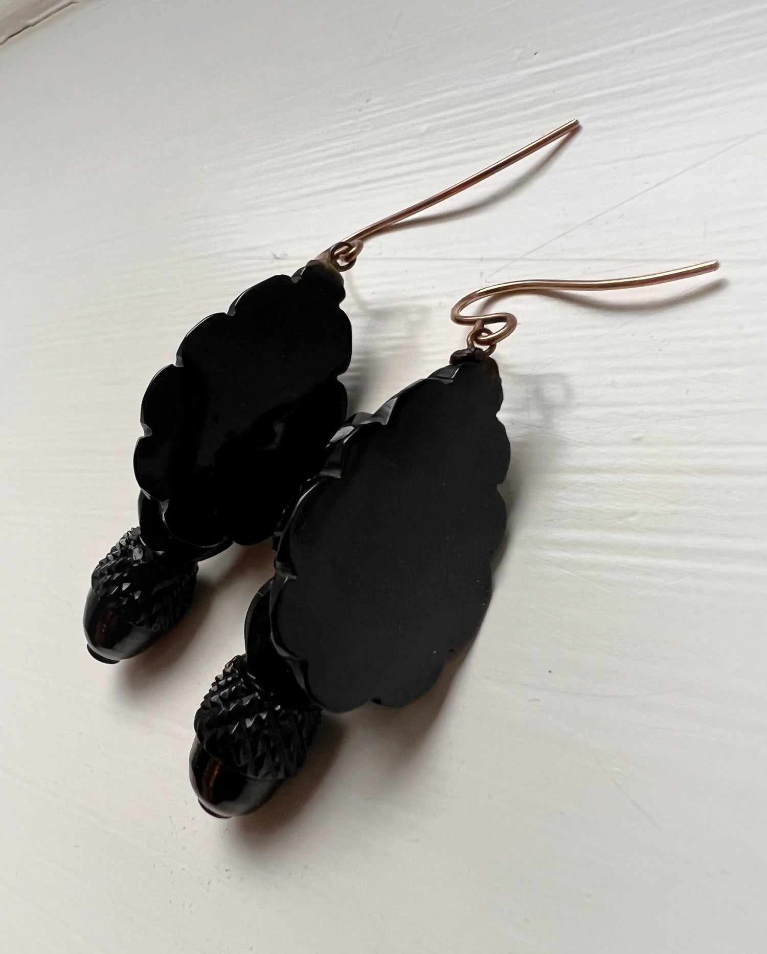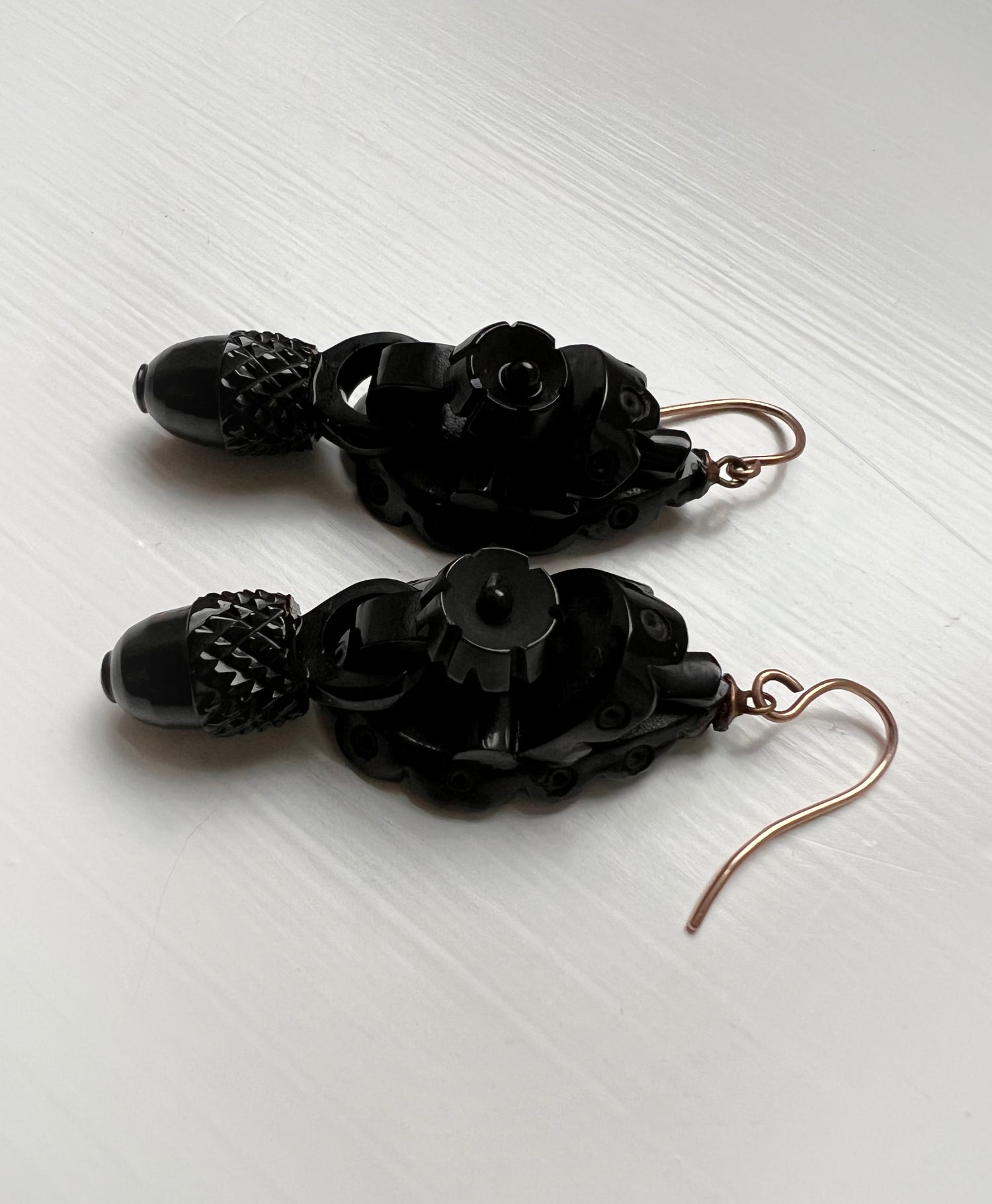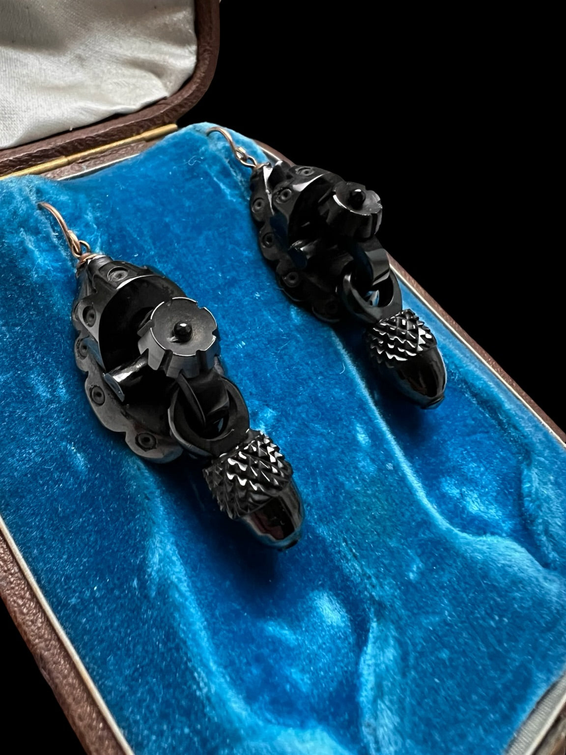 VICTORIAN WHITBY JET ACORN EARRINGS