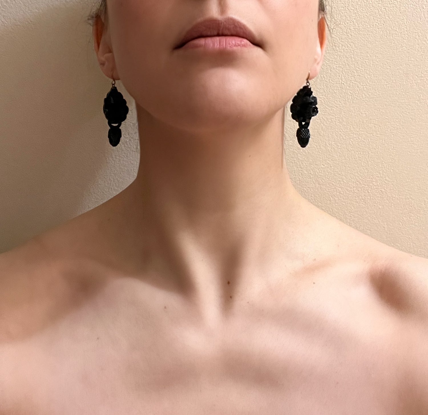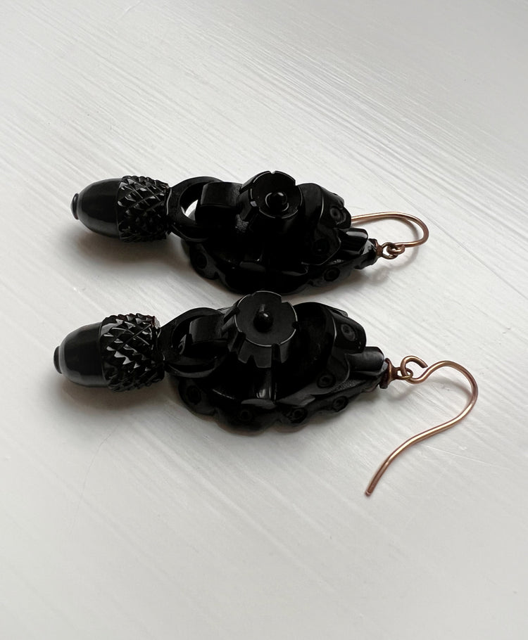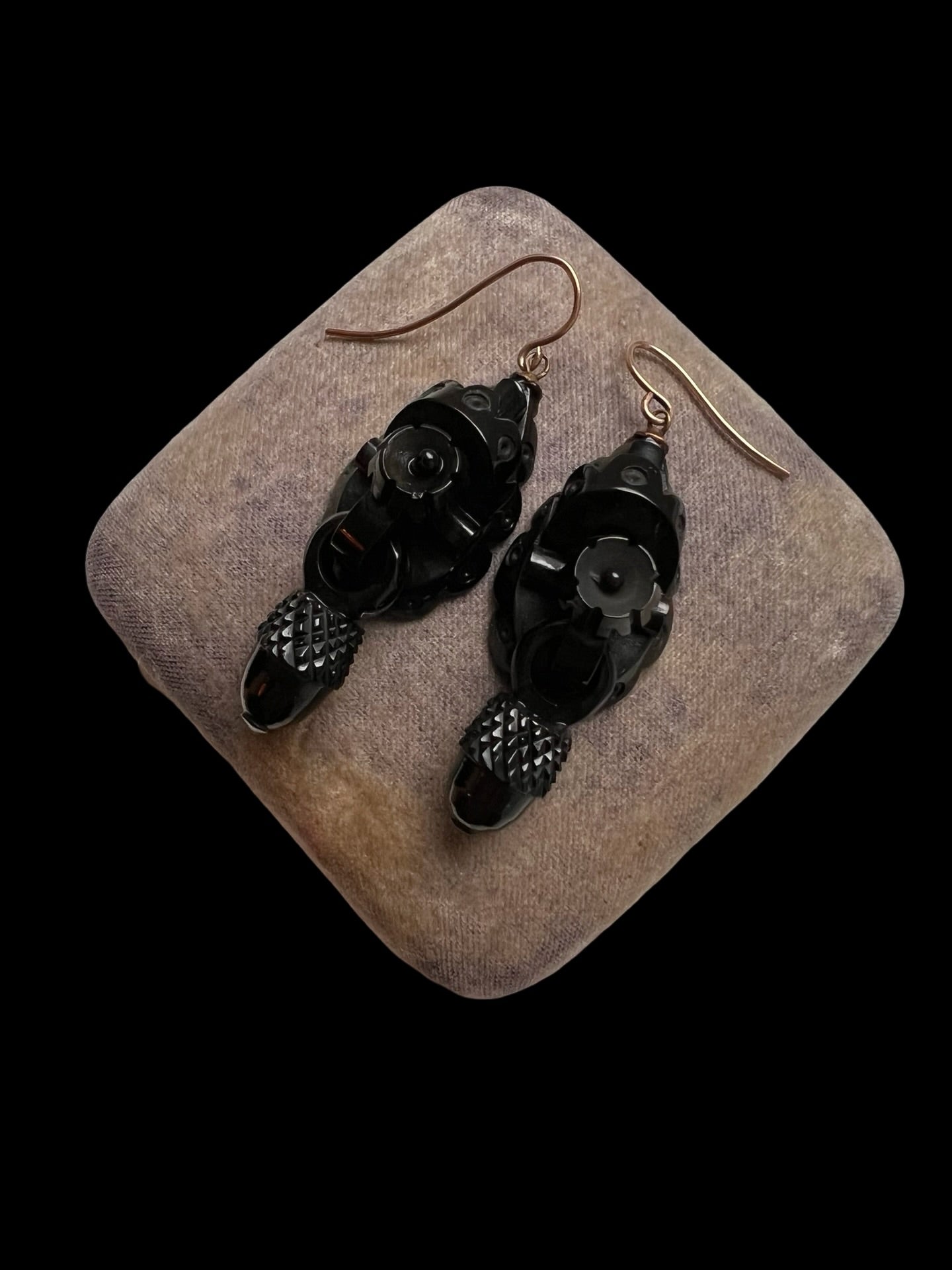 VICTORIAN WHITBY JET ACORN EARRINGS