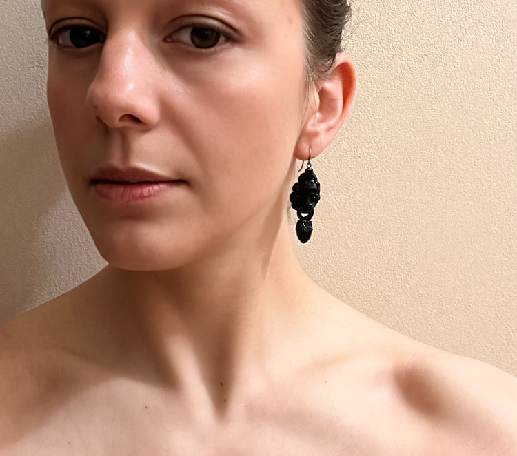 A super cool, super chunky pair of Victorian Whitby Jet earrings.