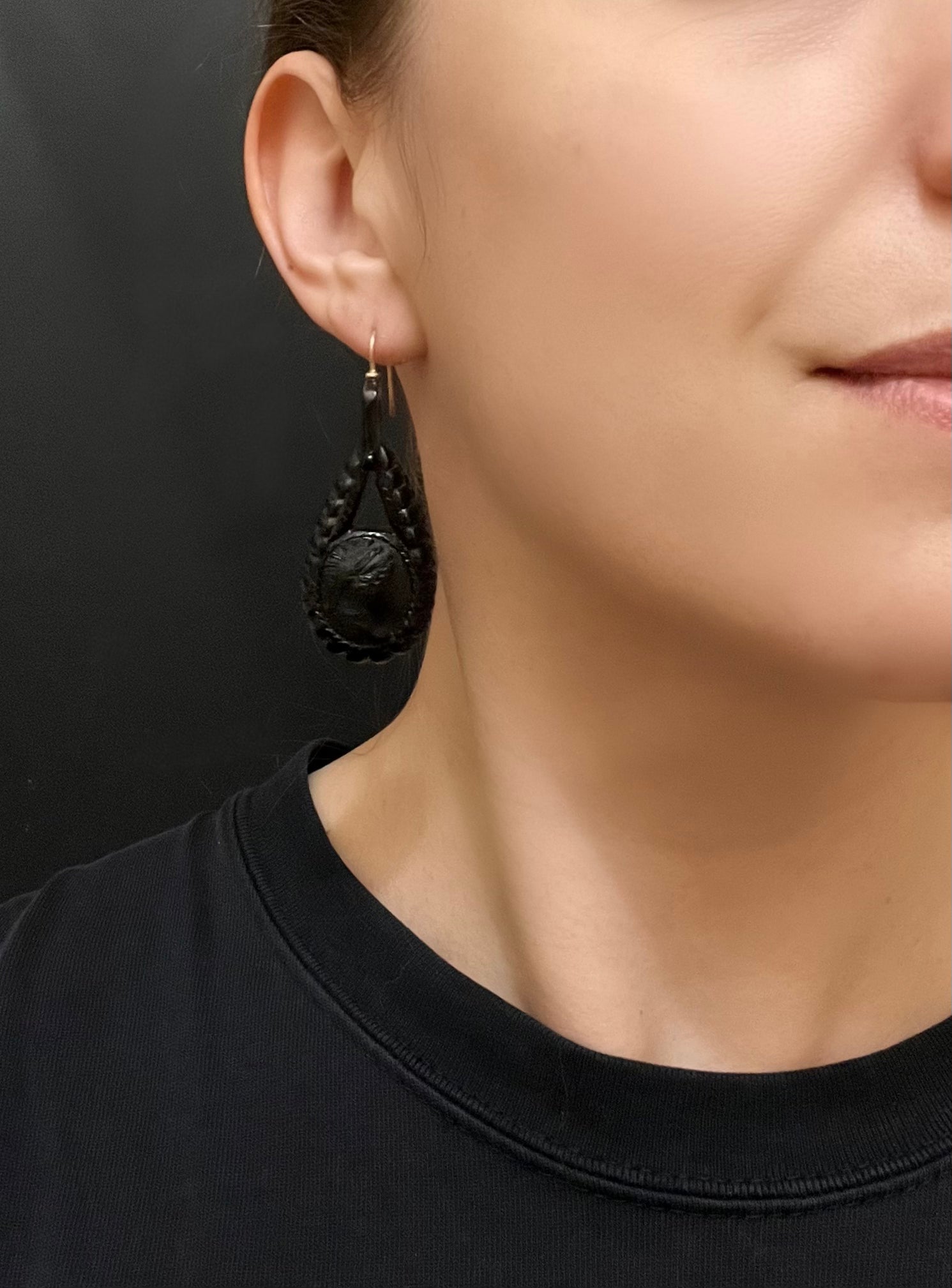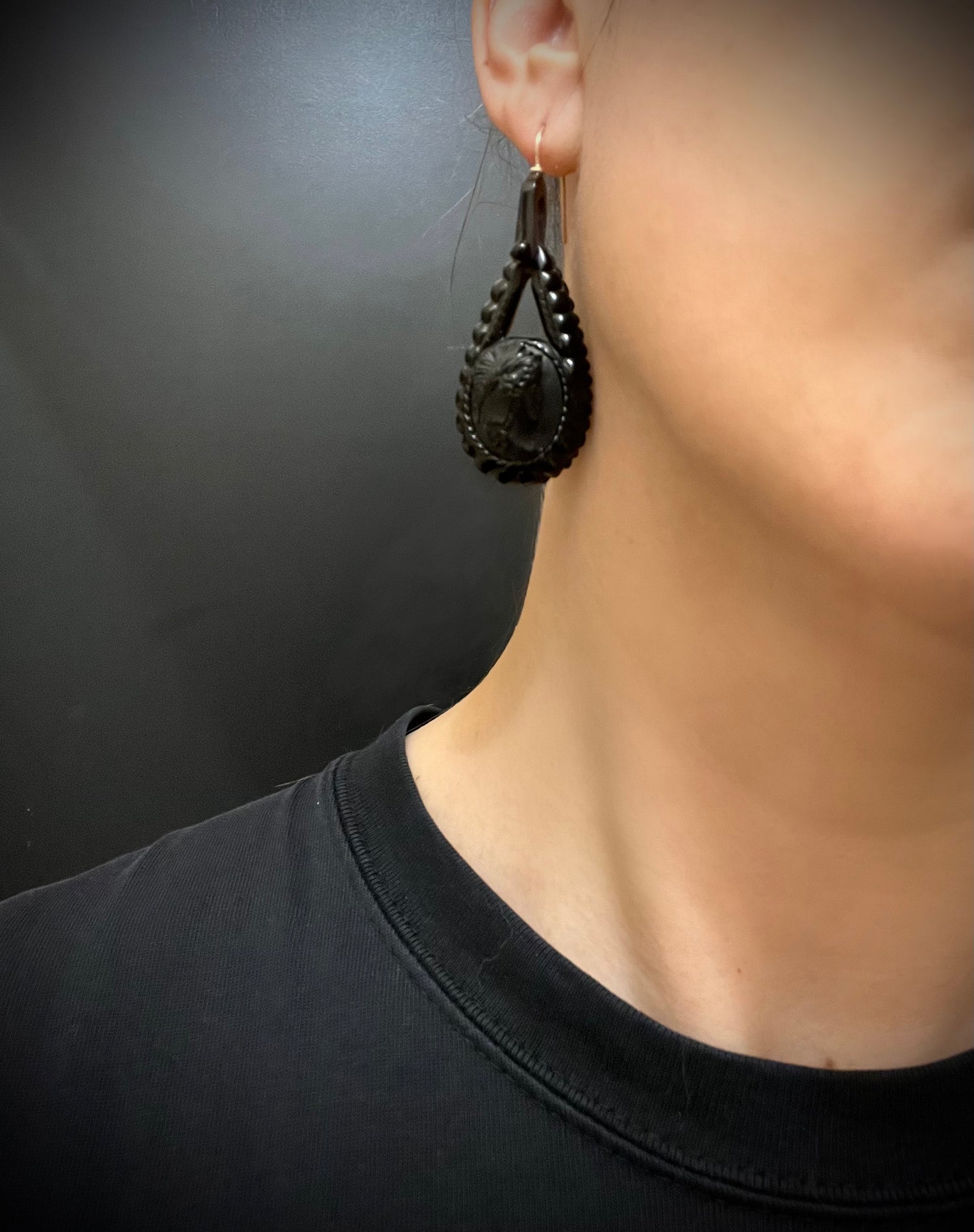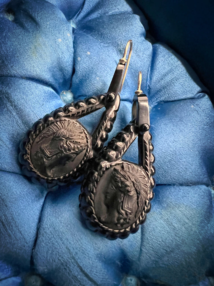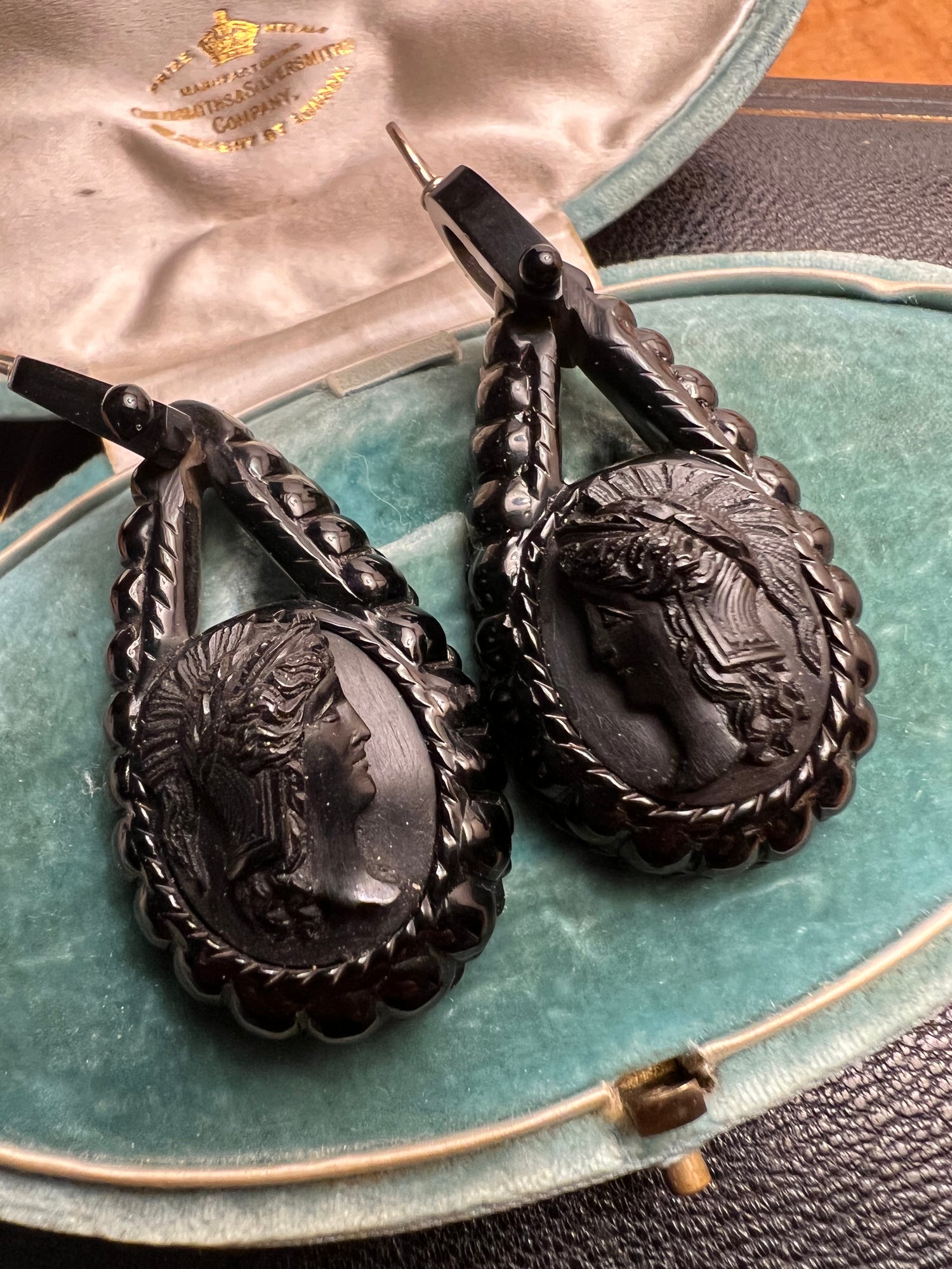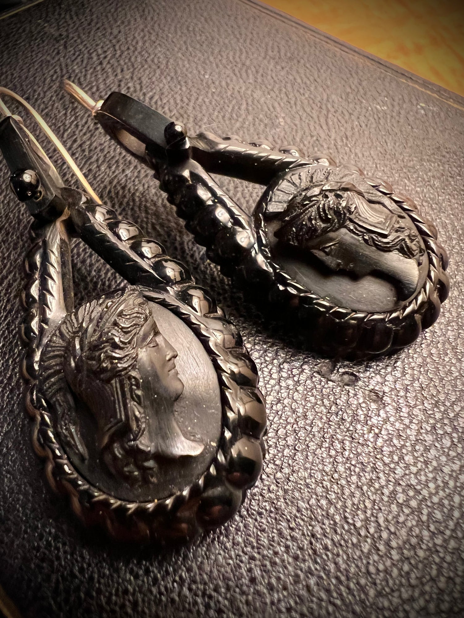 VICTORIAN WHITBY JET CAMEO EARRINGS