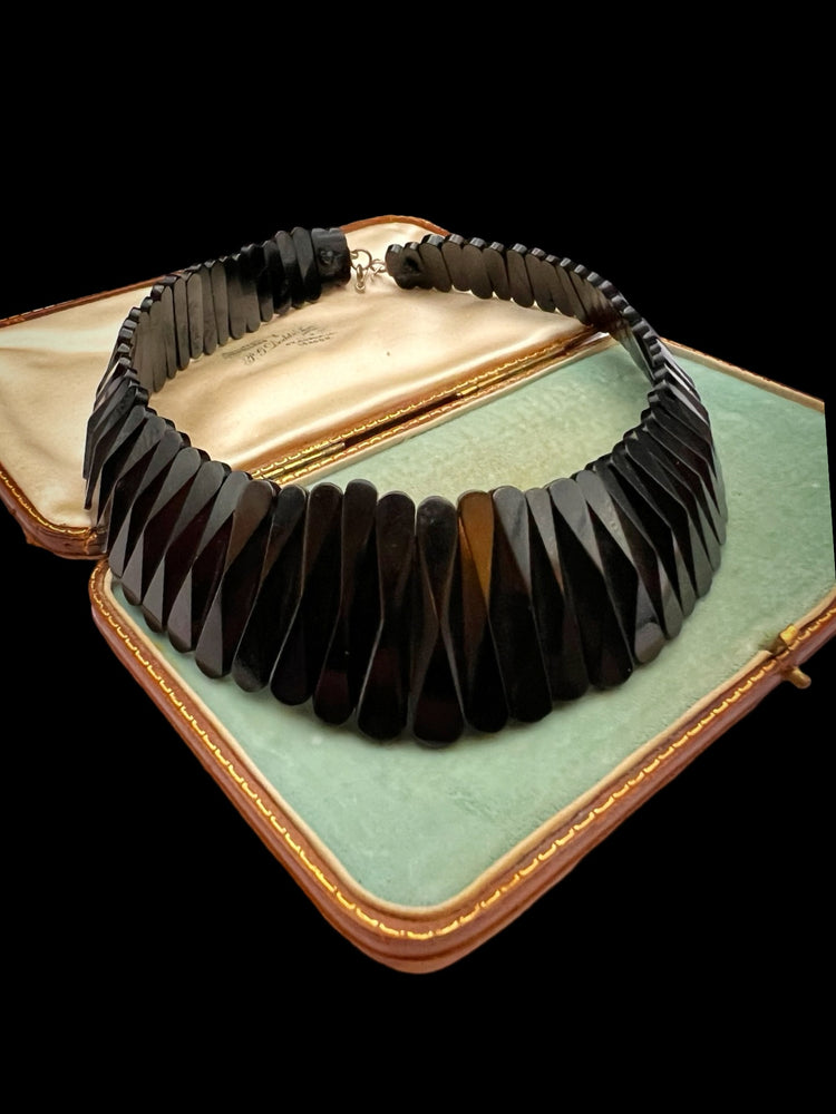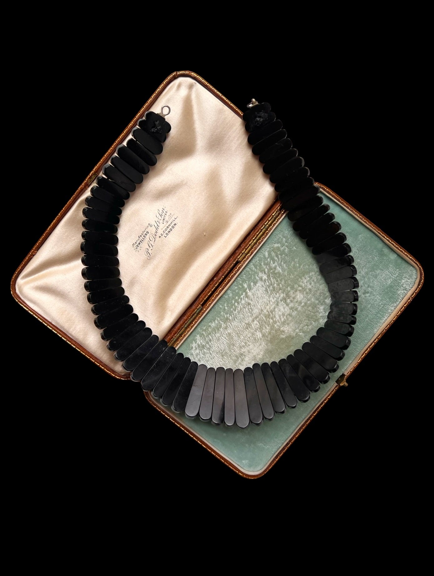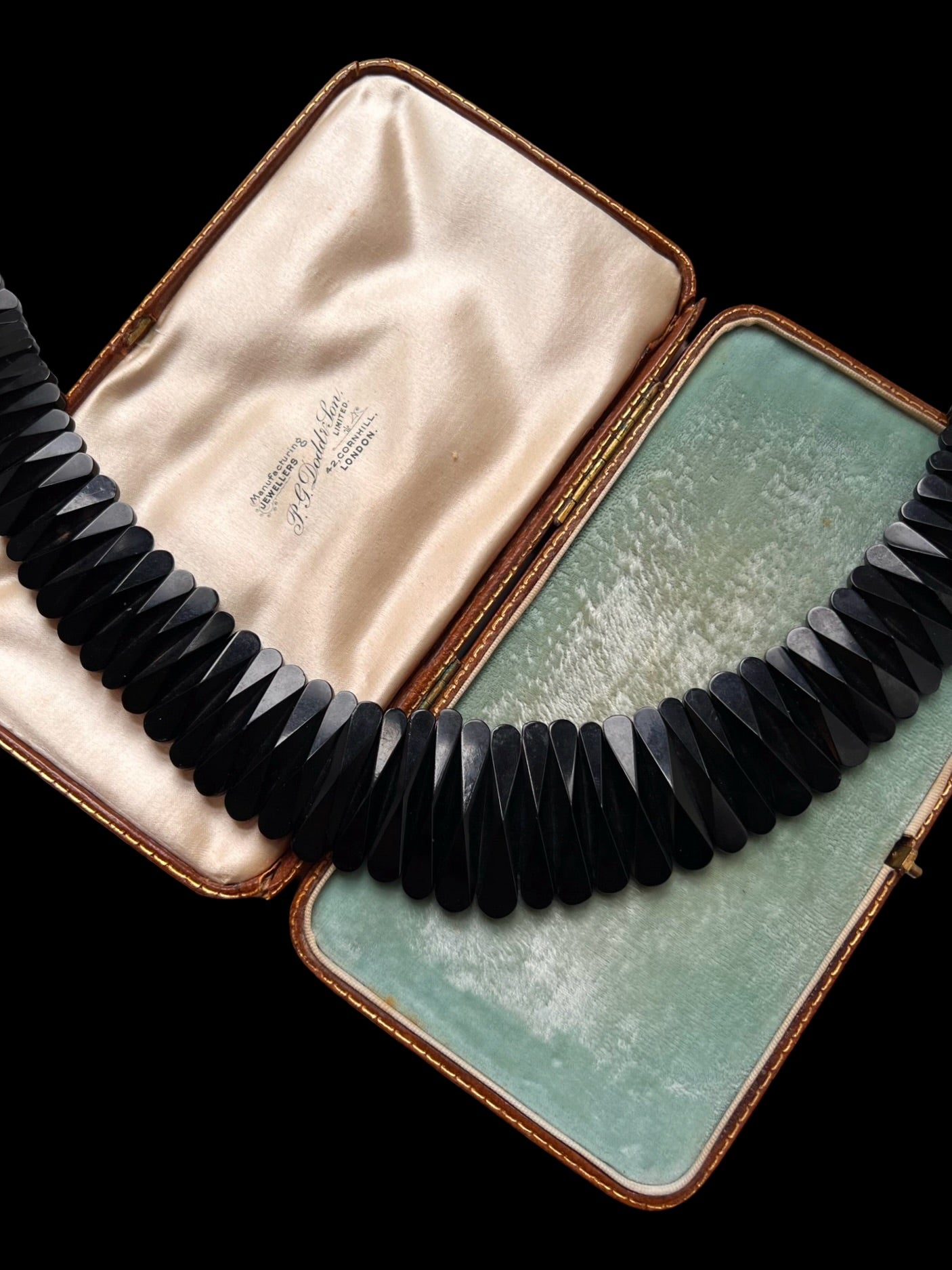 VICTORIAN WHITBY JET GEOMETRIC COLLAR NECKLACE