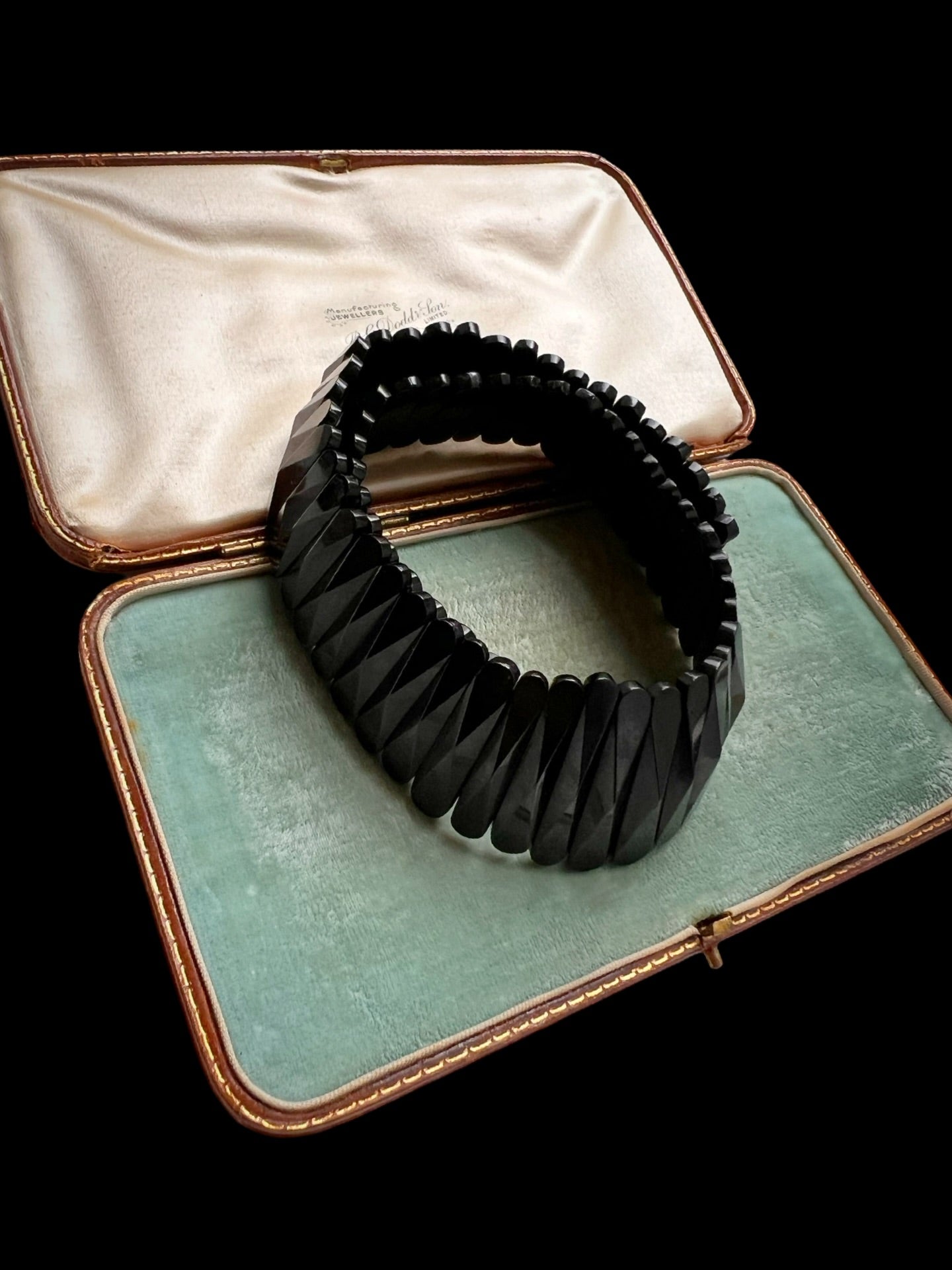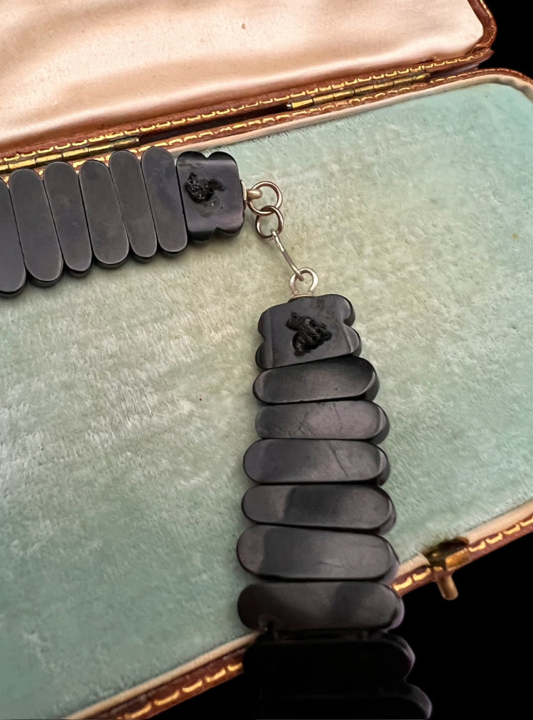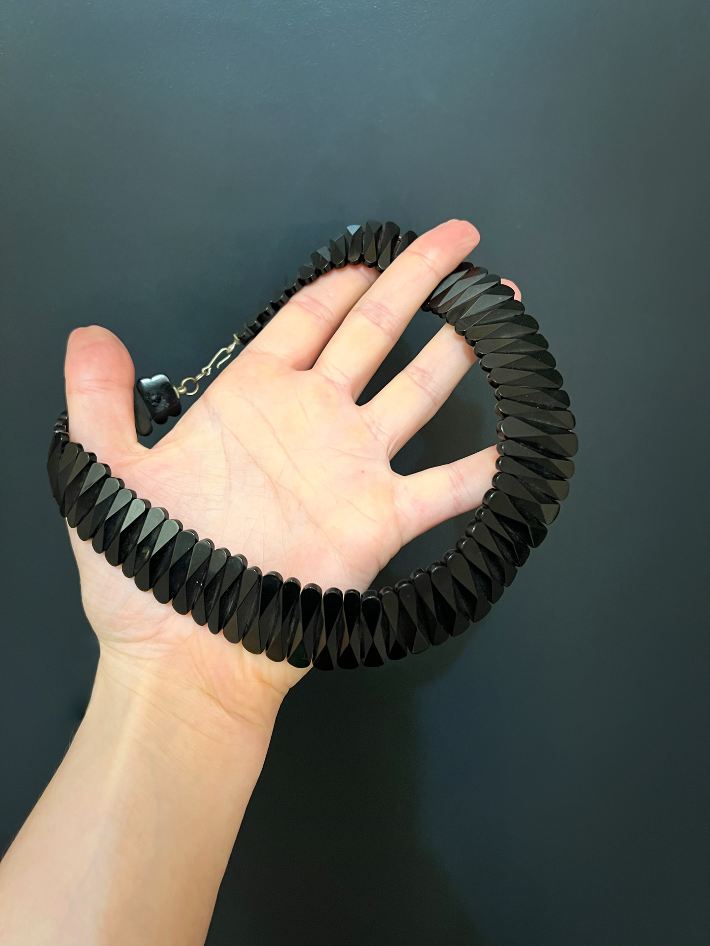 VICTORIAN WHITBY JET GEOMETRIC COLLAR NECKLACE