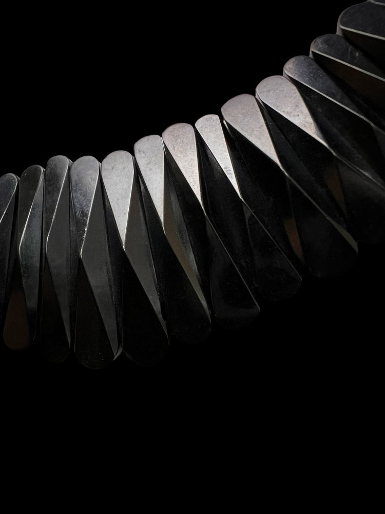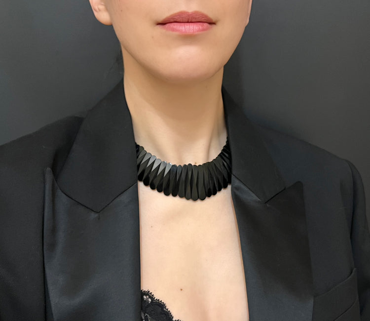 The necklace creates a wonderfully dramatic look, that could easily pass as a modern avant-garde design, yet was created over 100 years ago.