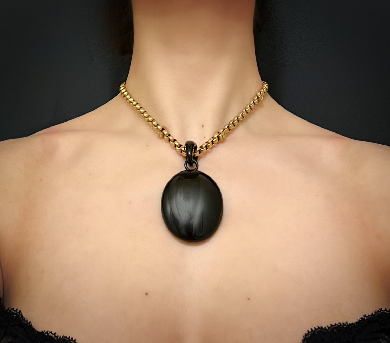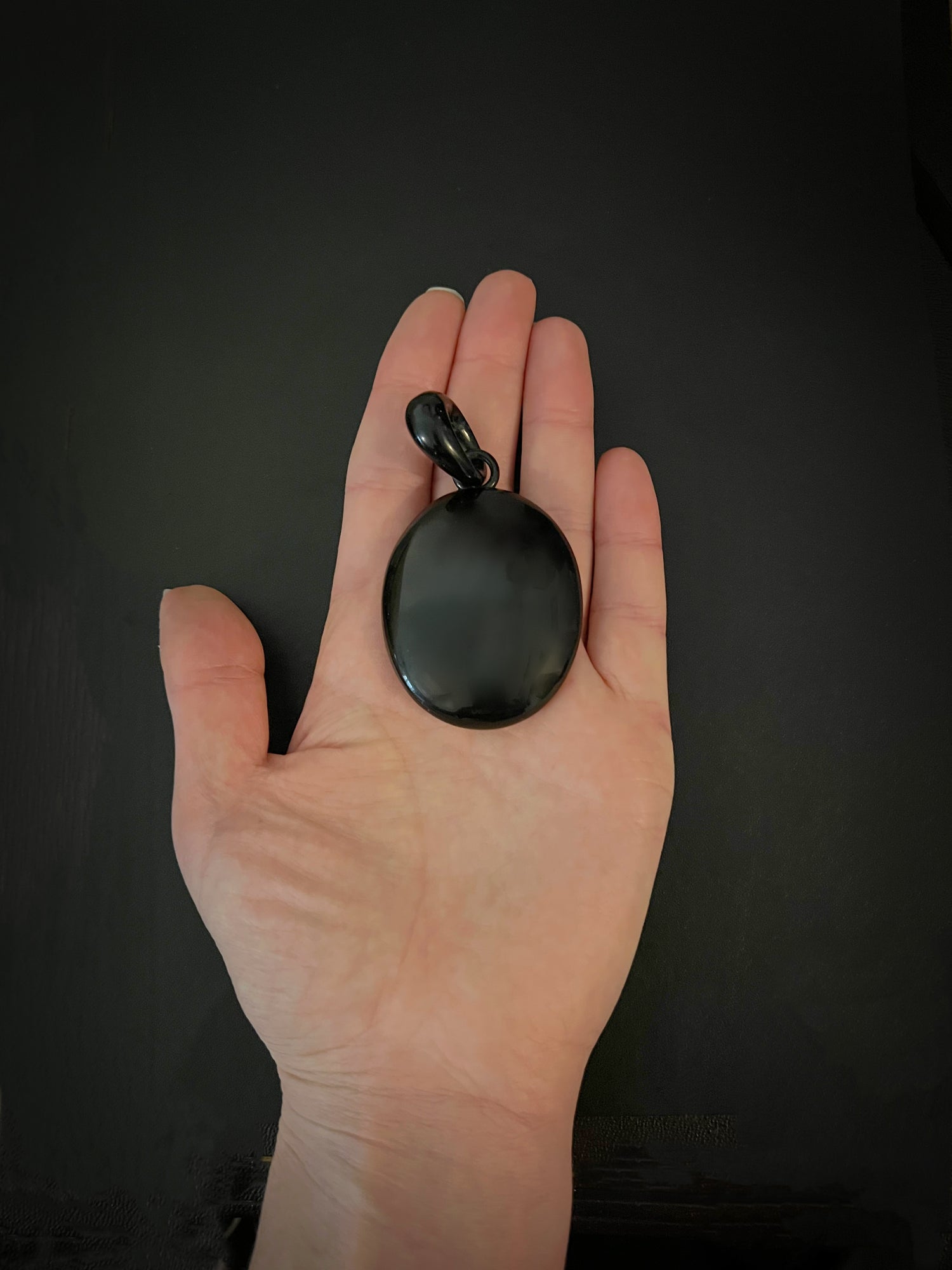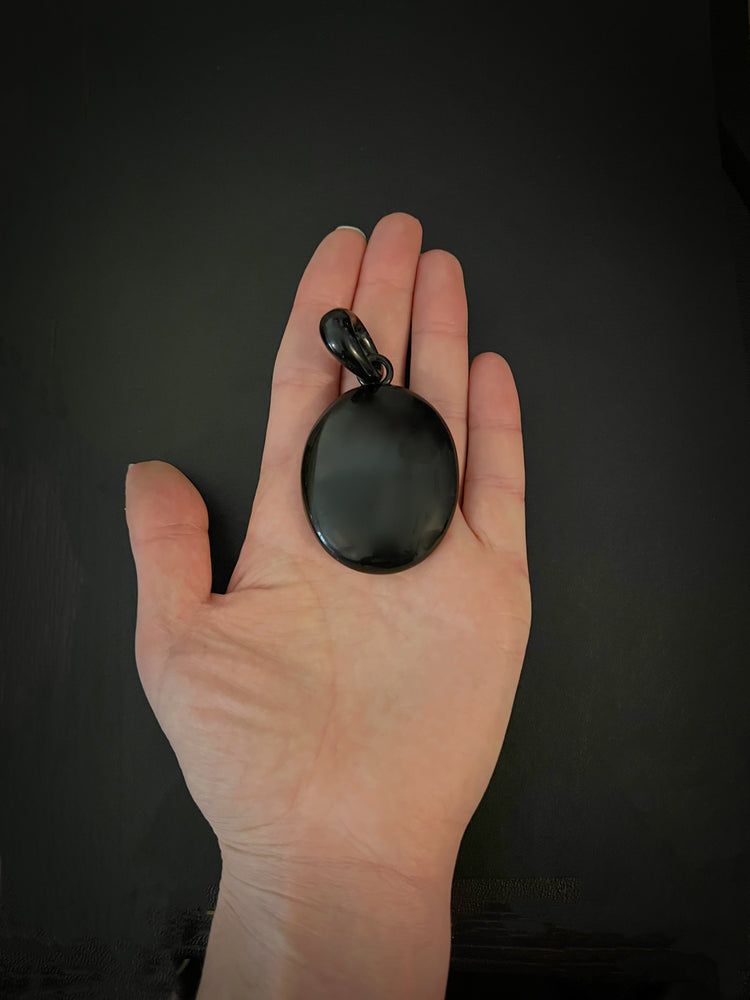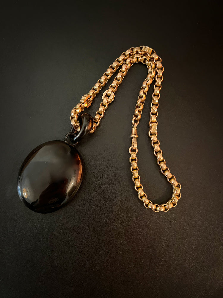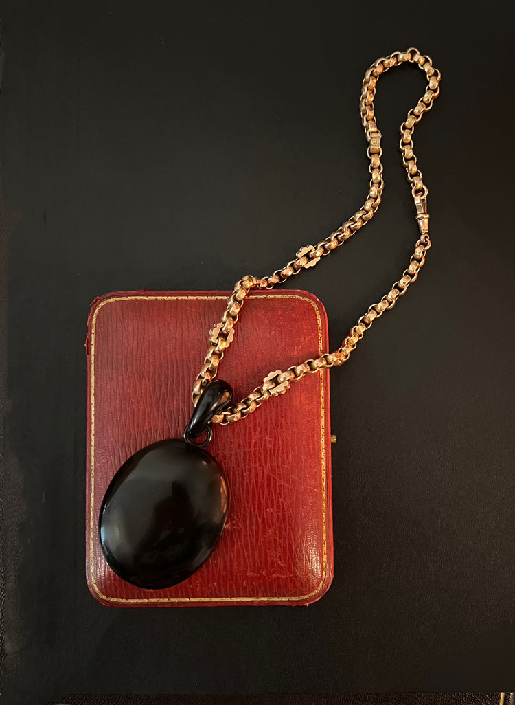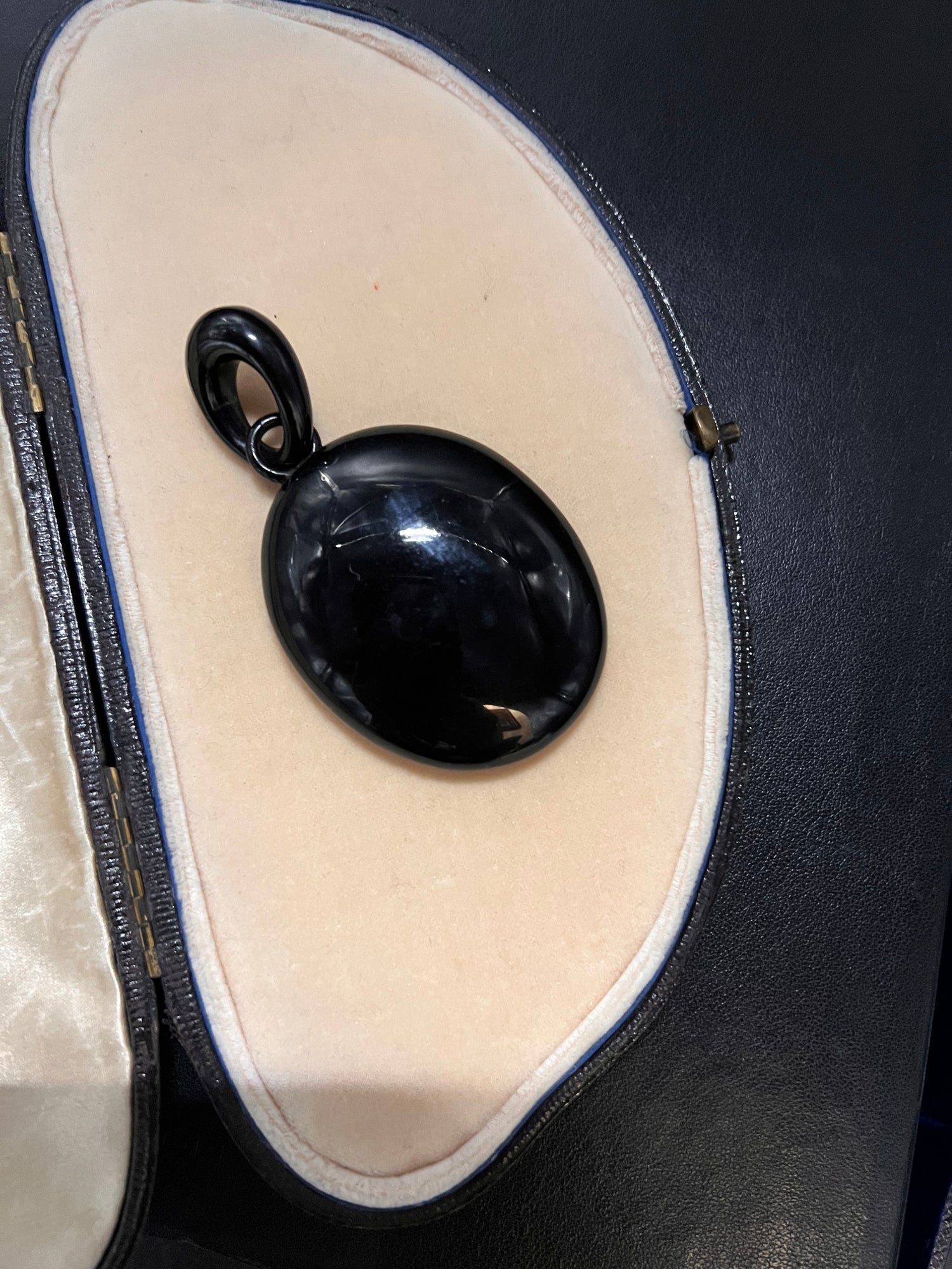 Circa 1880, the jet is beautifully domed on the front, and flat on the back, which ensures the locket sits well when worn.