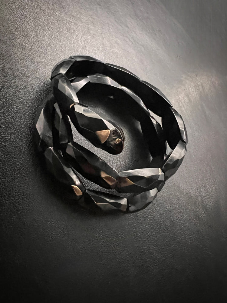 Made in England, circa 1870, the jet is faceted and polished to create the beaded snake body and head!
