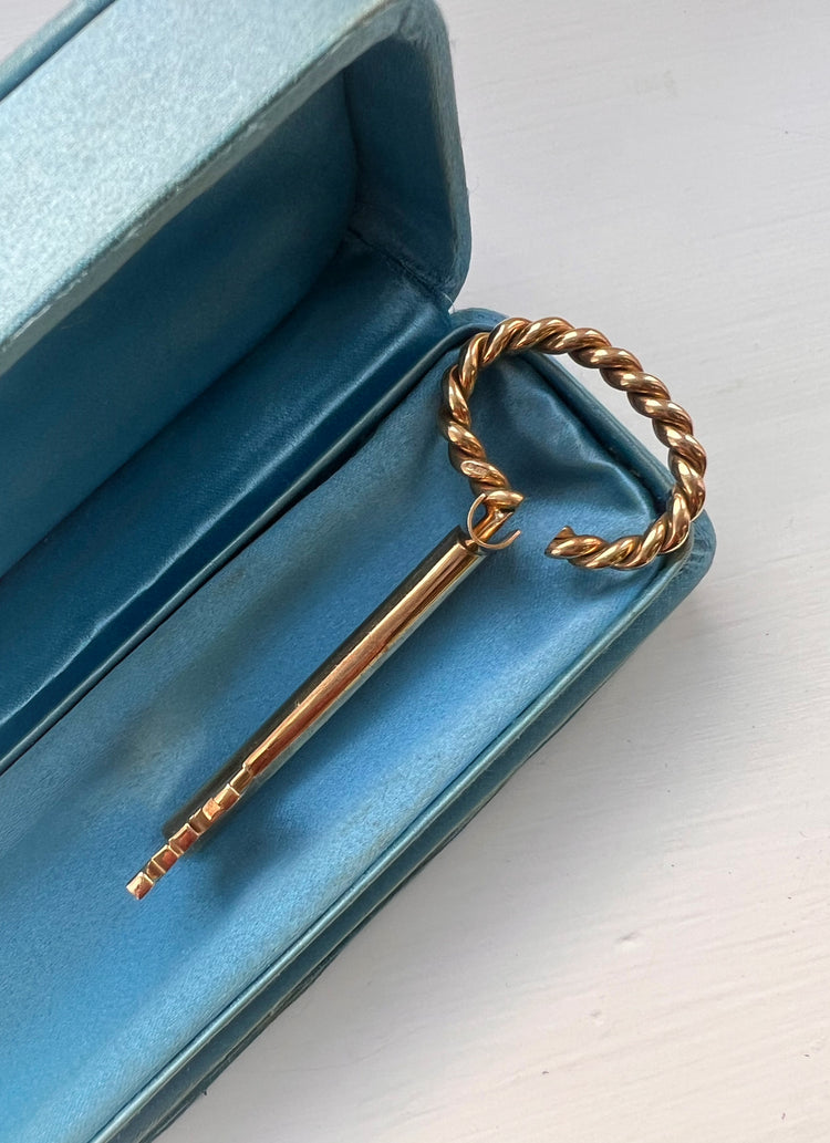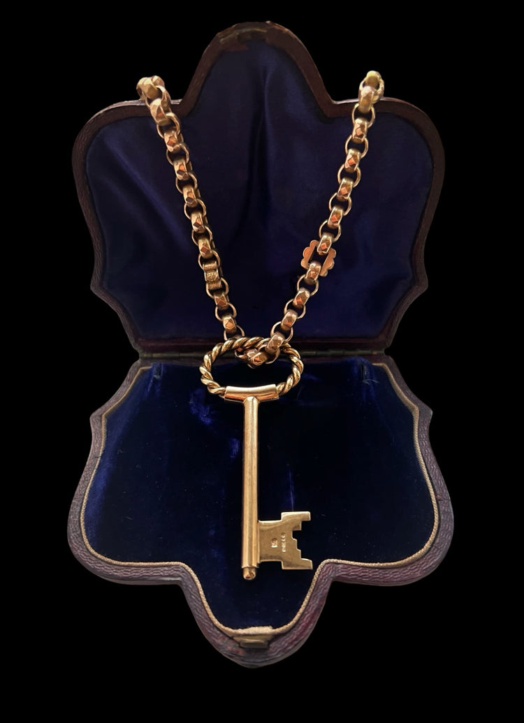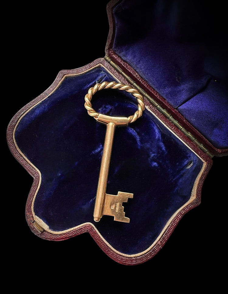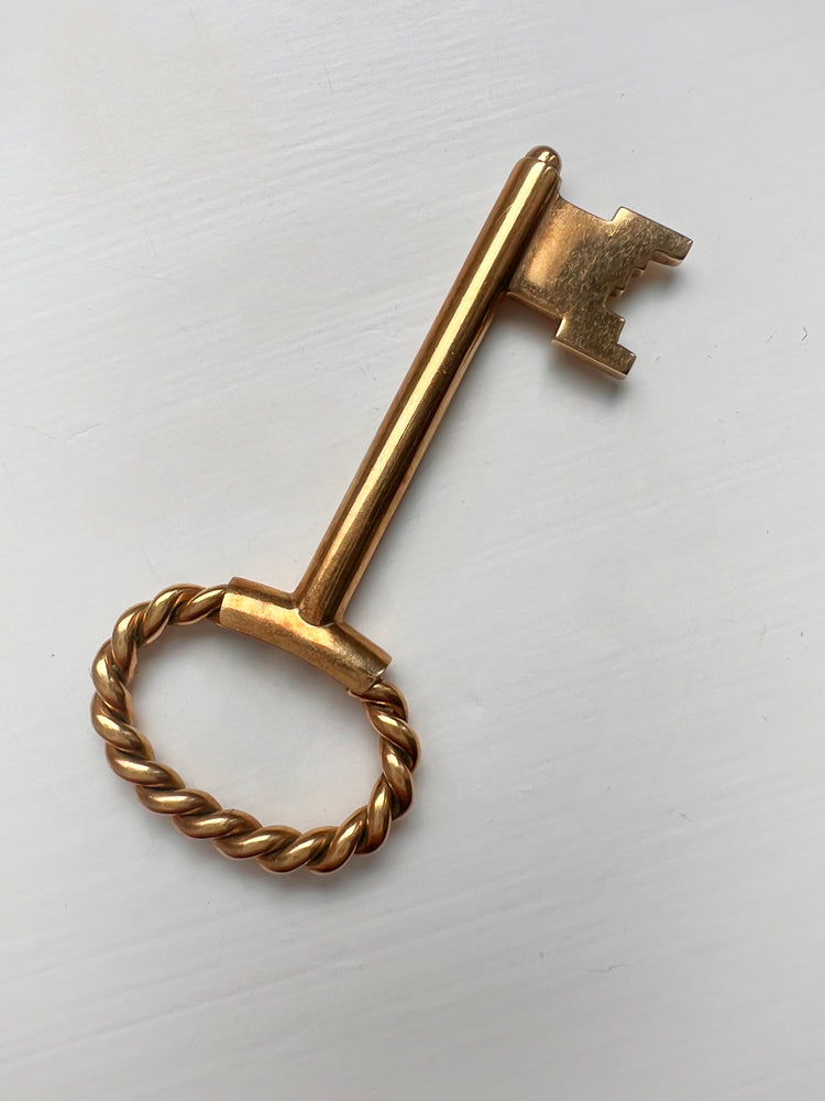 Made of 9ct gold the key is a super modern design, with a rope twist bow and a classic shaft and bit that are super chunky.