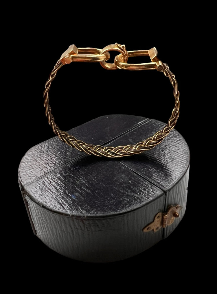 A super stylish 18ct gold snaffle and elephant hair bracelet.