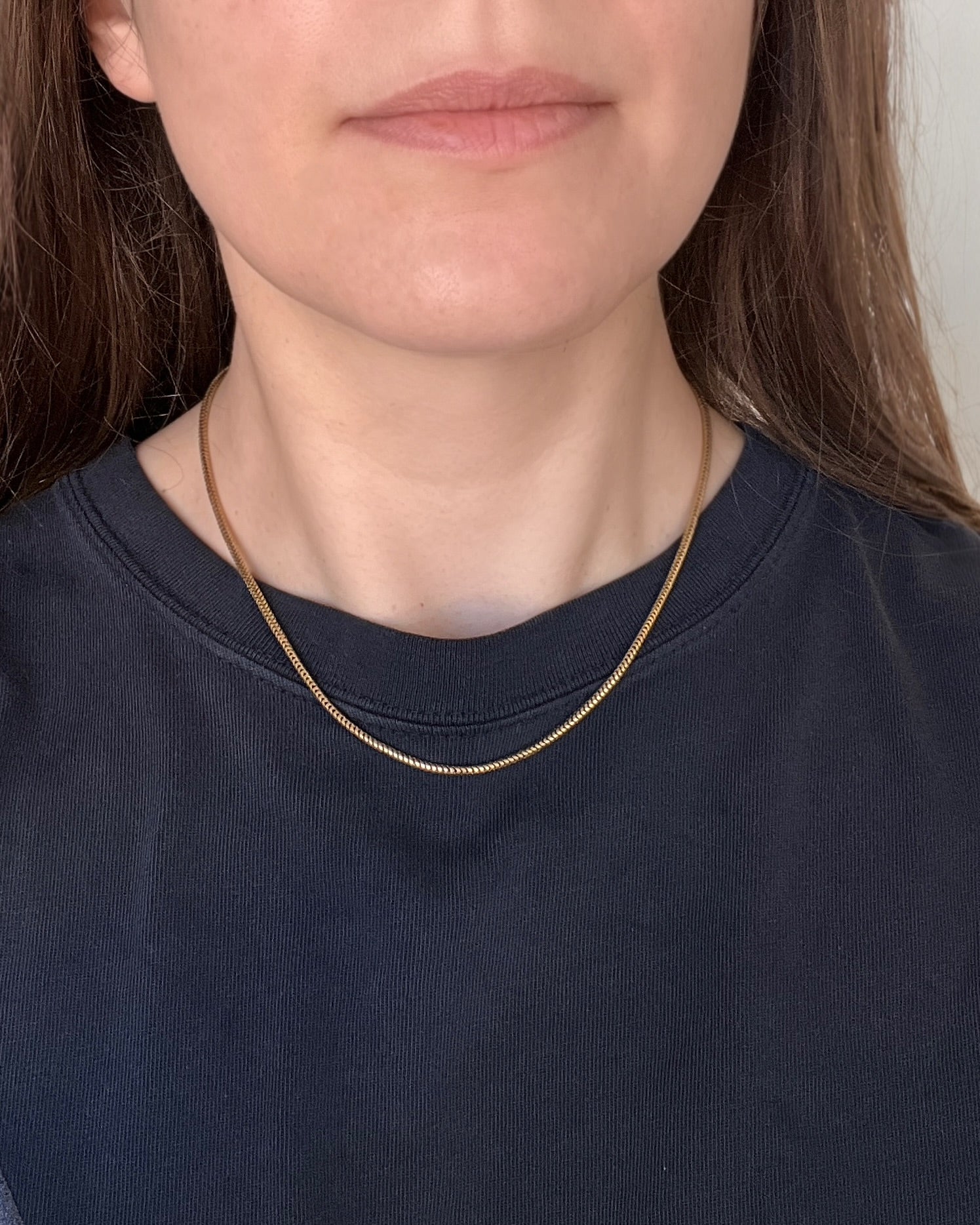 This link chain looks great alone, or with pendants, or worn with multiple chains. It’s super versatile.