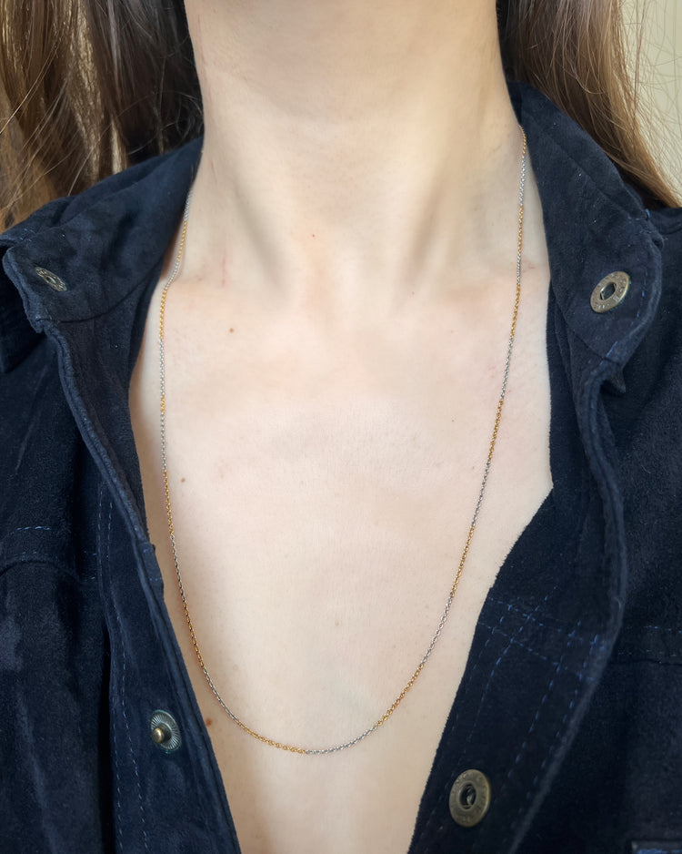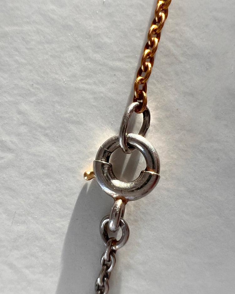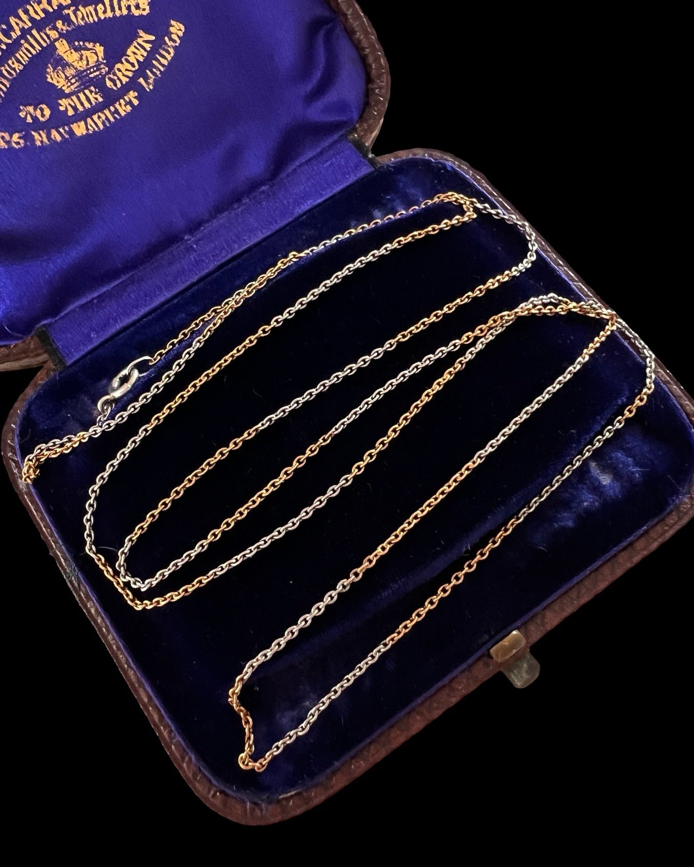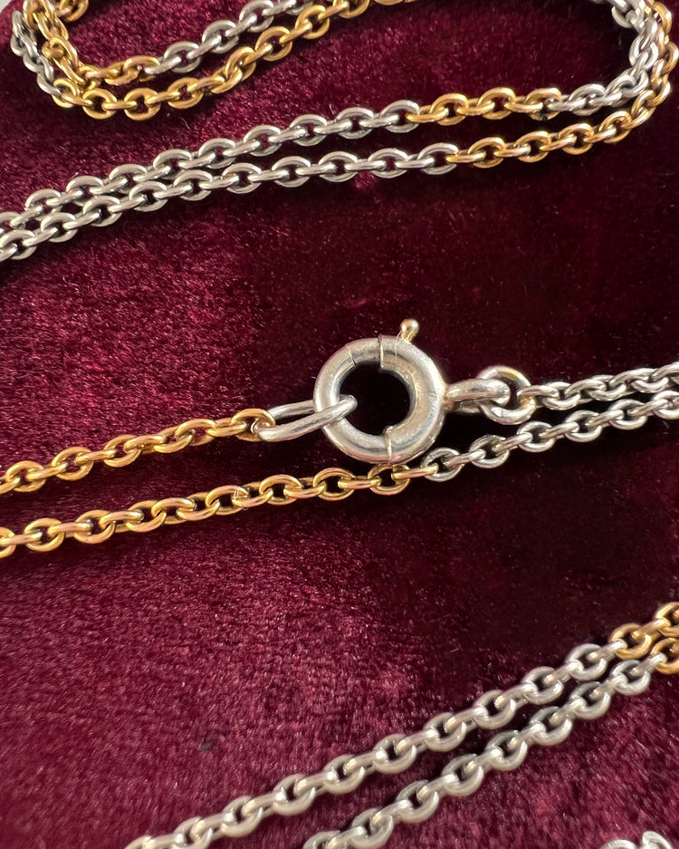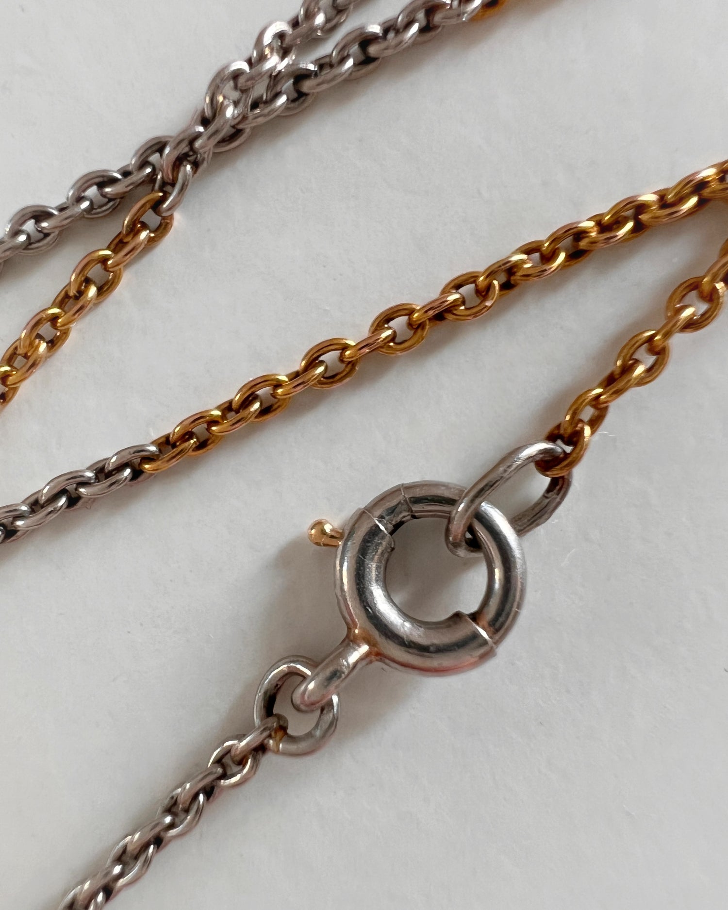 The chain closes with the original bi colour tiny bolt ring, which is platinum with a tiny 18ct gold lever!