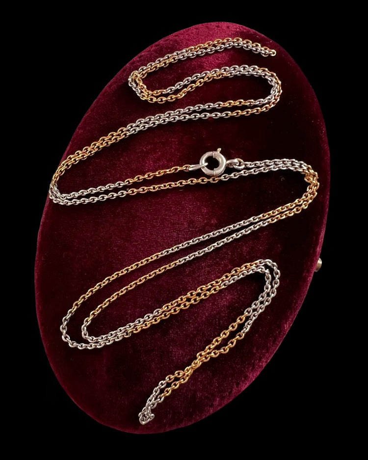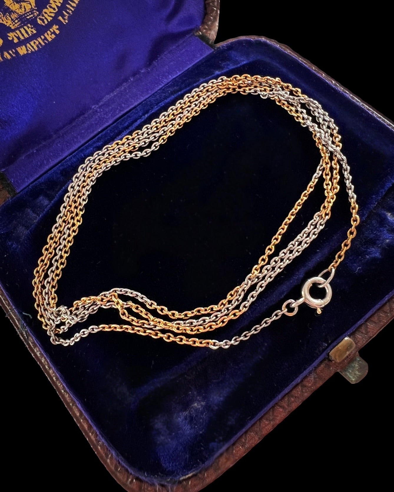 ANTIQUE 18CT GOLD & PLATINUM BI COLOUR MICRO BELCHER CHAIN