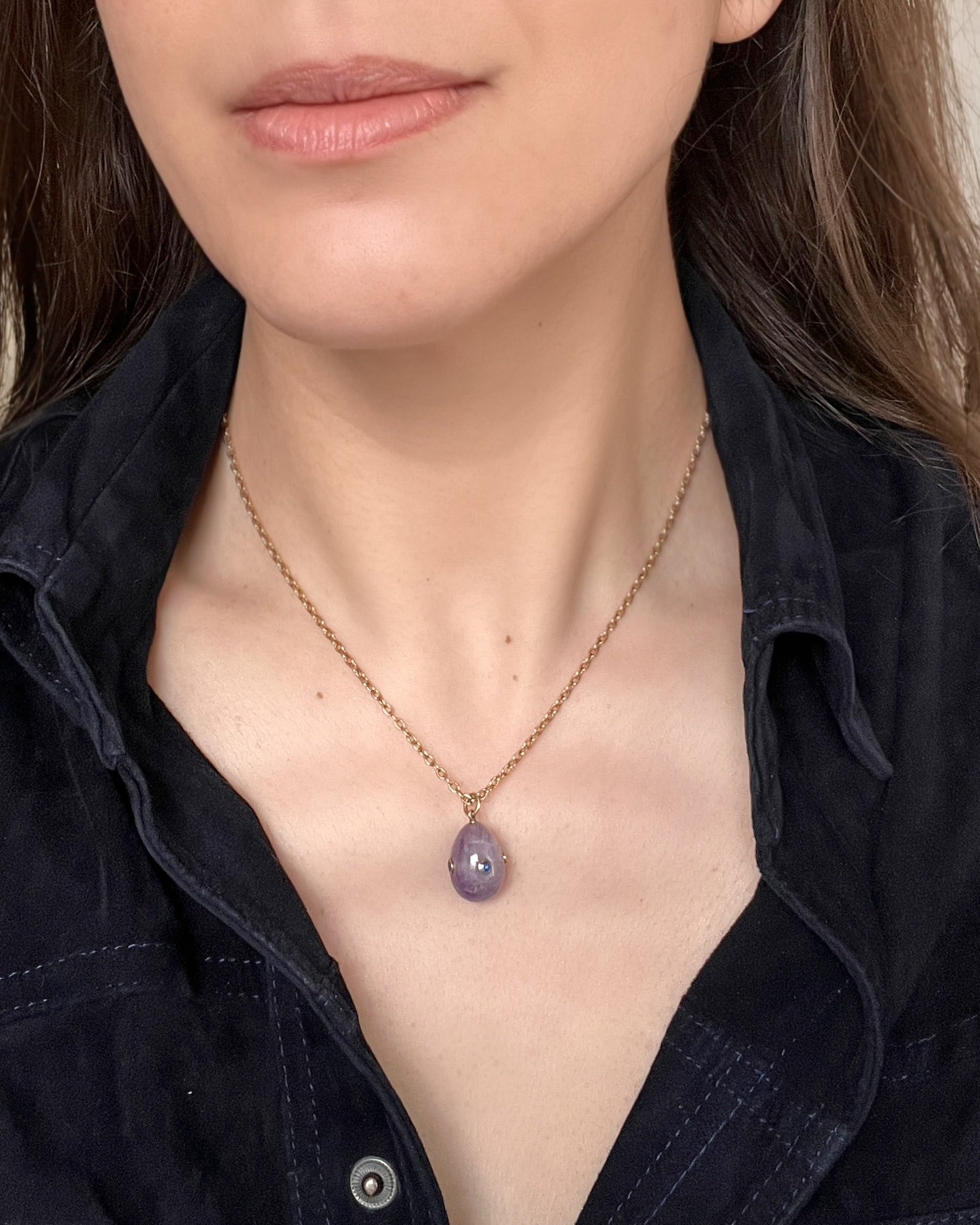 The amethyst has multiple natural inclusion which make the stone so interesting from every angle.