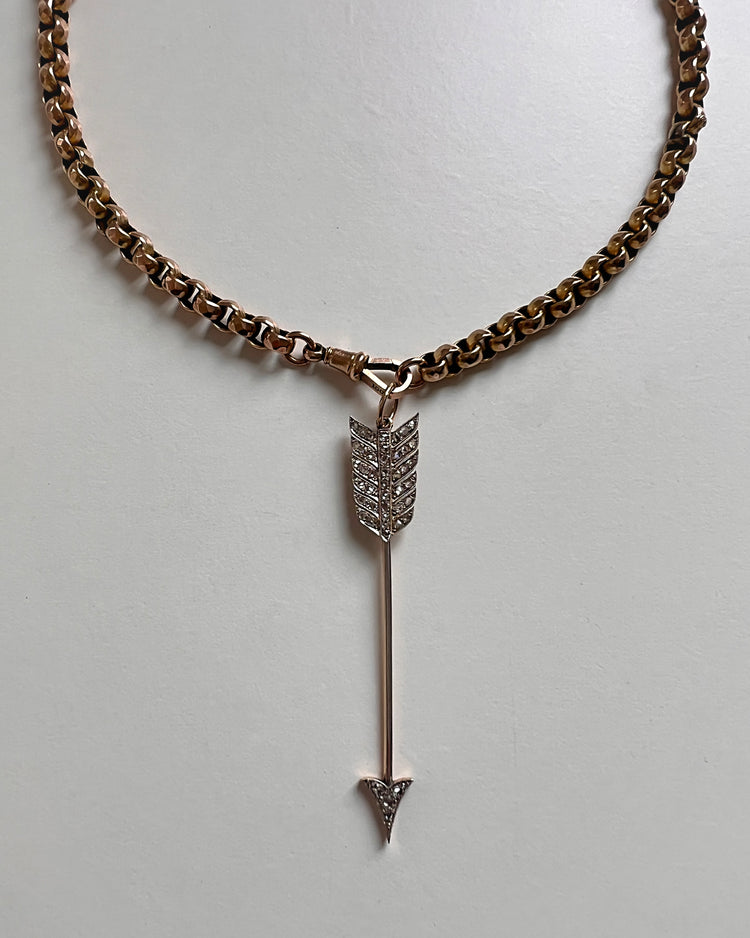 The rose cut diamonds are set in silver and twinkle beautifully in the light. The reverse of the arrow is 14ct gold.
