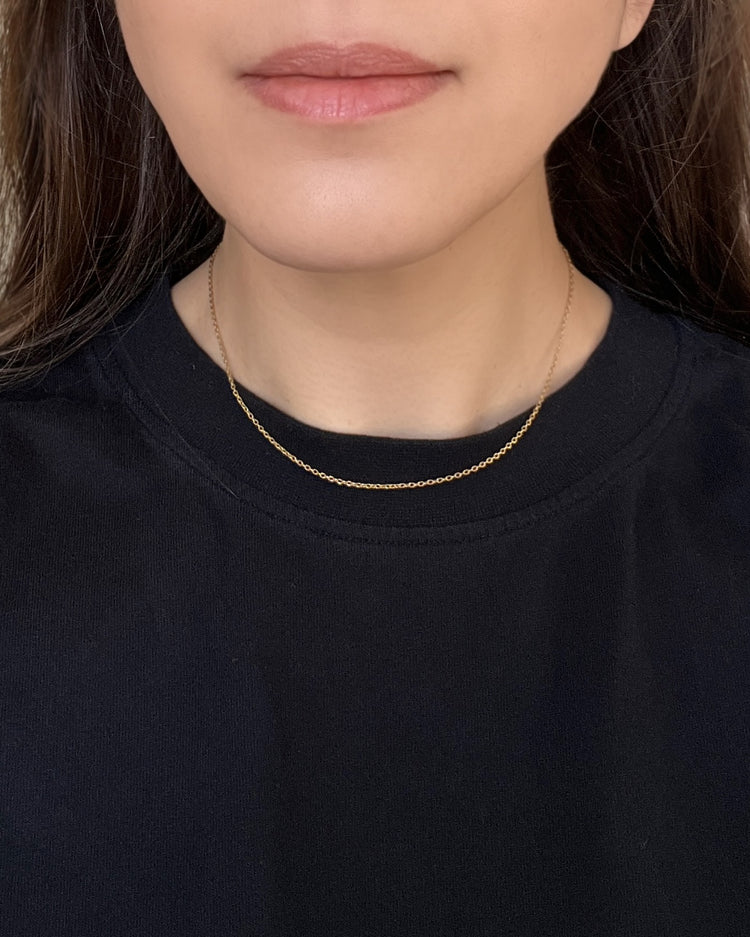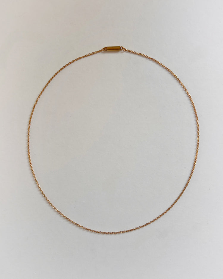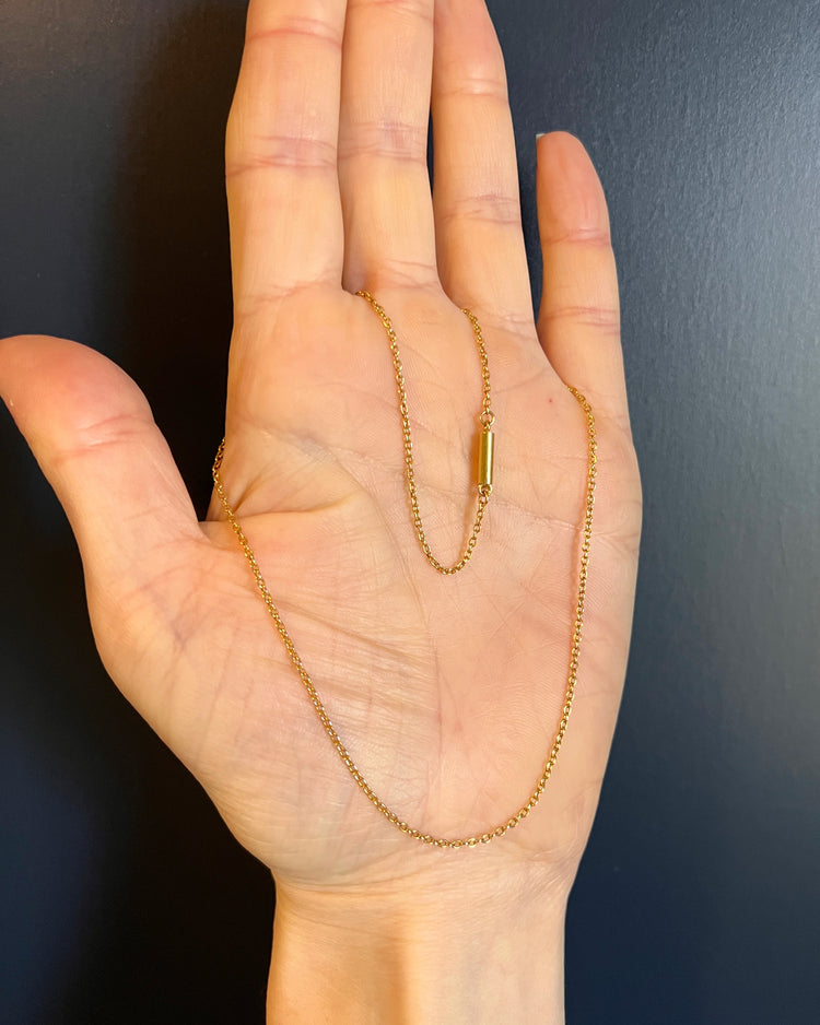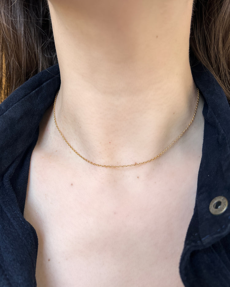 A super fine gauge 15ct gold cable link chain.