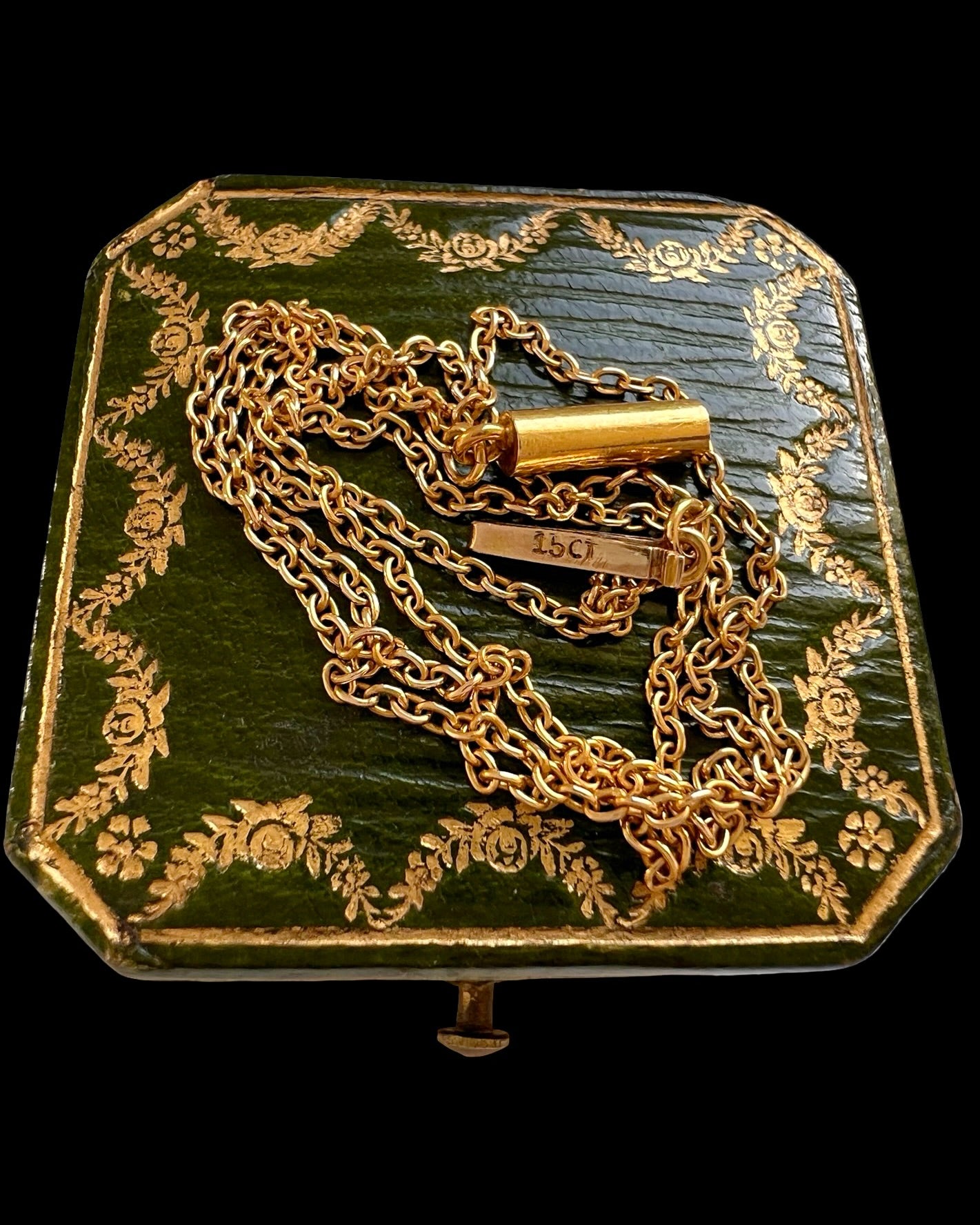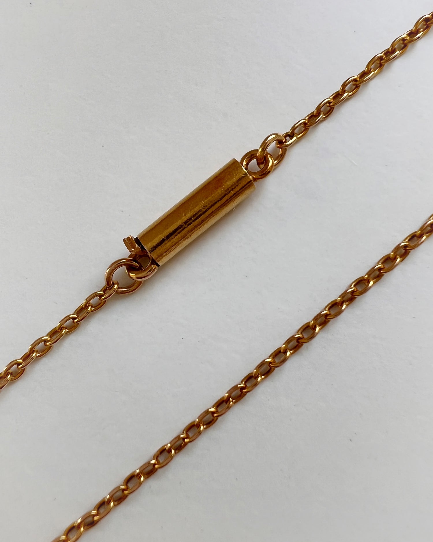 The chain closes with a simple barrel clasp that is marked 15ct on the tongue.