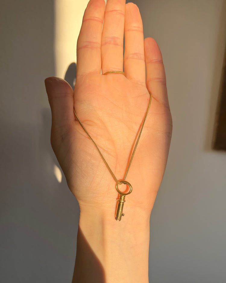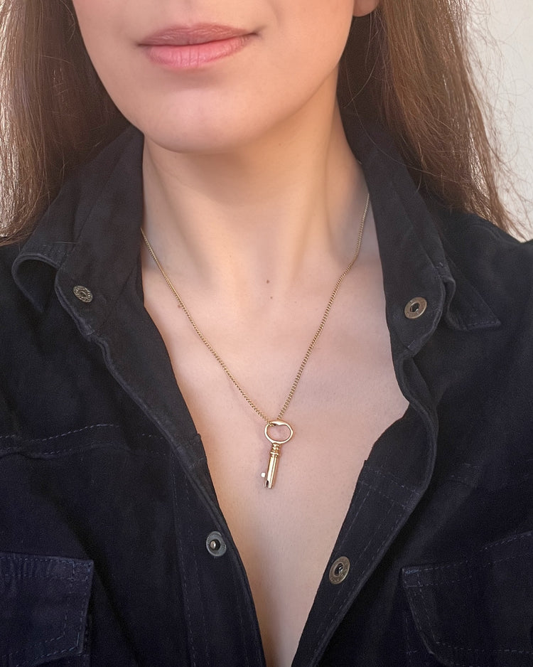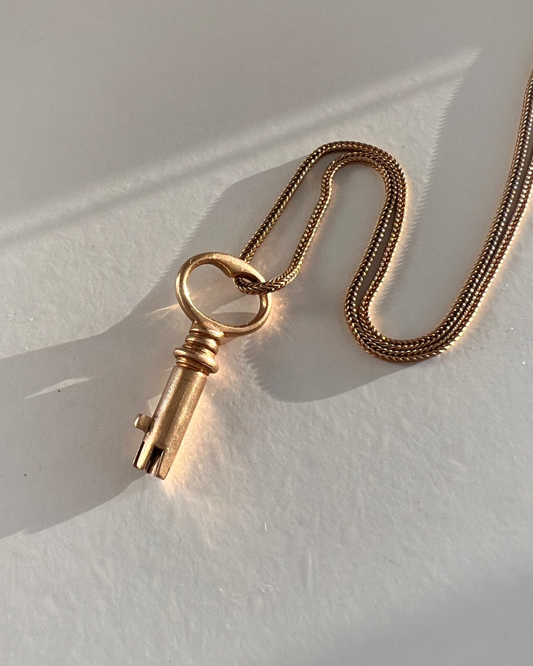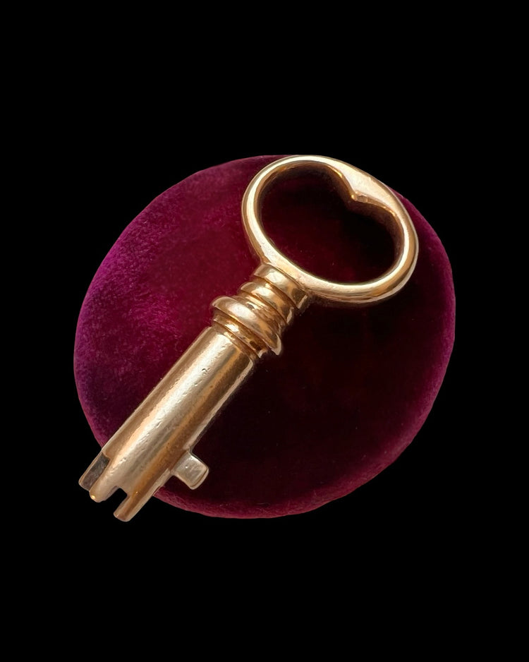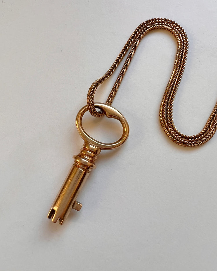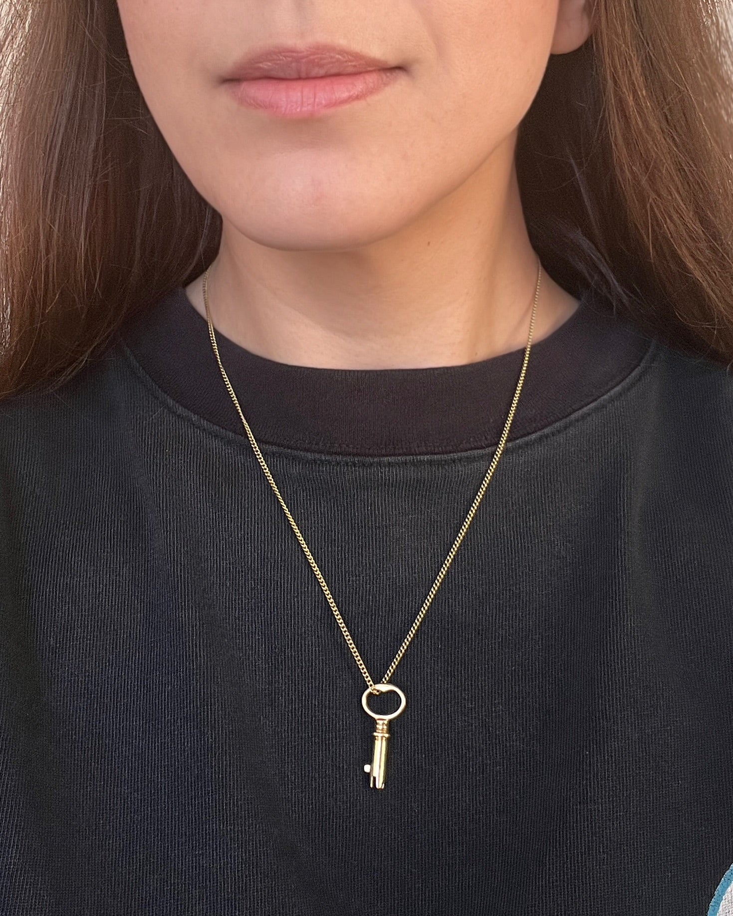 A super stylish, super chunky Bramah key pendant made of 14ct gold.