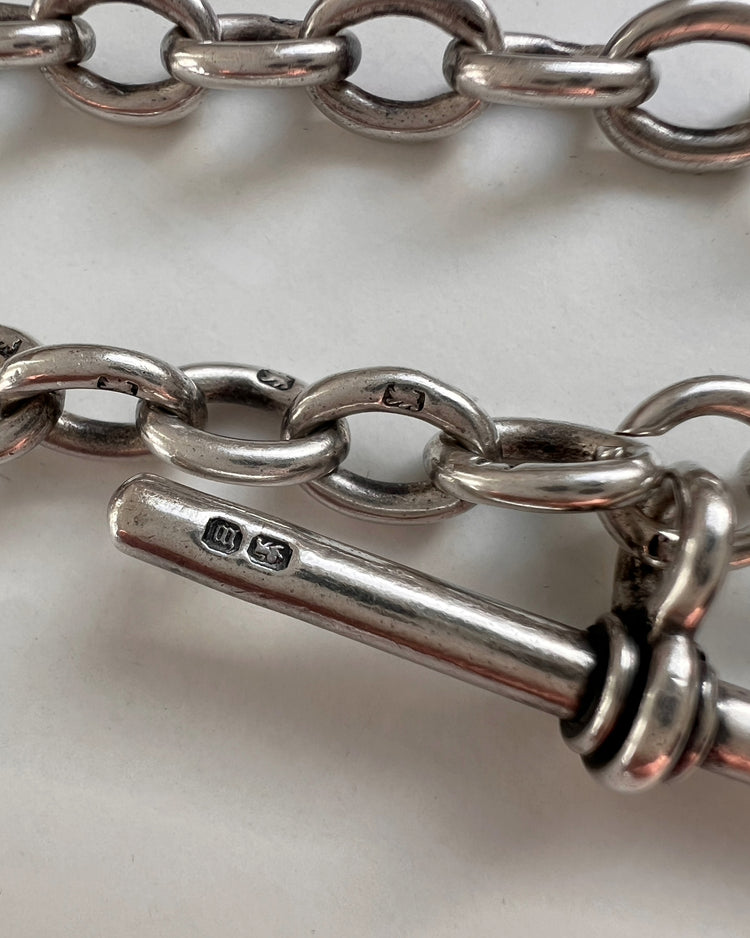 The chain is hallmarked on the t-bar for Birmingham 1896.