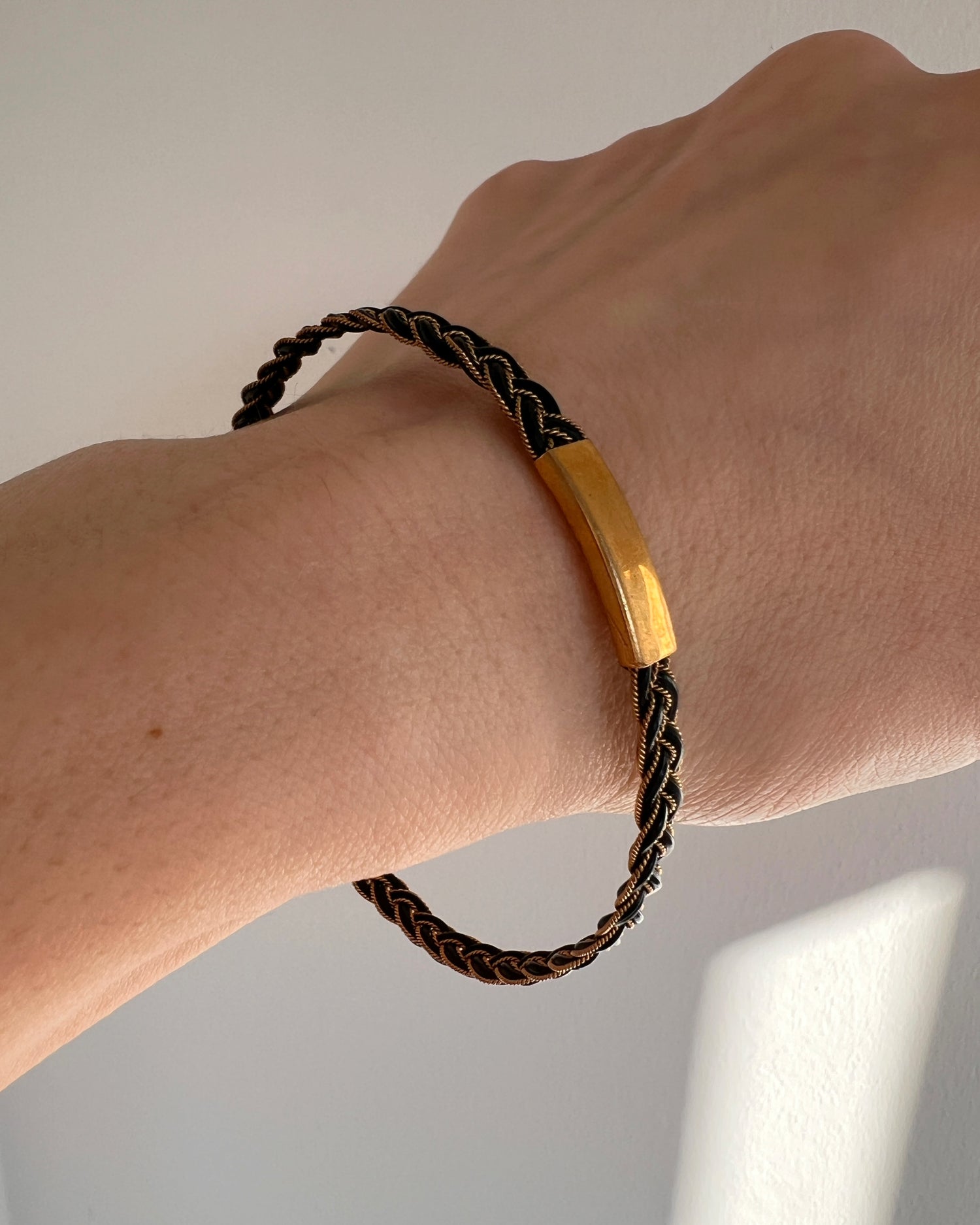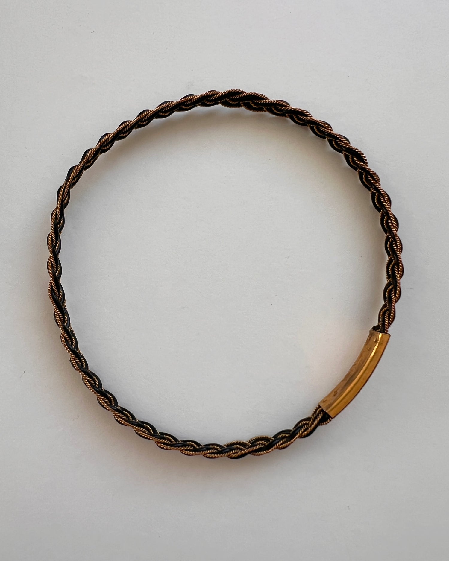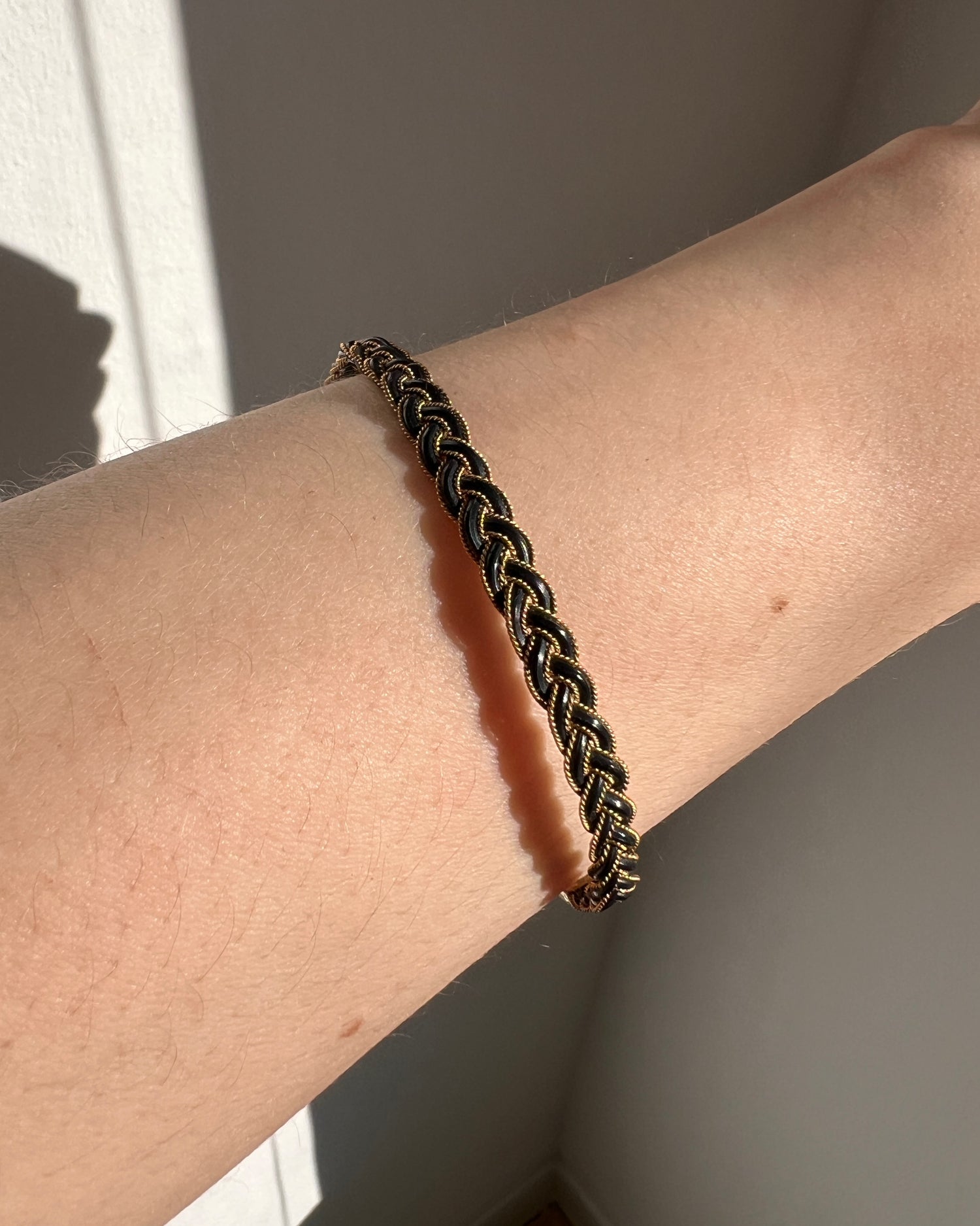 A gorgeous plaited elephant hair and 9ct gold bangle.