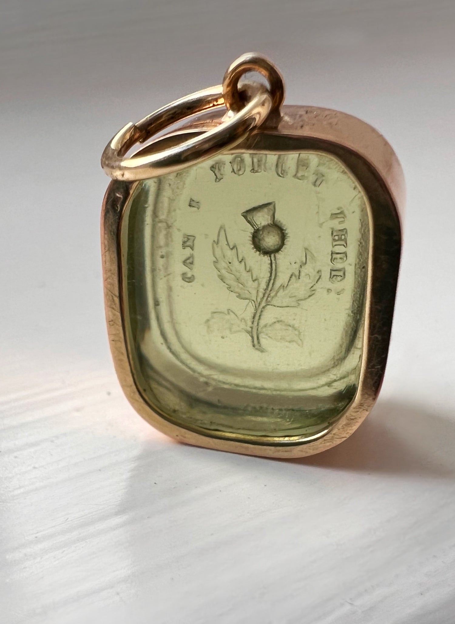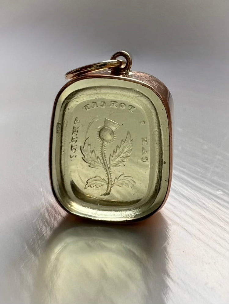 The intaglio has a finely carved leafy Thistle surrounded by the question ‘Can I forget thee?’