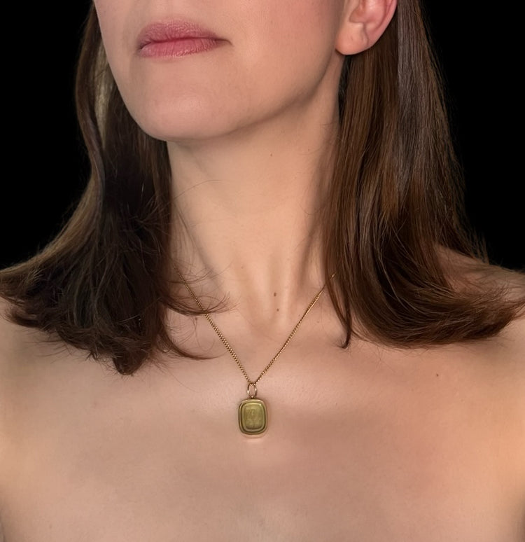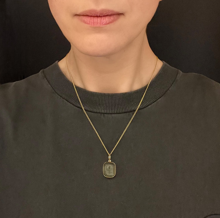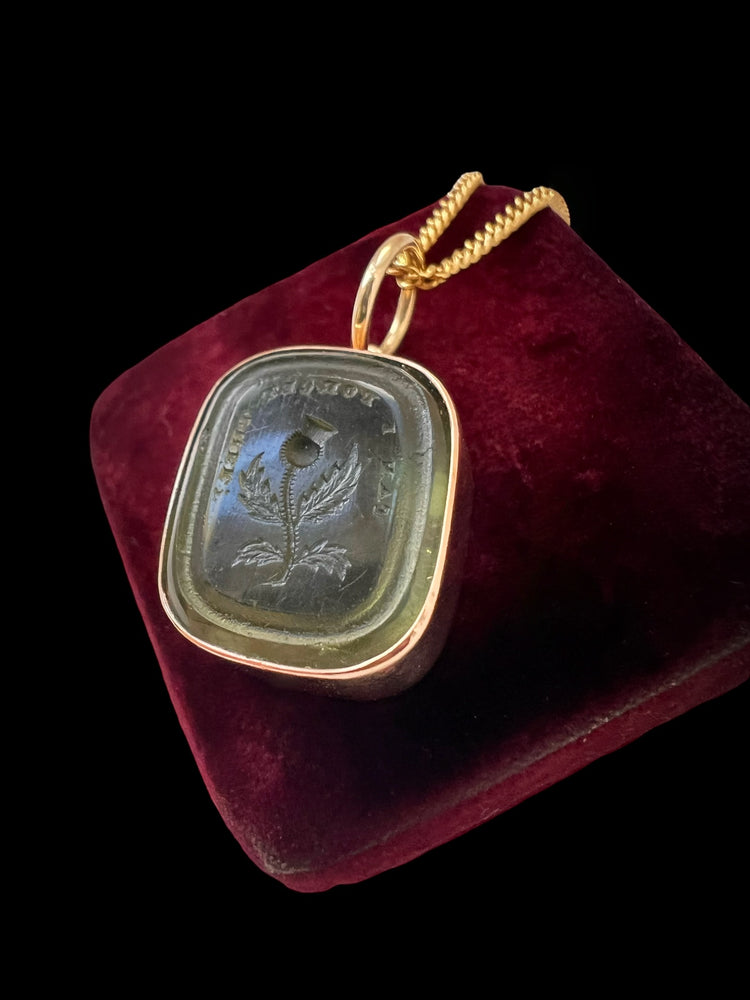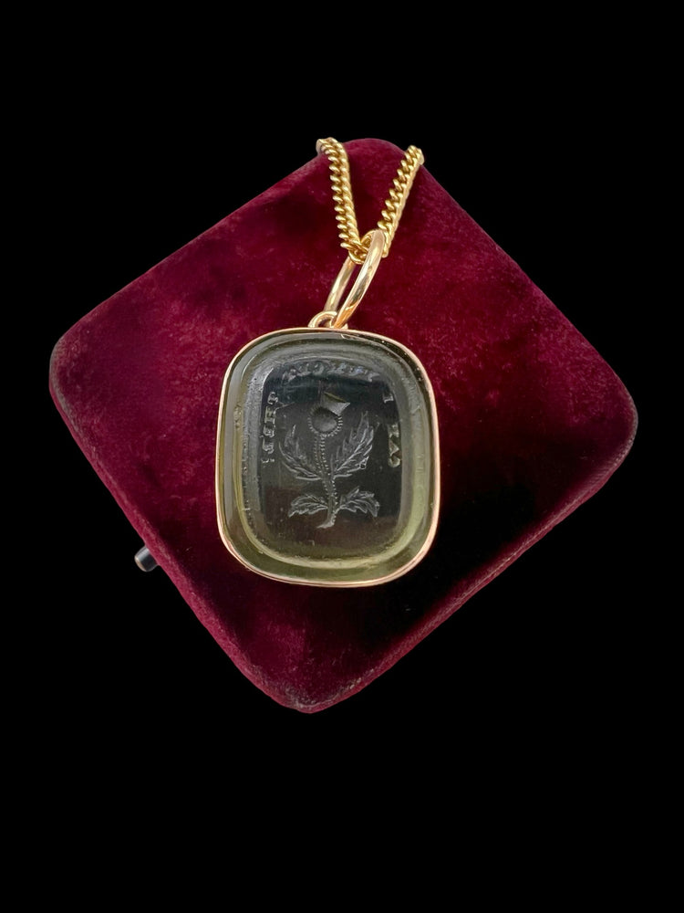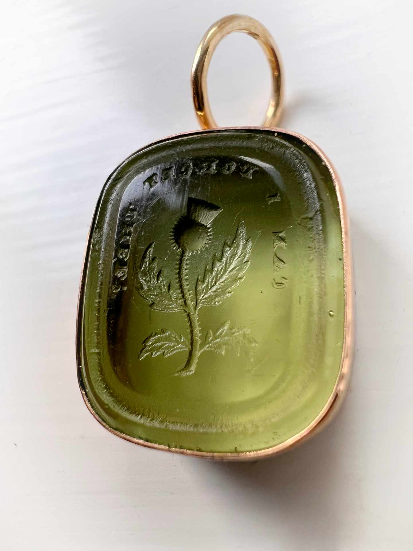 A gorgeous pastel green ‘Tassie’ glass intaglio pendant.