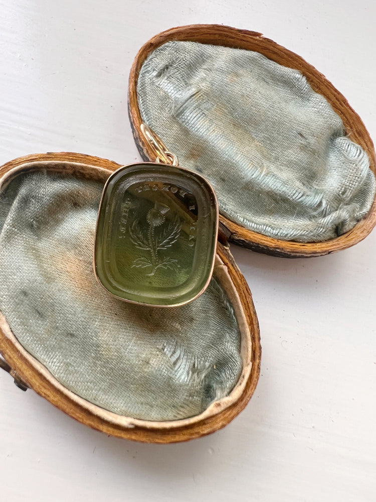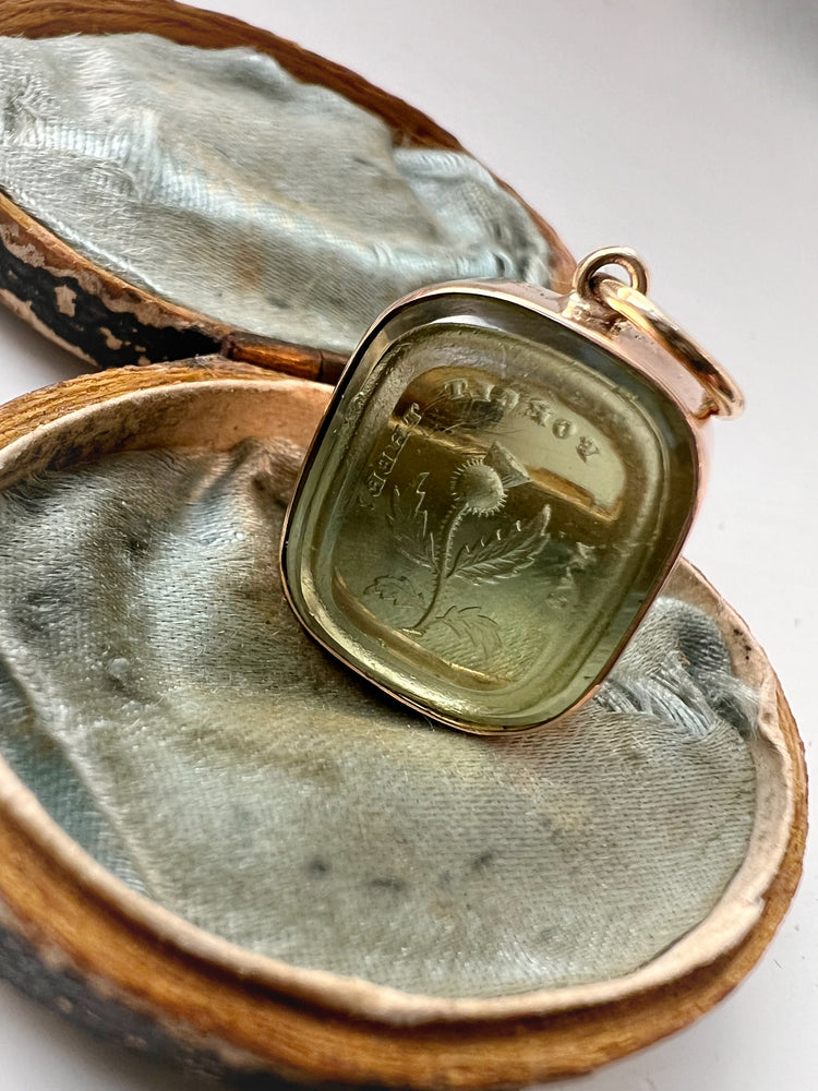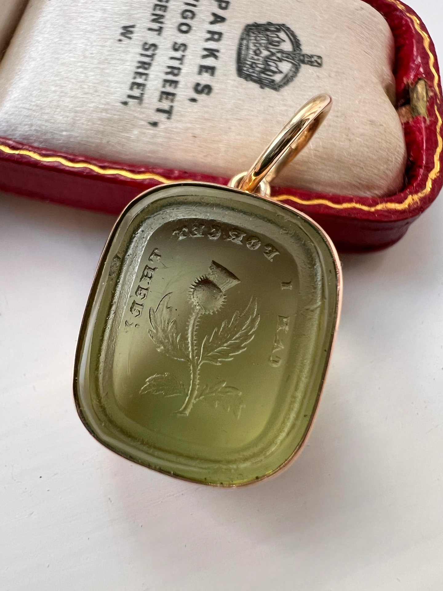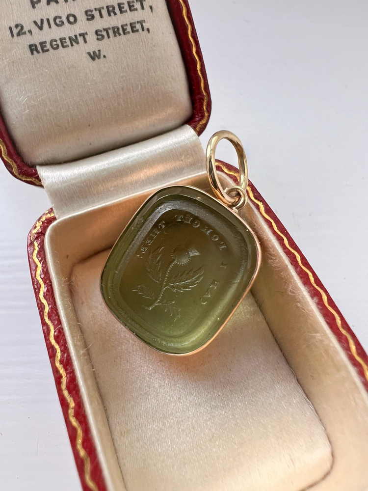 A gorgeous pastel green ‘Tassie’ glass intaglio pendant.
