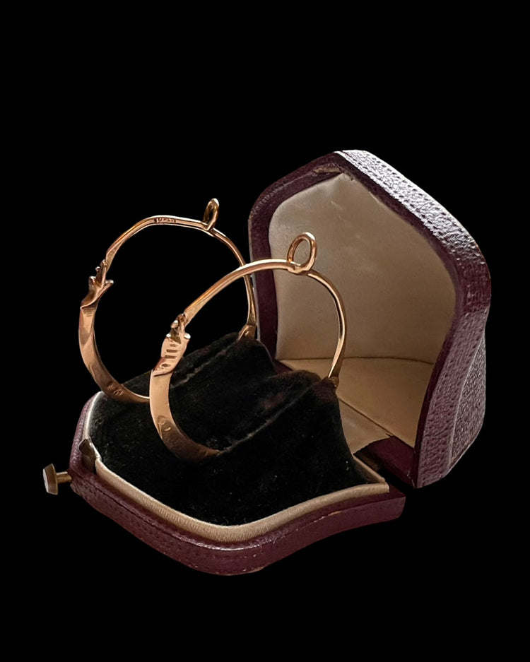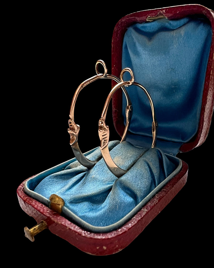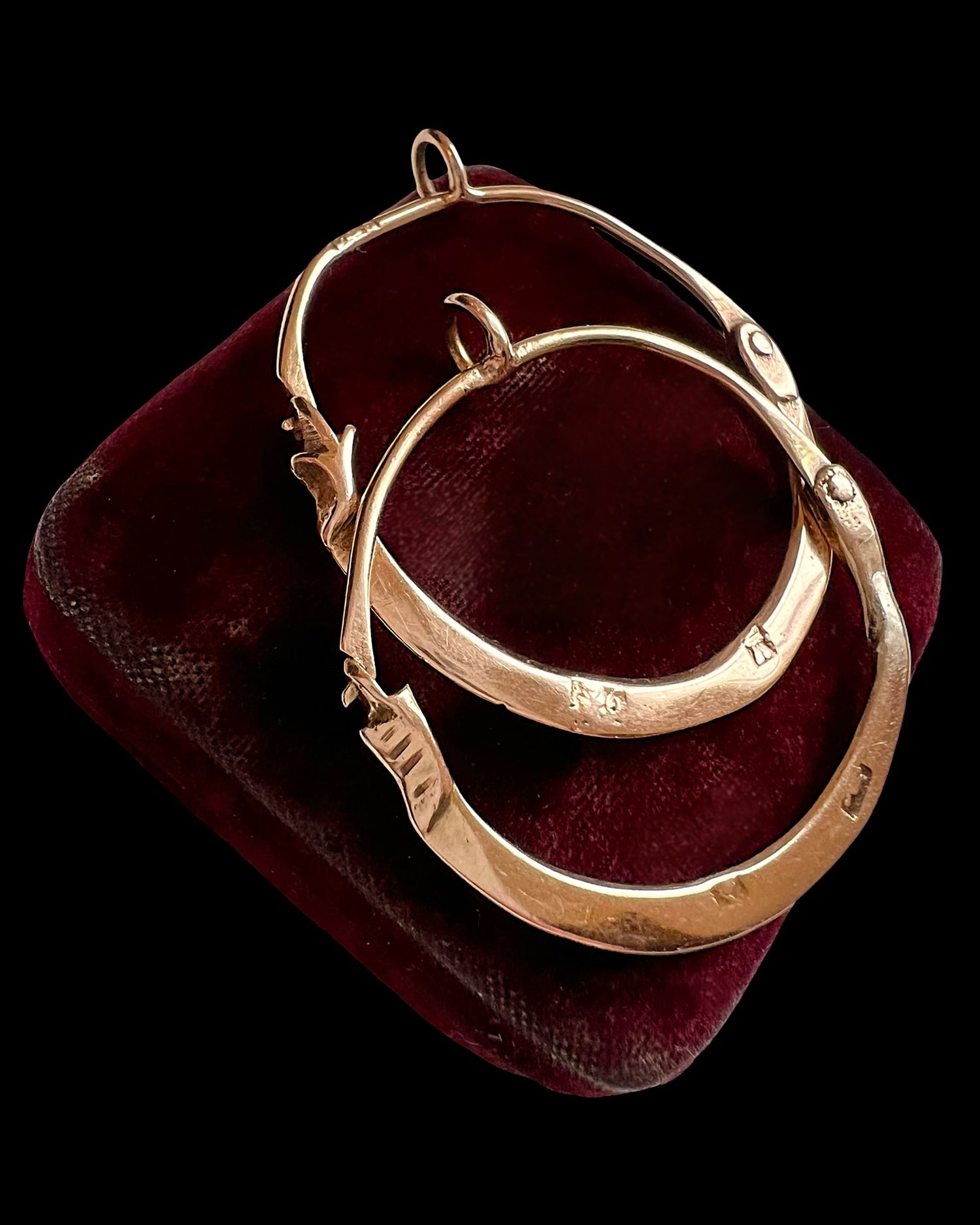 A supercool pair of early 19th century Ouroboros Snake hoop earrings.