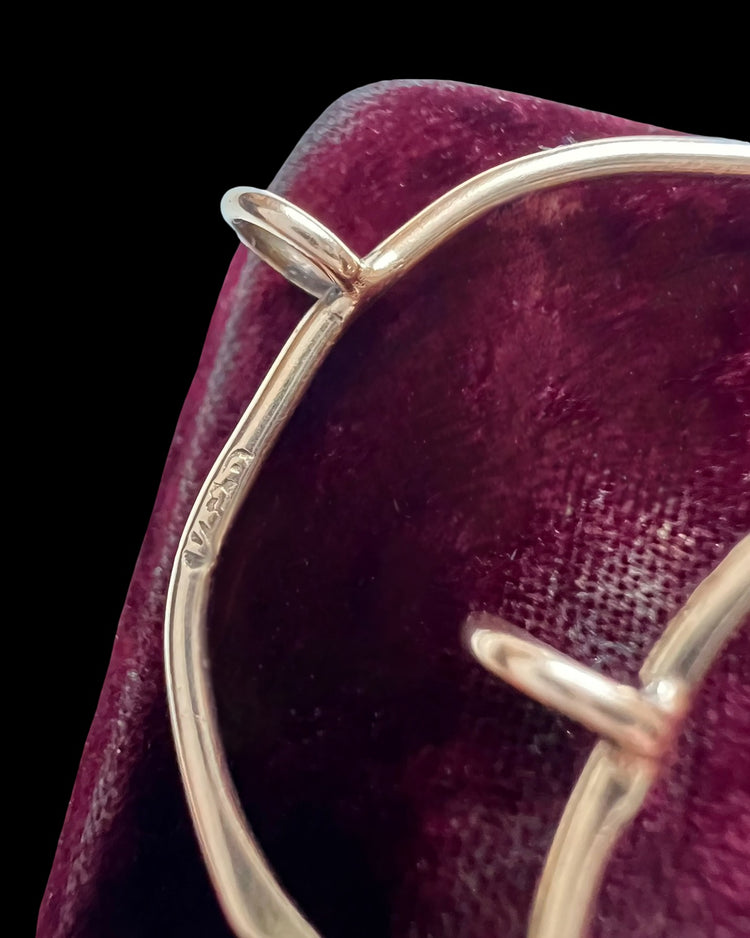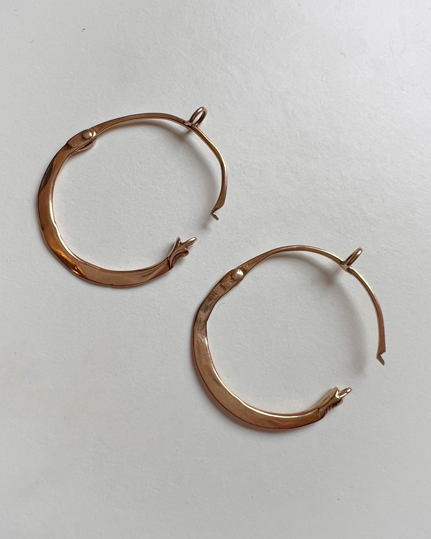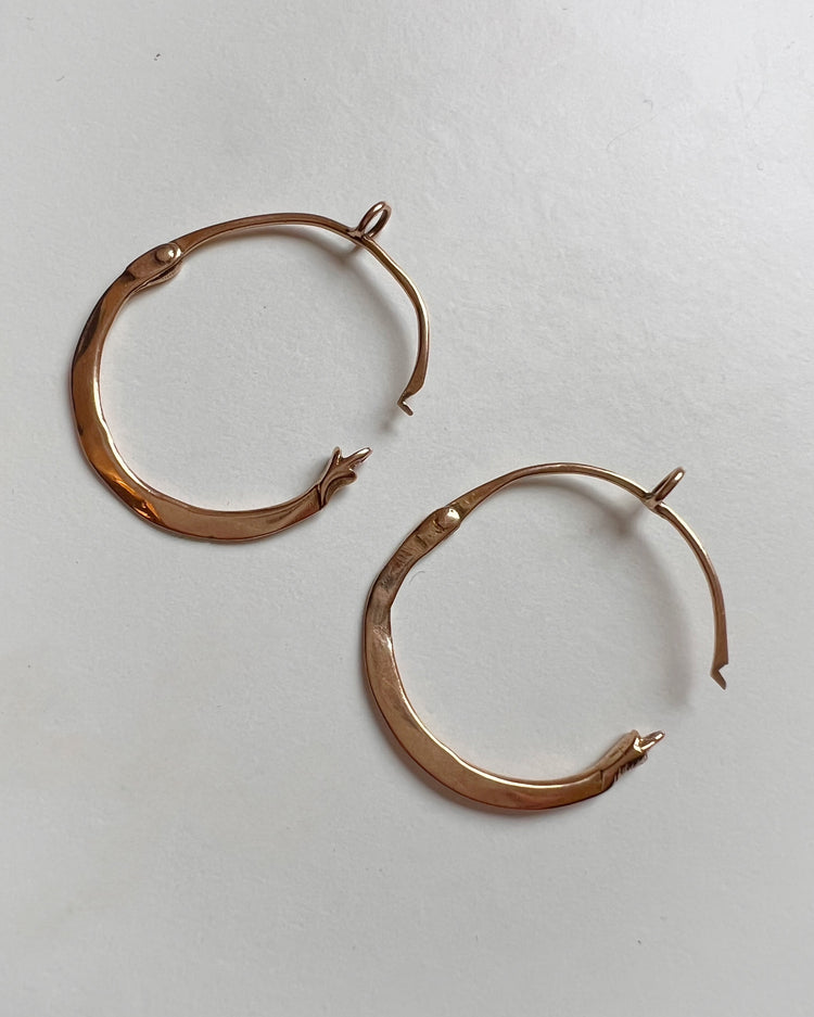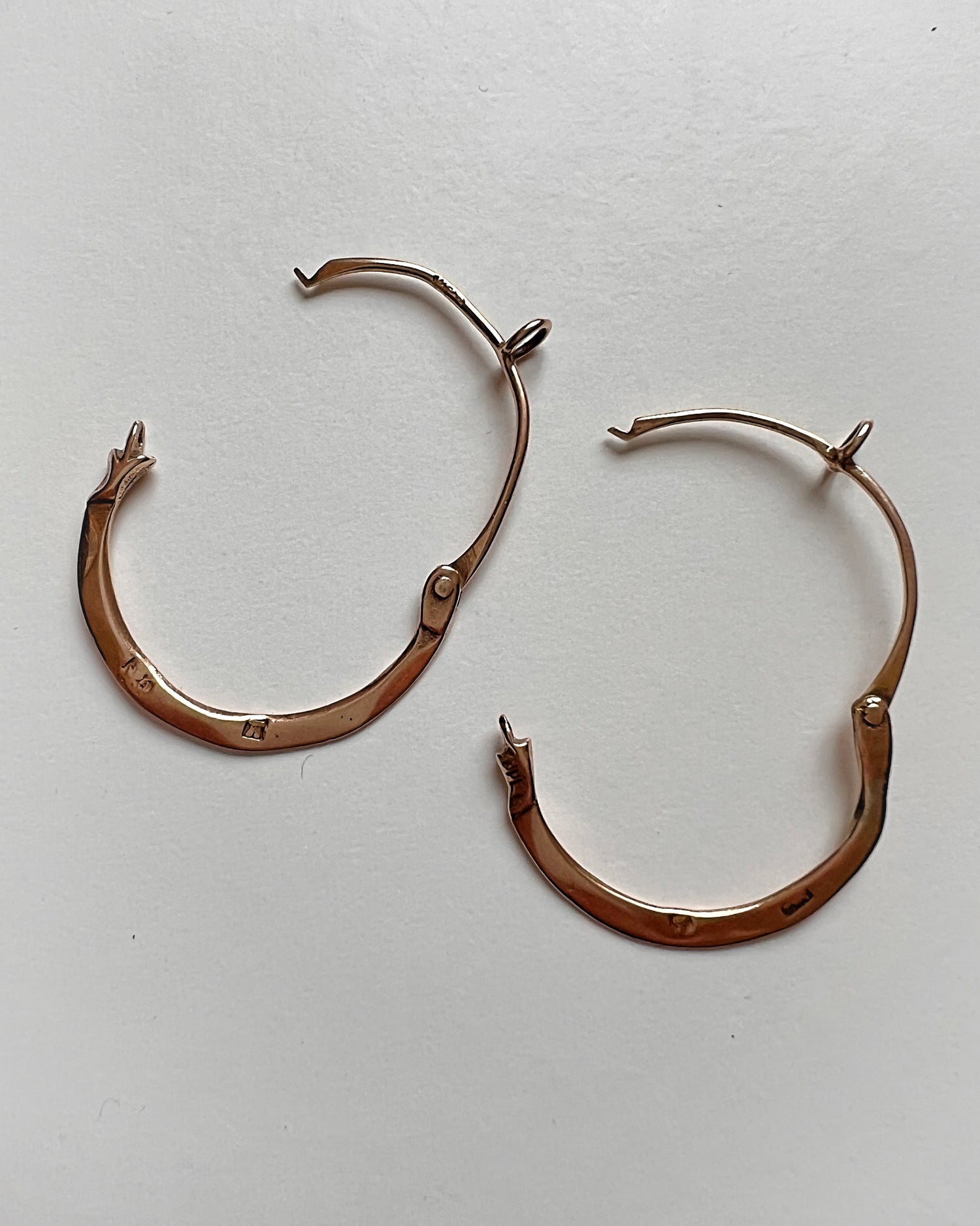 The hoops are made of 14ct gold. Designed to depict a snake biting its own tail when fastened.
