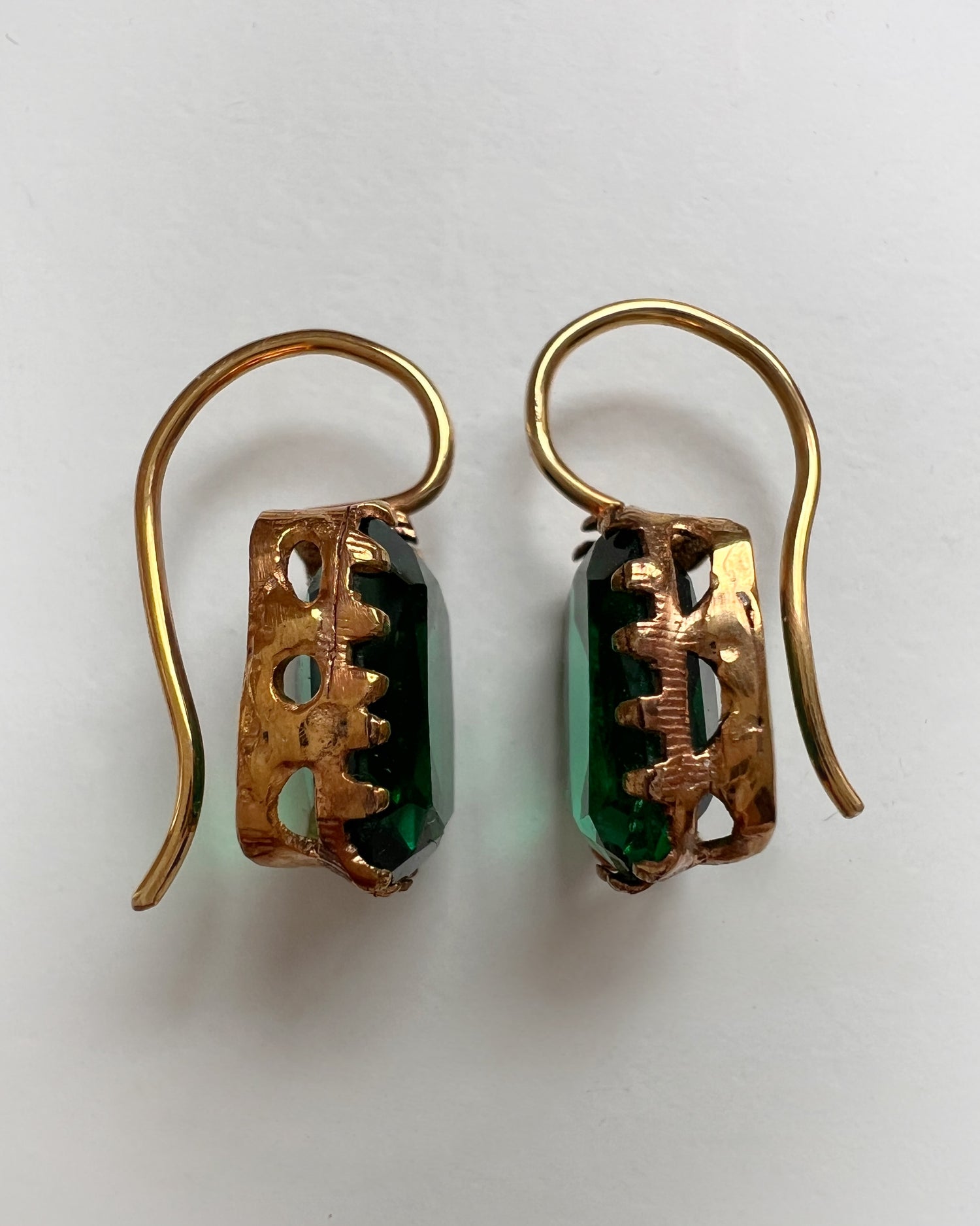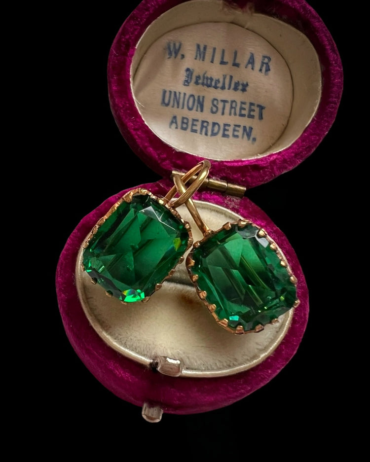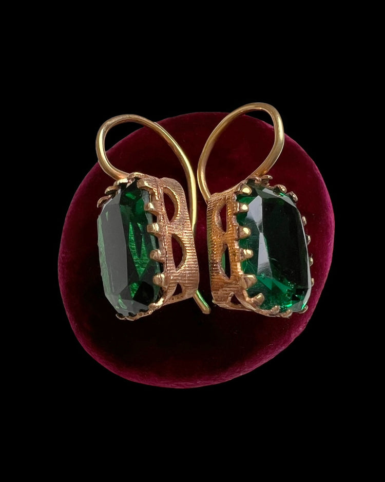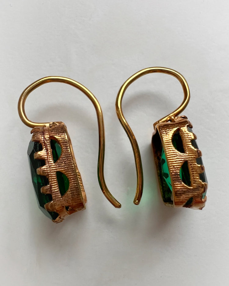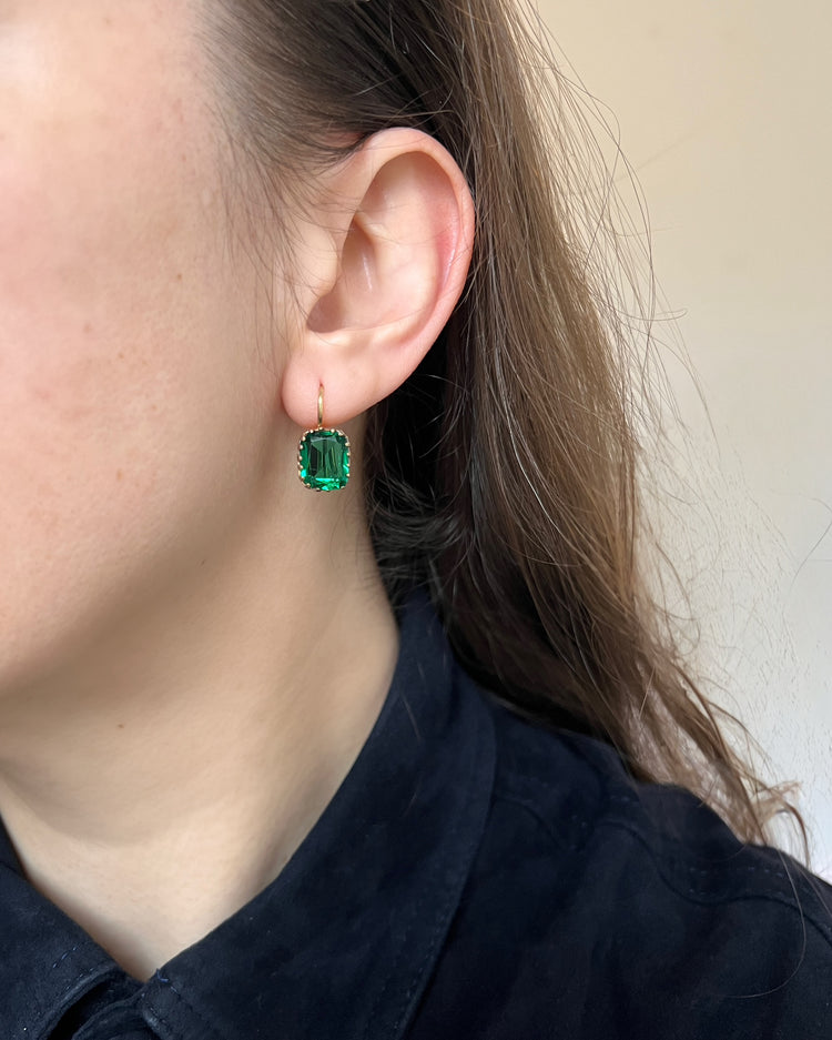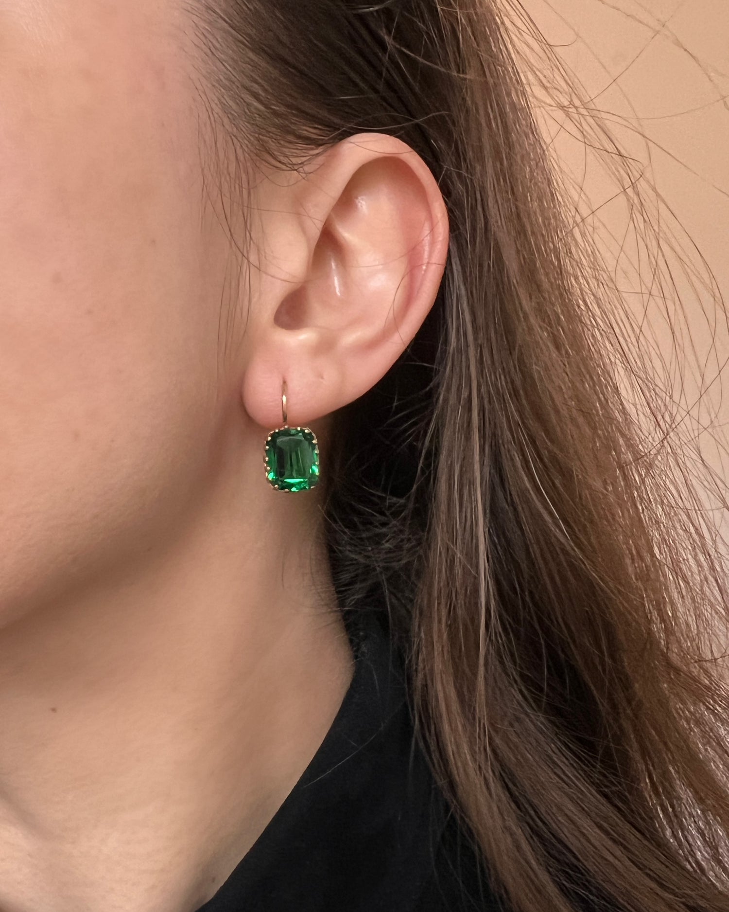 The earrings light up a fantastic vivid emerald green when the light hits the facets.