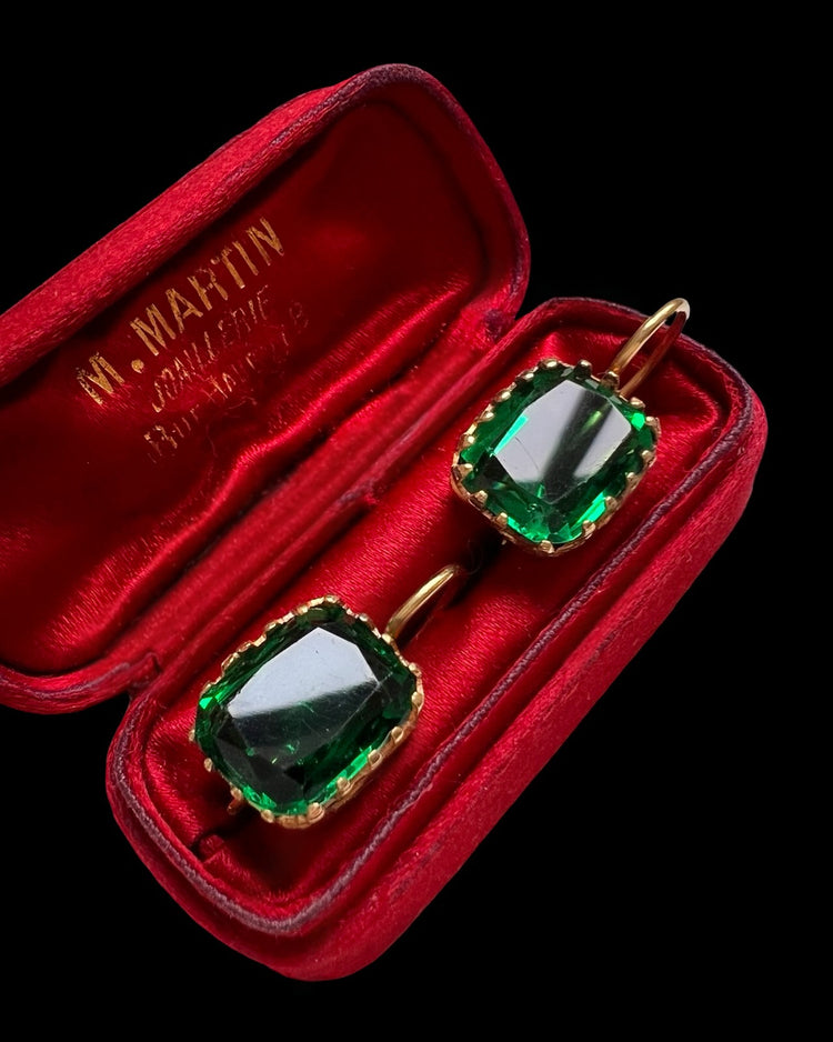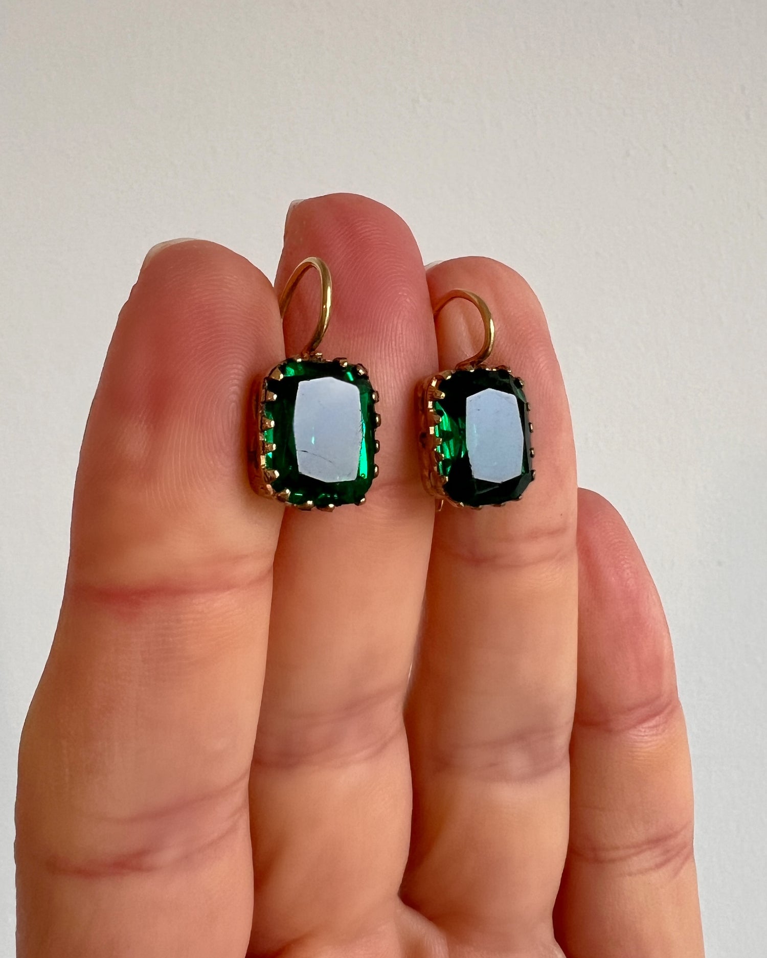 EARLY VICTORIAN GREEN PASTE EARRINGS
