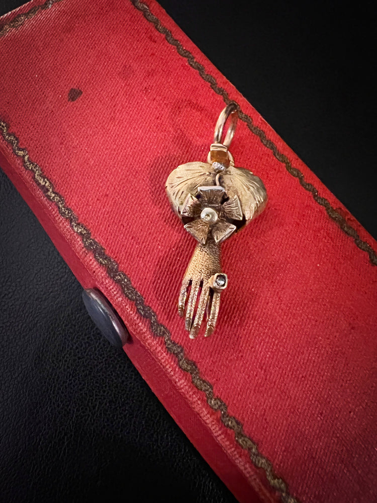 A stunning Georgian hand clasp or pendant crafted in textured 15ct gold.