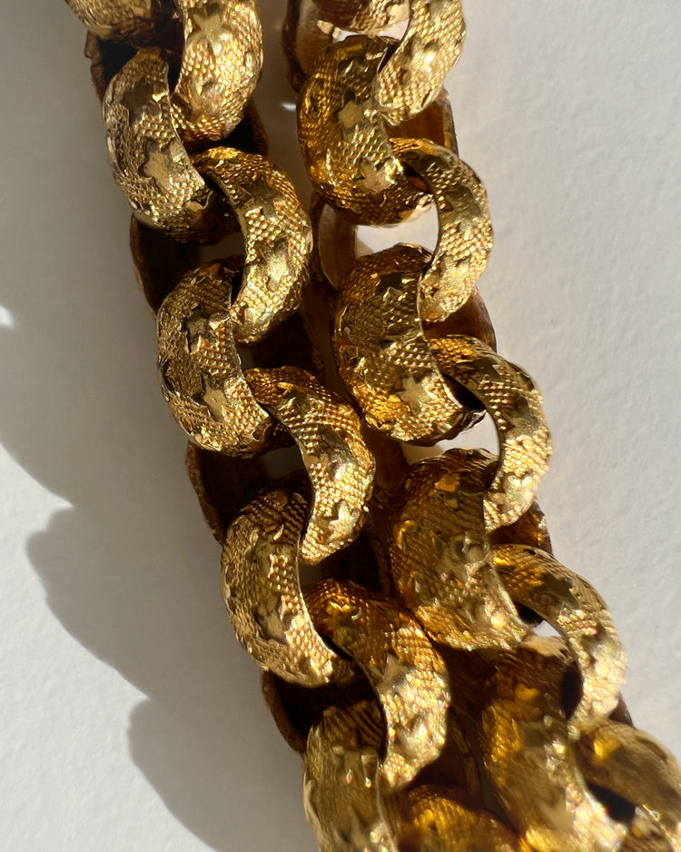 Each chunky belcher links has a raised star pattern on a granulated surface!