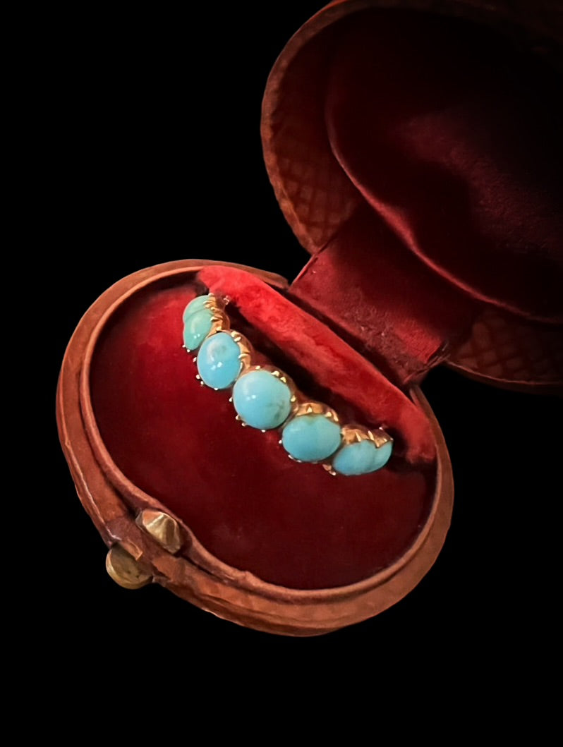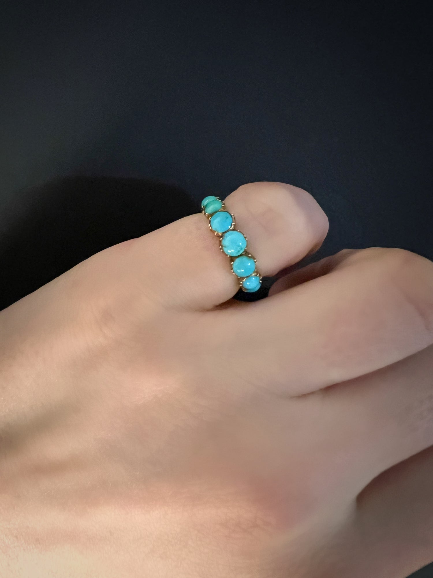 A super pretty Georgian Turquoise seven stone half eternity ring.