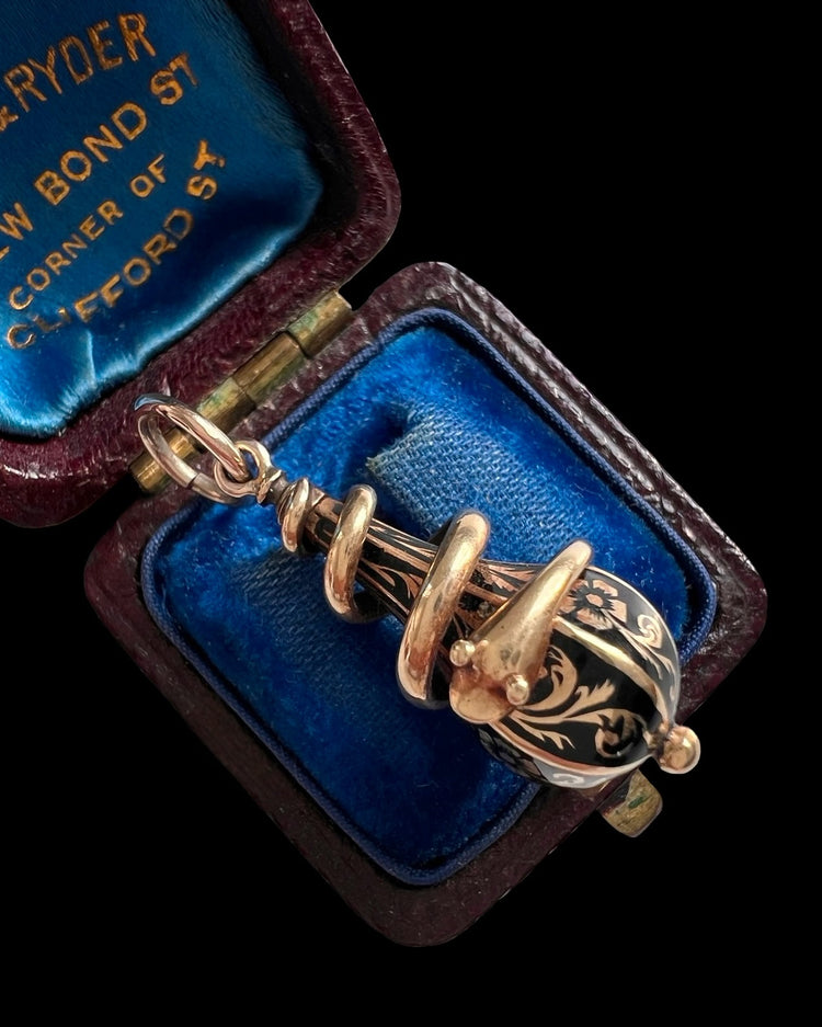 A charming Victorian 15ct gold and enamel snake pendant.