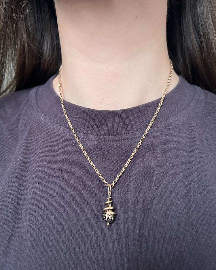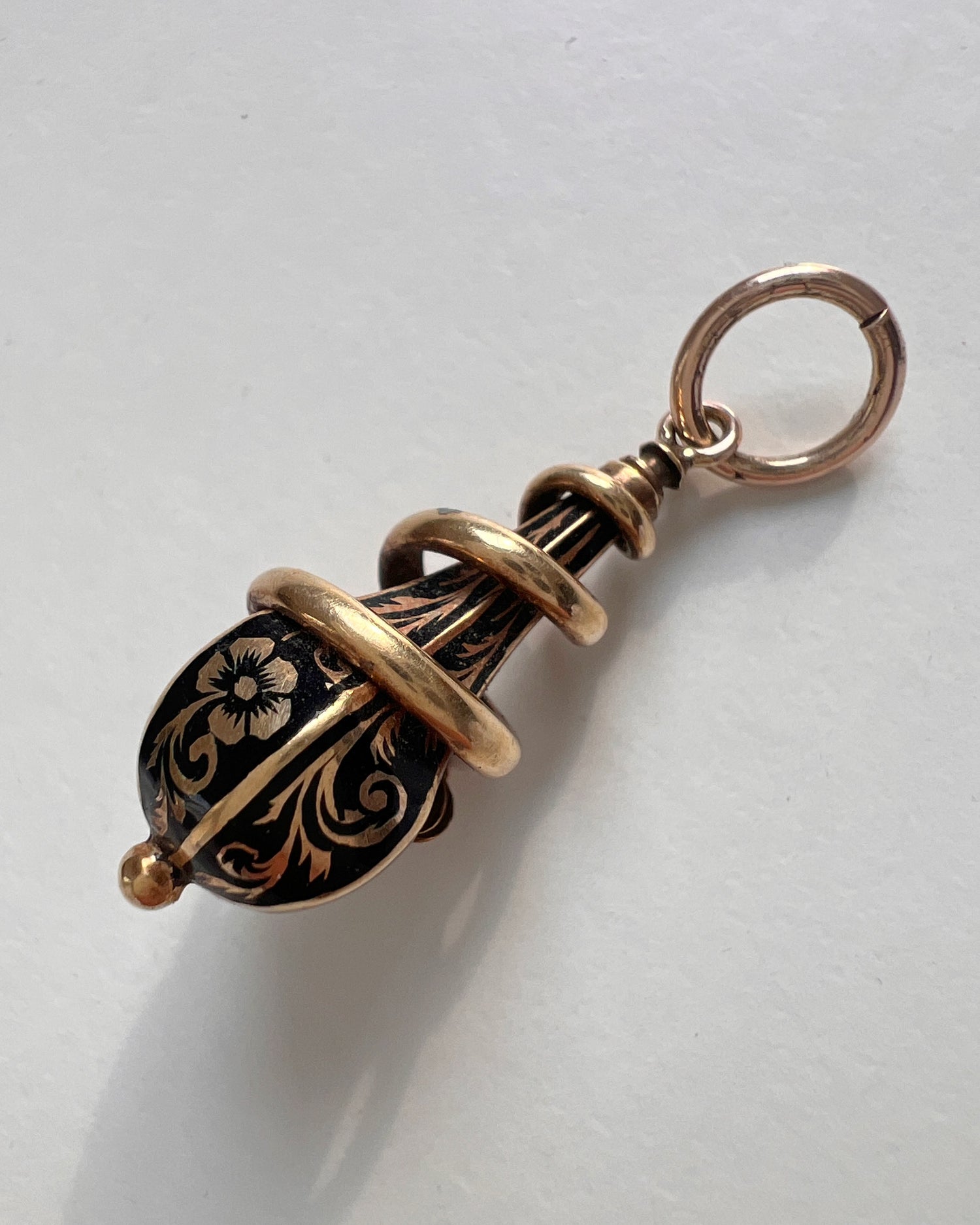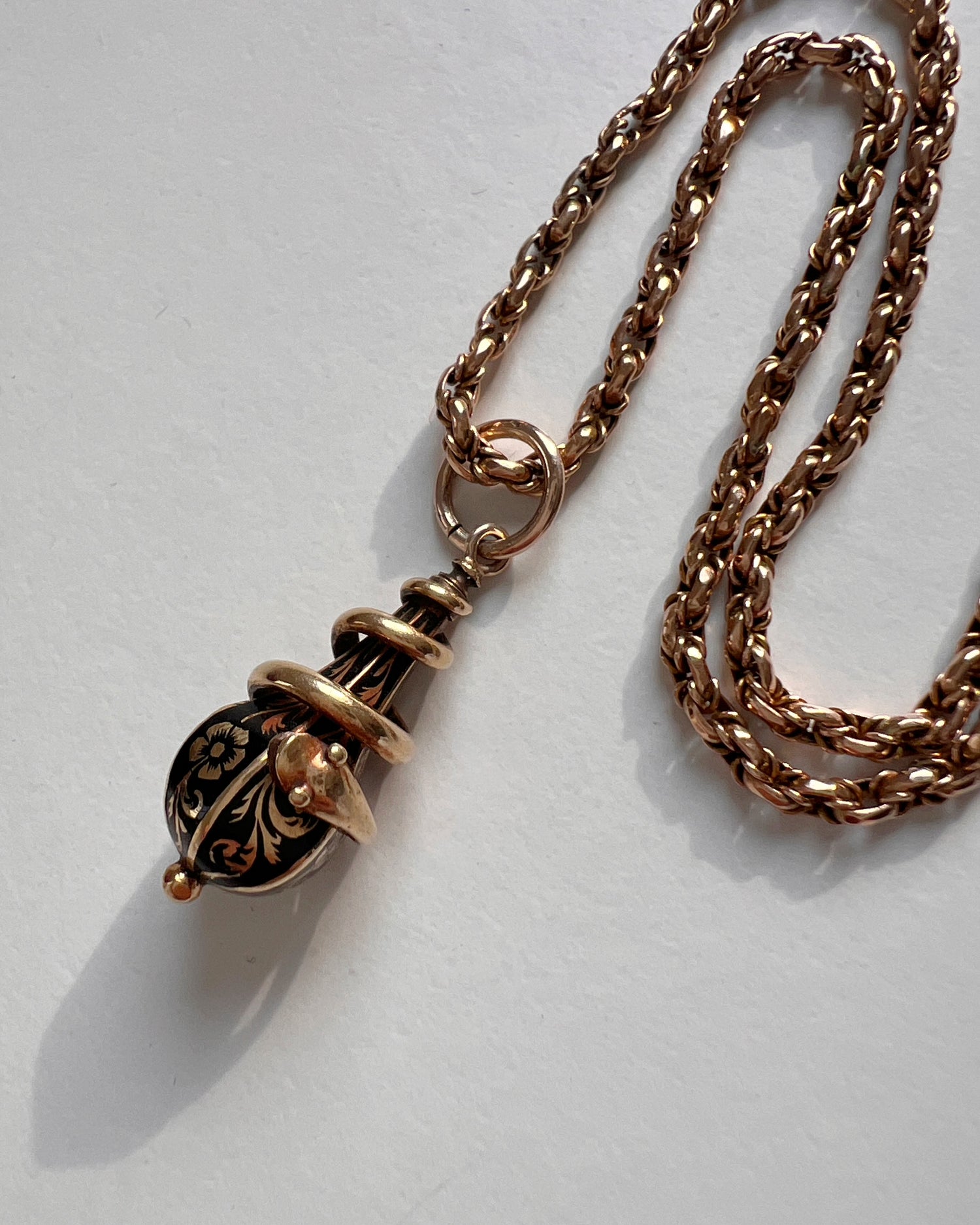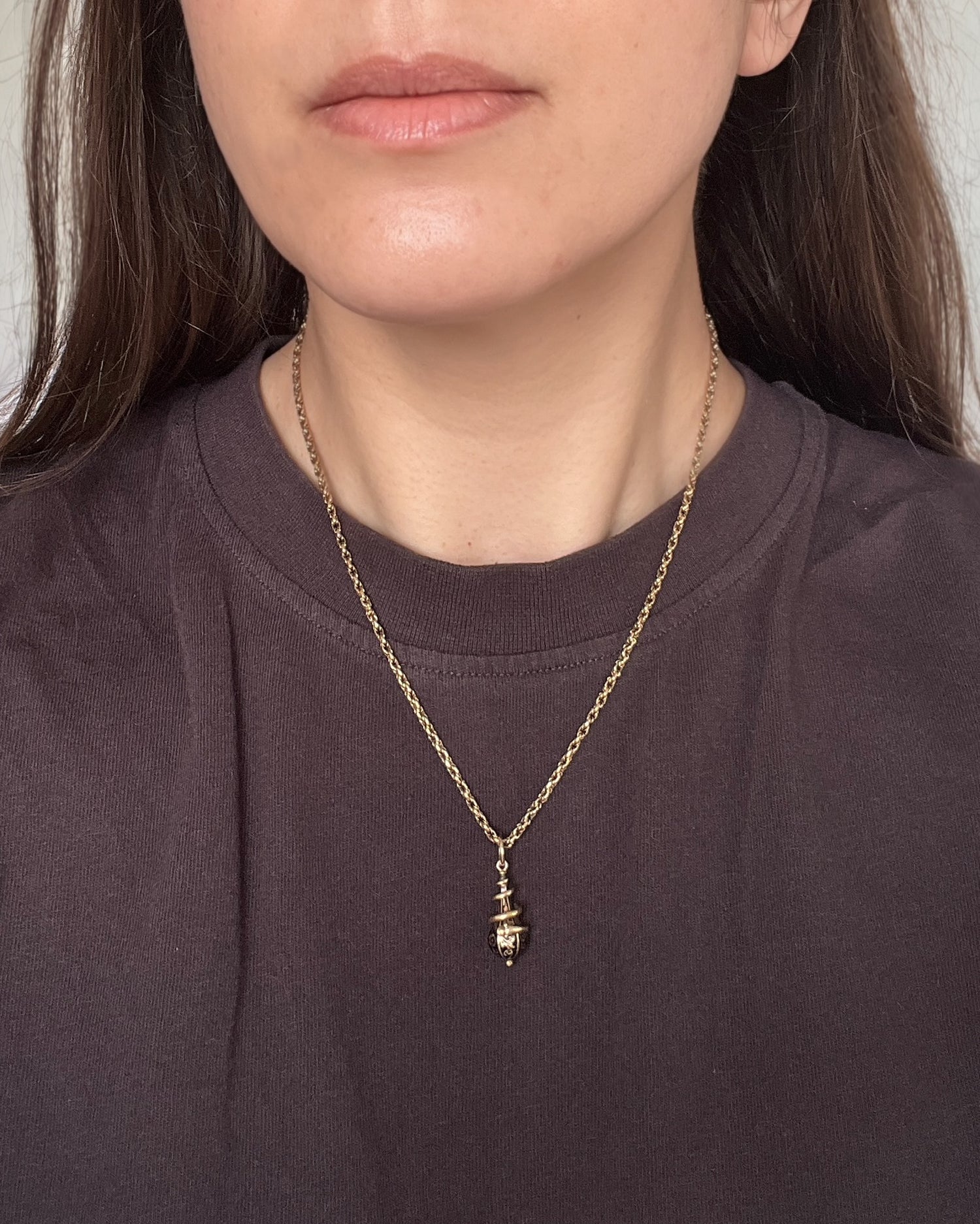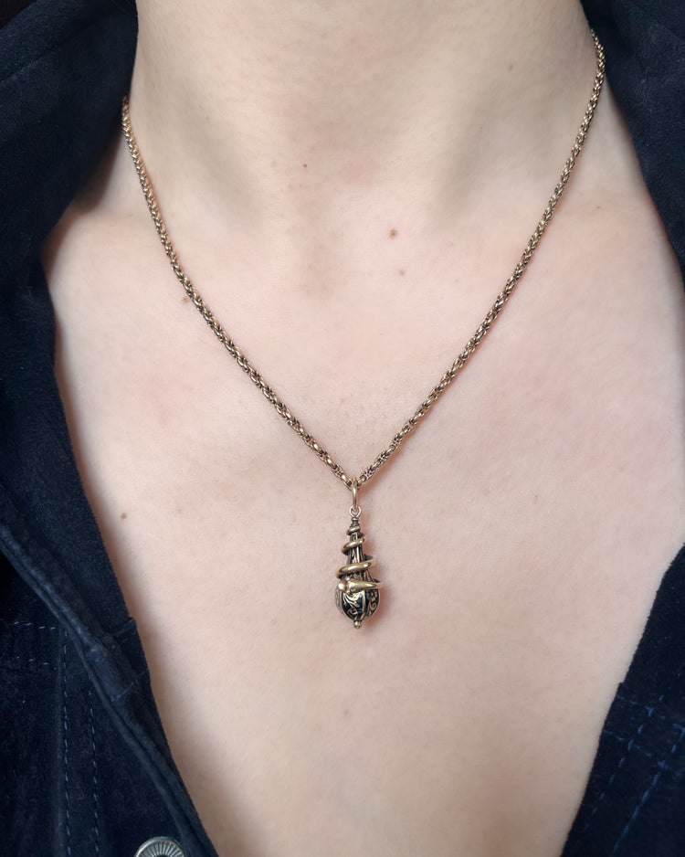 VICTORIAN 15CT COILED SNAKE & ENEMAL DROP PENDANT