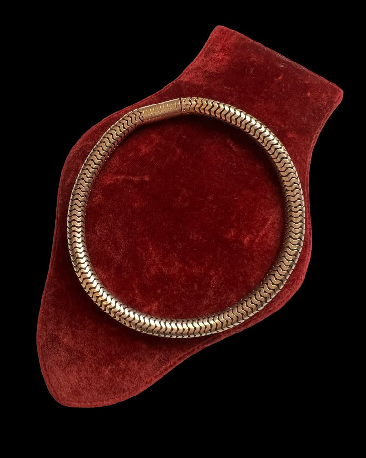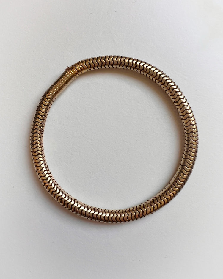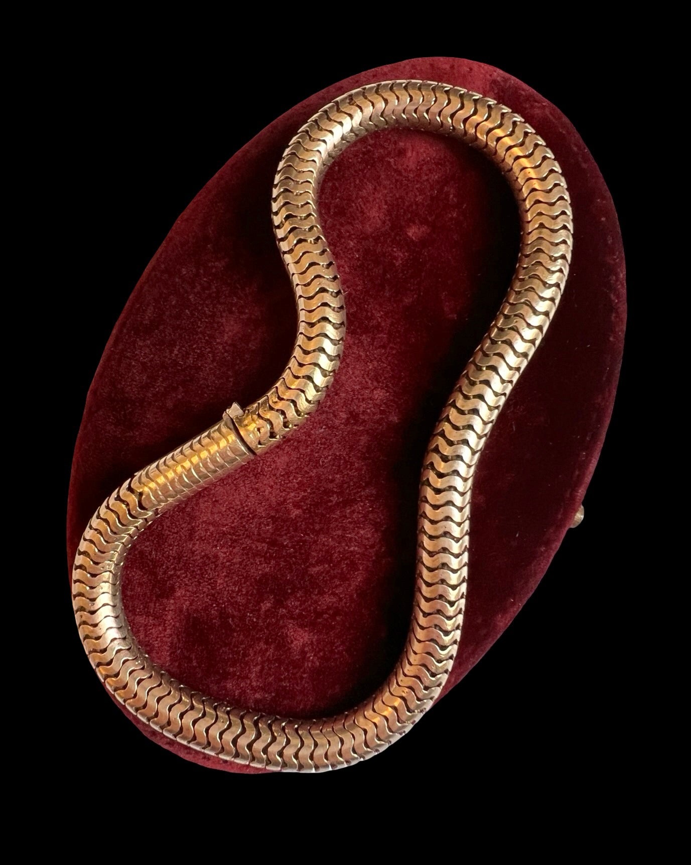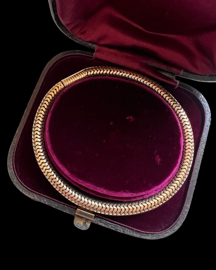 A super slinky Victorian 15ct gold Brazilian / snake link bracelet with a chevron chased barrel clasp.