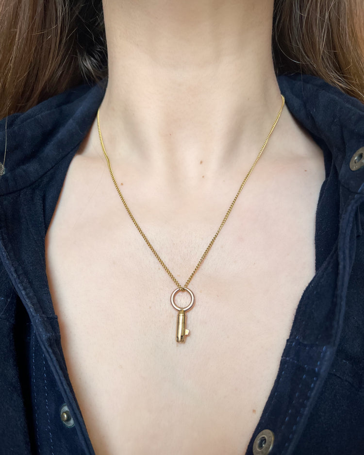 A supercool, super chunky Victorian Bramah key pendant made of 9ct gold.
