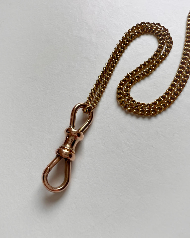 The dog clip has one larger chunky clip and the other slightly smaller, so you can choose which way round to use for different thickness chains.