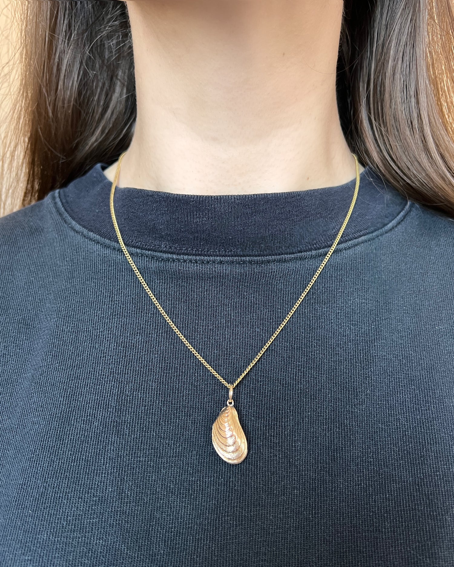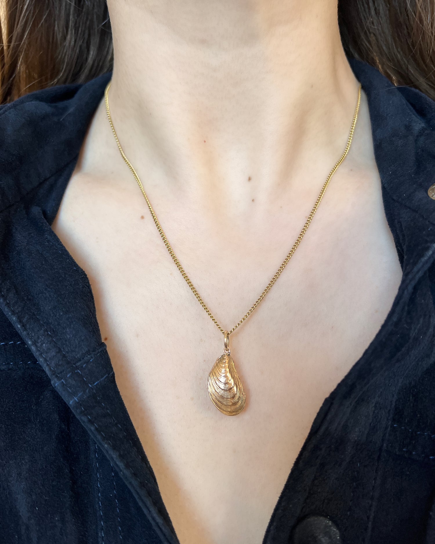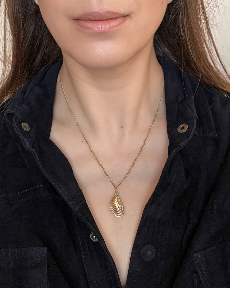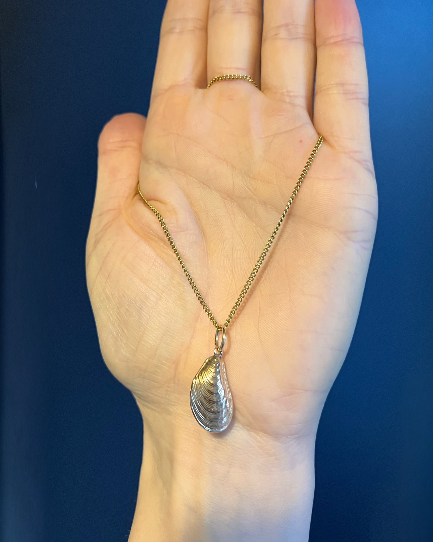 The mussel is realistically modelled in 3D with fine chasing on the front and back depicting the growth rings found on real mussels.