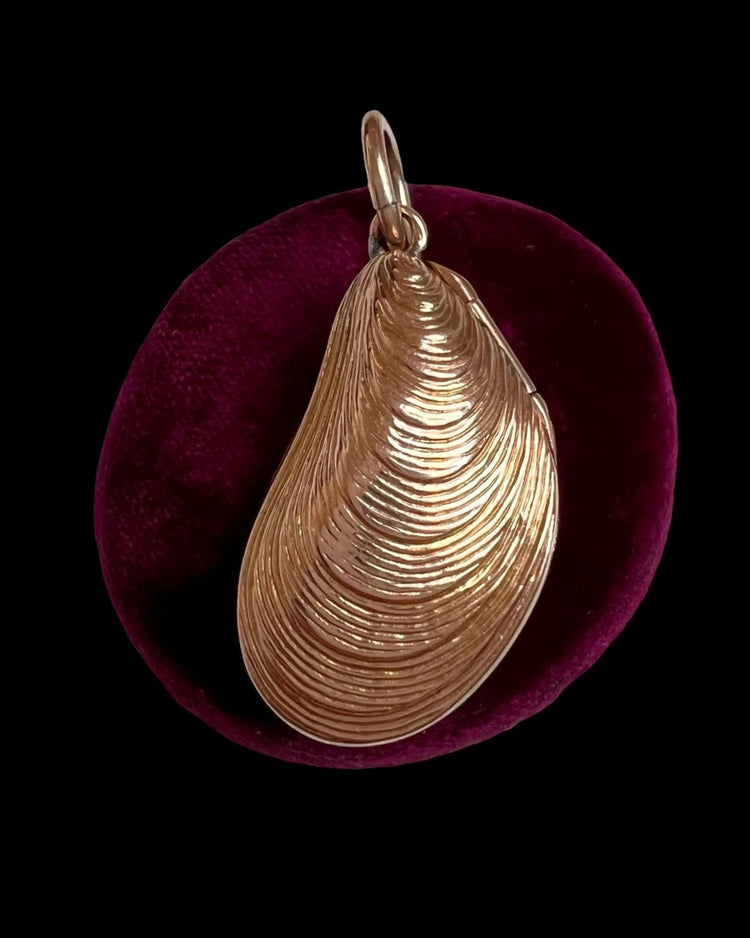 VICTORIAN 9CT GOLD MUSSLE SHELL LOCKET PENDANT