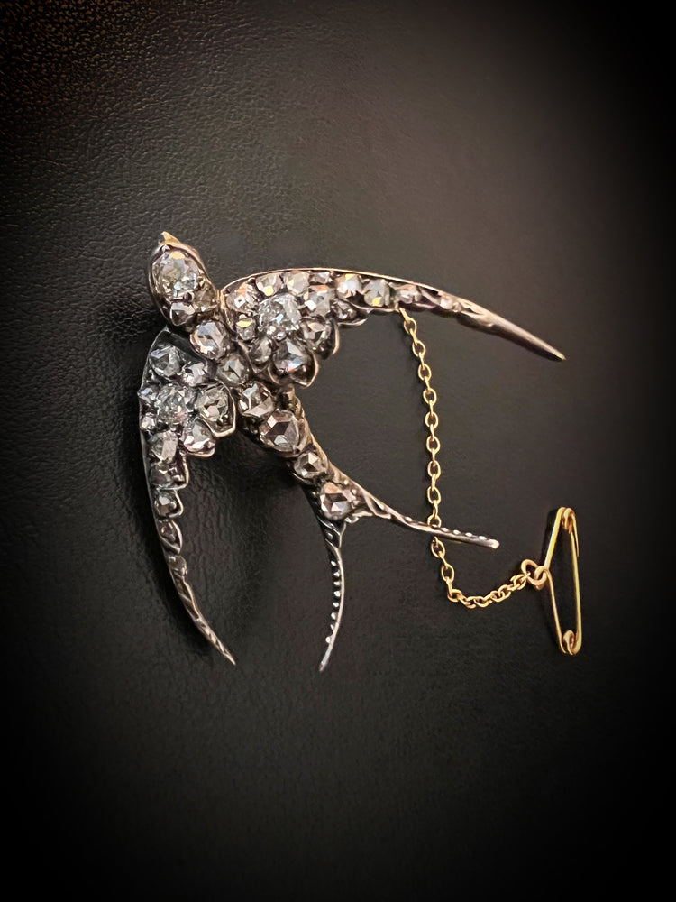 VICTORIAN DIAMOND SWALLOW BIRD BROOCH