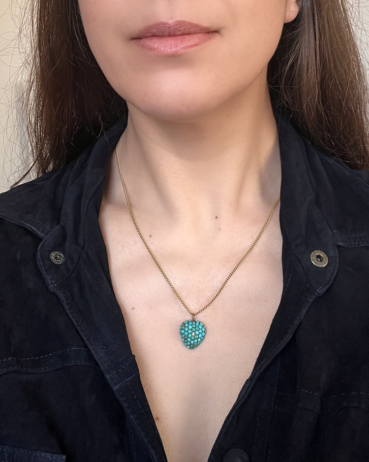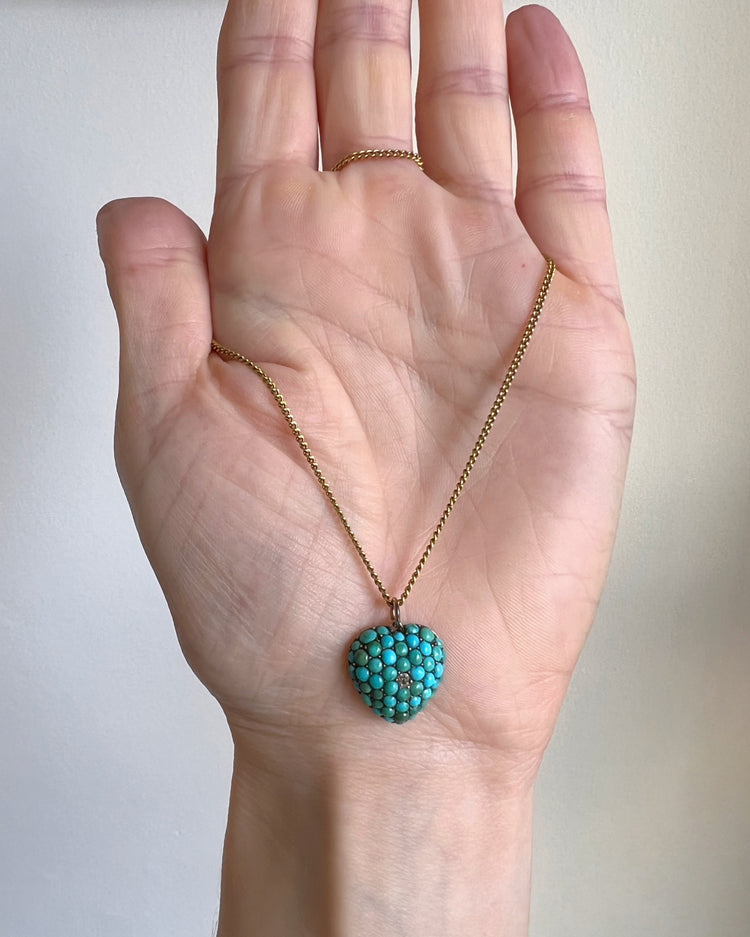 VICTORIAN PAVÉ TURQUOISE & DIAMOND HEART PENDANT