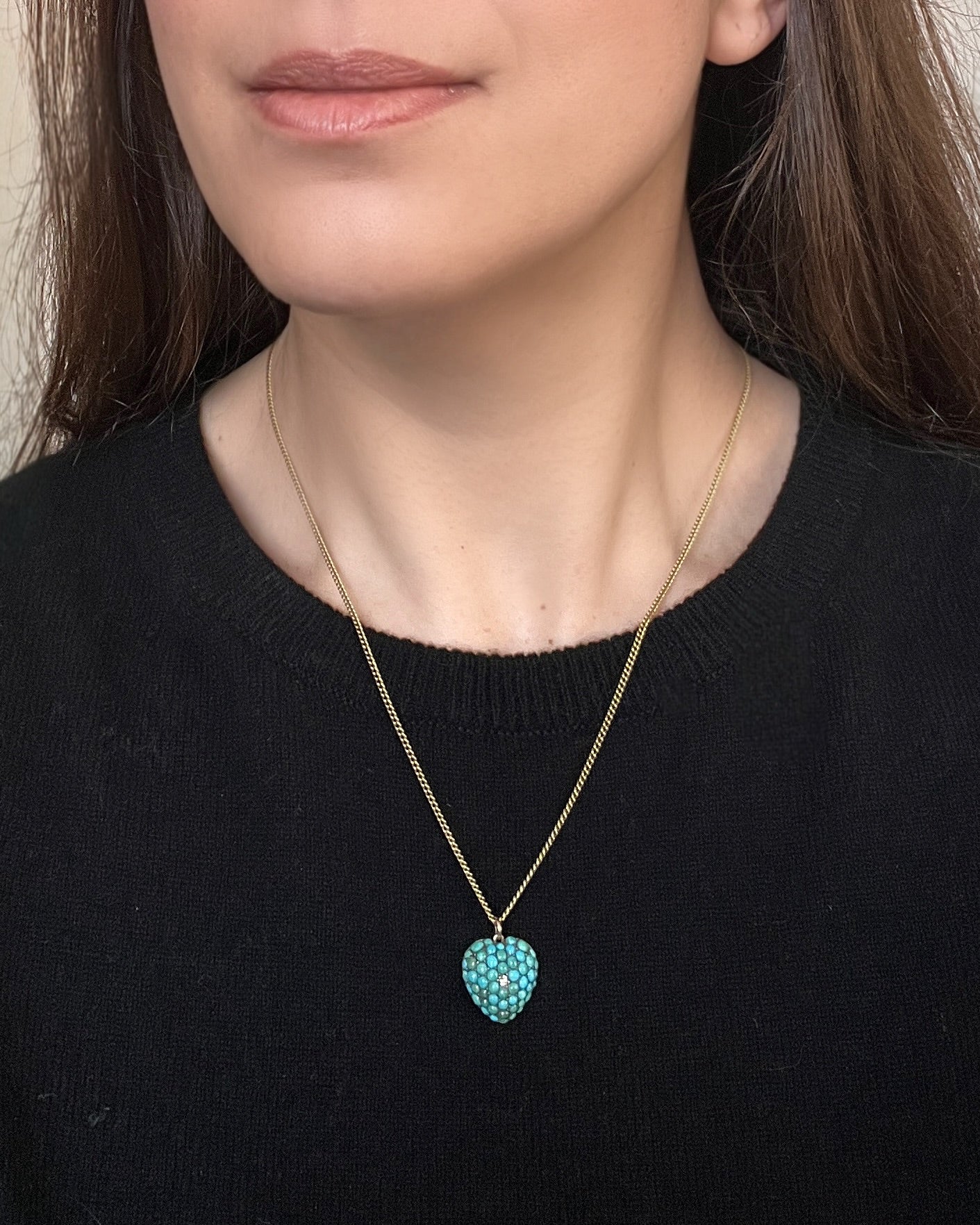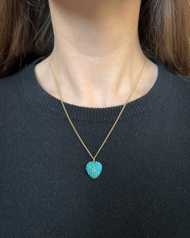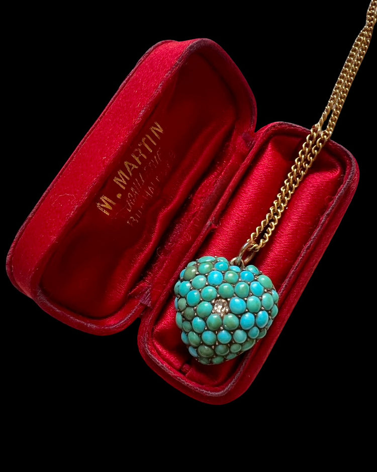 A stunning Victorian pavé Turquoise and Diamond heart pendant.