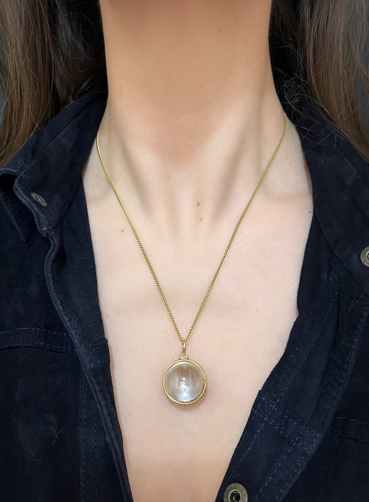 A super chunky Victorian ‘pool of light’ rock crystal locket pendant.