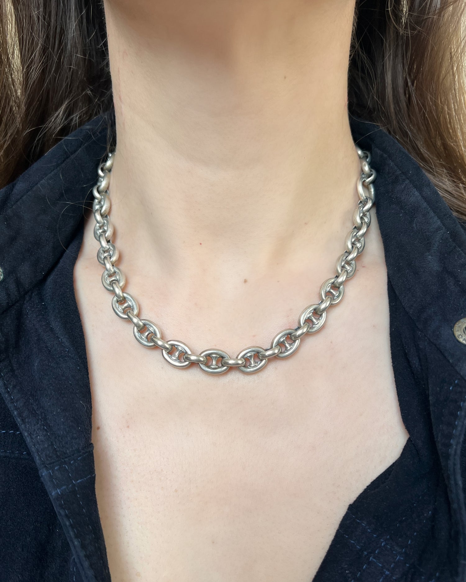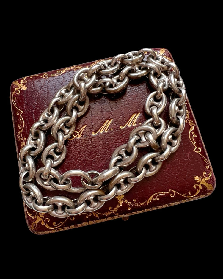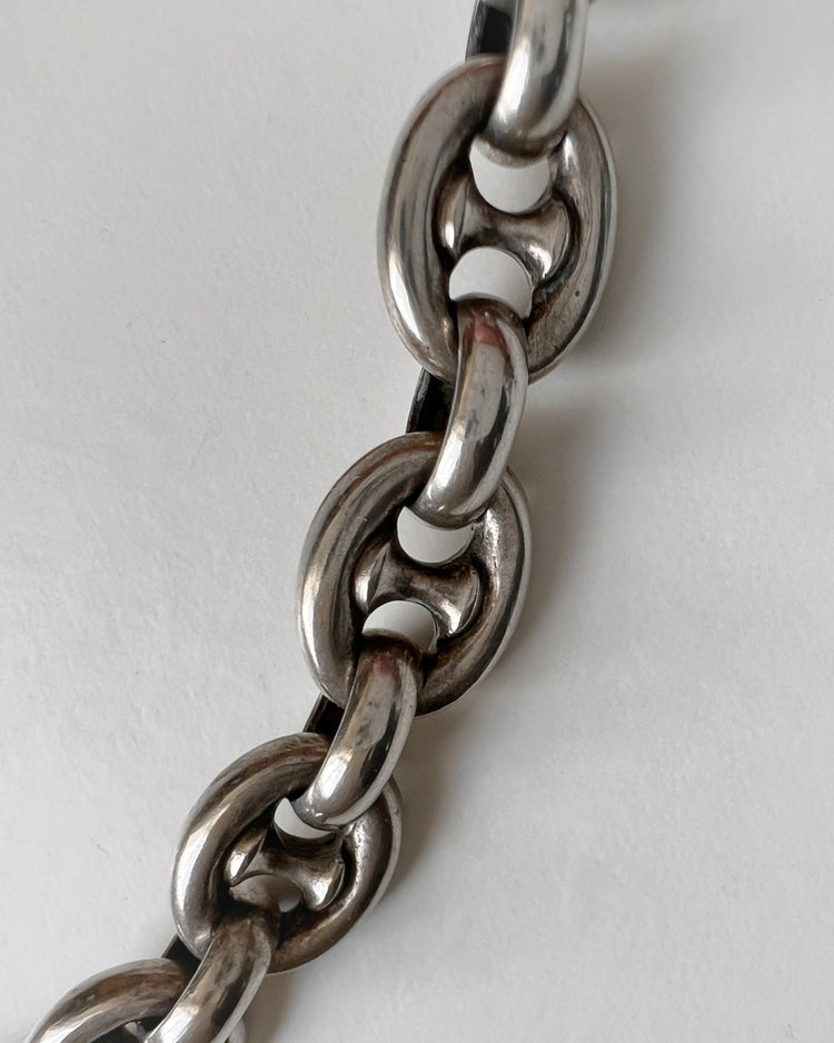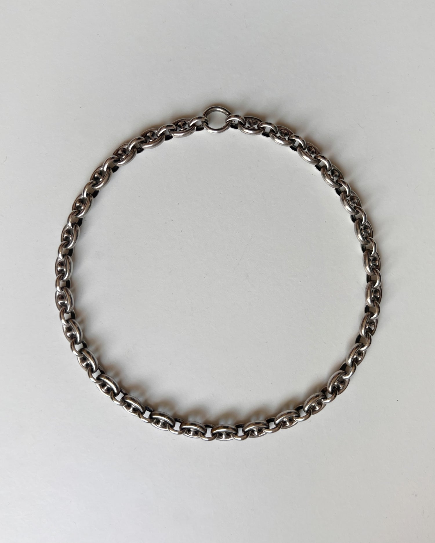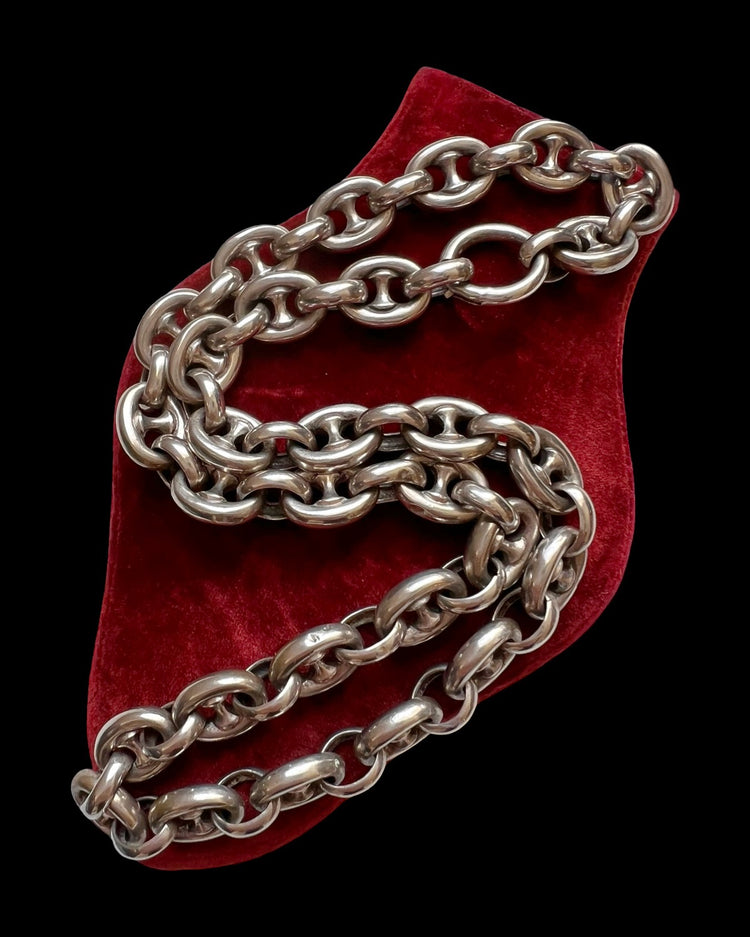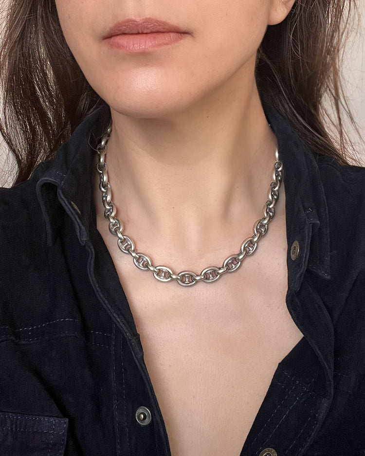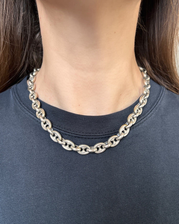 The links are hollow, so the chain is lighter than it looks making it really comfortable to wear.