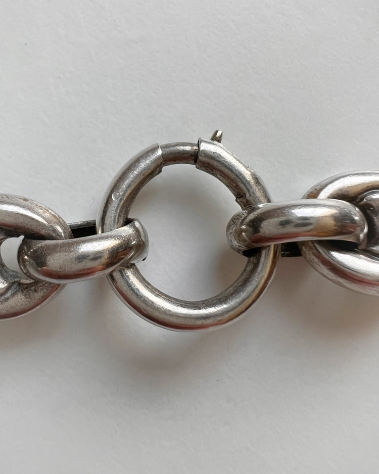 The chain closes with a silver spring bolt which makes it easy to add pendants / charms. And can just as easily be placed at the back for a more classic look.