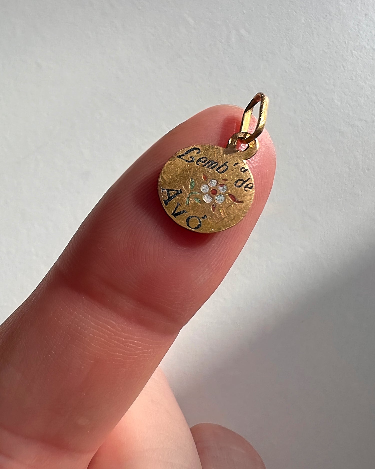 VINTAGE PORTUGUESE 19CT GOLD & ENAMEL ‘LEMB CĄ DE AVÓ’ CHARM